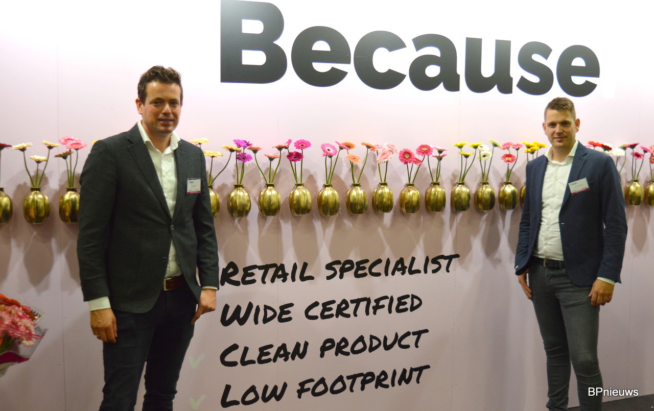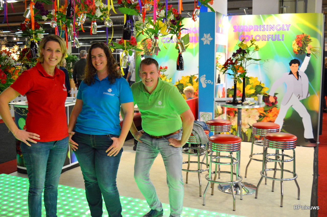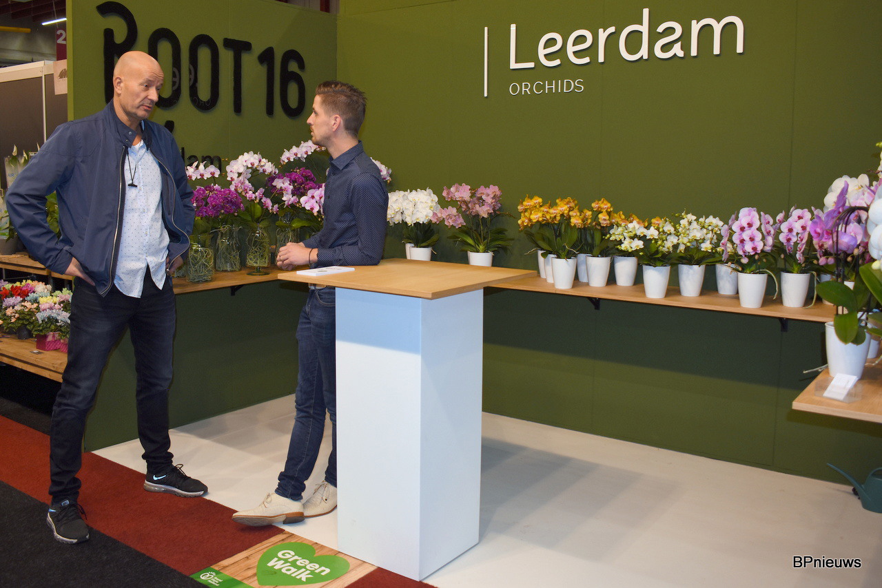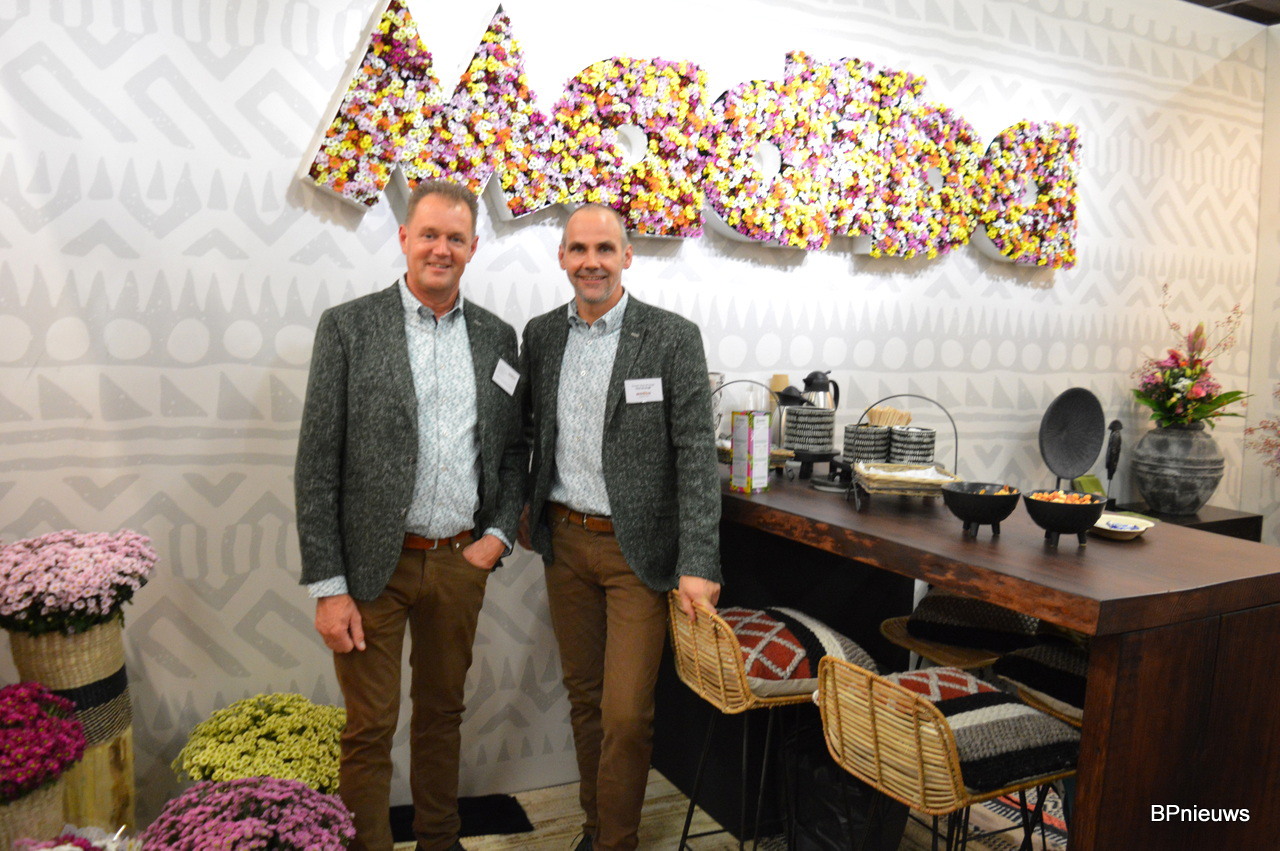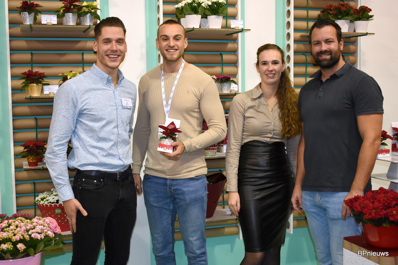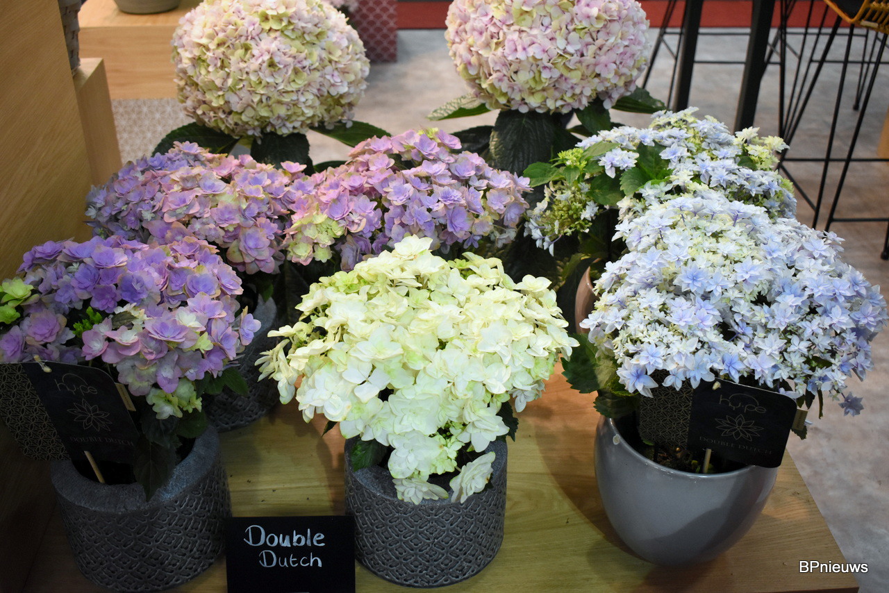 Ook bij de Bruin Plantpot zijn ze bezig met duurzaamheid en dat lieten ze zien door middel van hun nieuwe pulp-tray. Everard de Bruin met de gloednieuwe 8 gaats pulptray. Het is een echte combi tray verteld Everard en door de flexibele klembogen,die in de gaten gevestigd zijn, kun je potten van maat 12 t/m 14 samen in één tray zetten. In het midden staat Gerard van Doeburg met de Lingepot en rechts Ted Verbraeken met hun Terracotta en Olijfgroene potten.