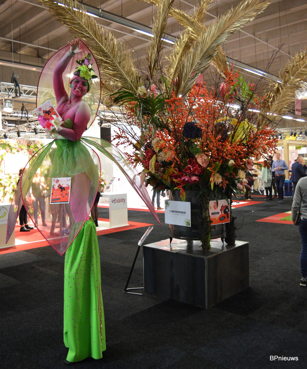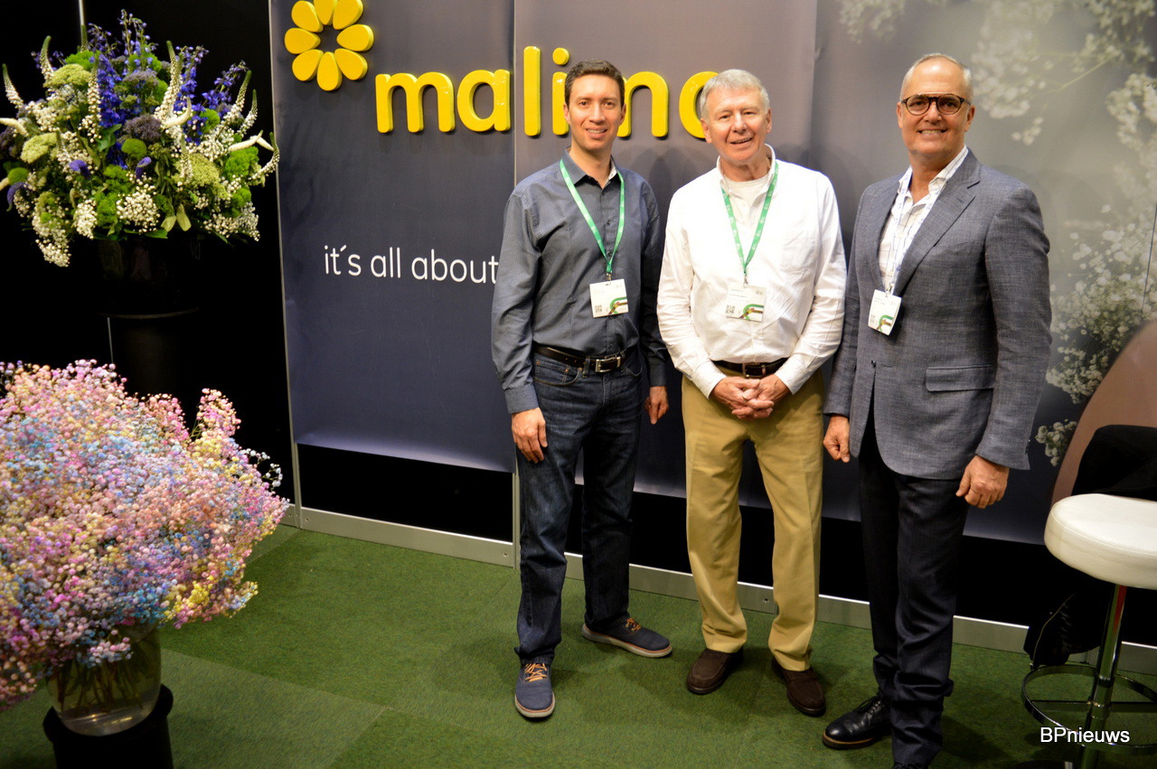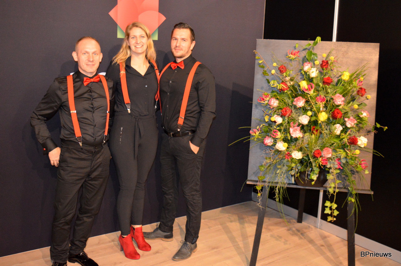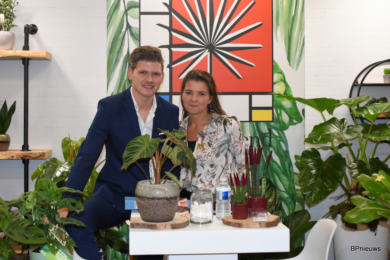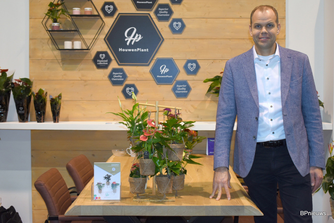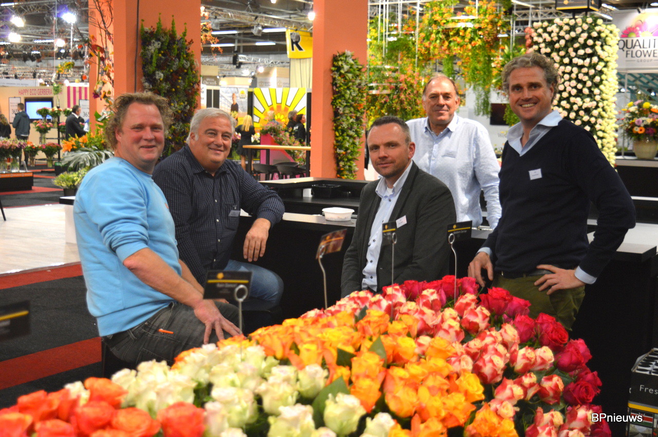 Ook bij de Bruin Plantpot zijn ze bezig met duurzaamheid en dat lieten ze zien door middel van hun nieuwe pulp-tray. Everard de Bruin met de gloednieuwe 8 gaats pulptray. Het is een echte combi tray verteld Everard en door de flexibele klembogen,die in de gaten gevestigd zijn, kun je potten van maat 12 t/m 14 samen in één tray zetten. In het midden staat Gerard van Doeburg met de Lingepot en rechts Ted Verbraeken met hun Terracotta en Olijfgroene potten.