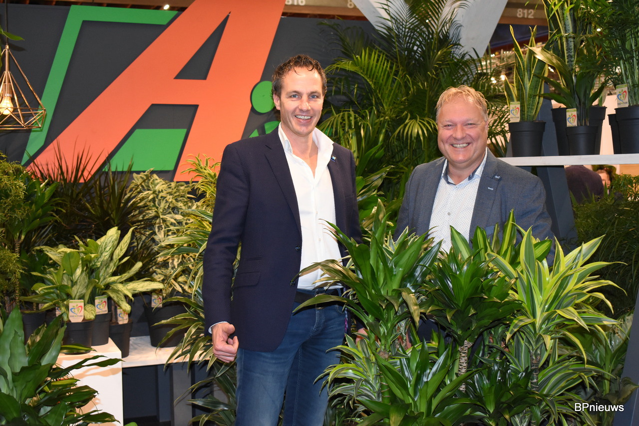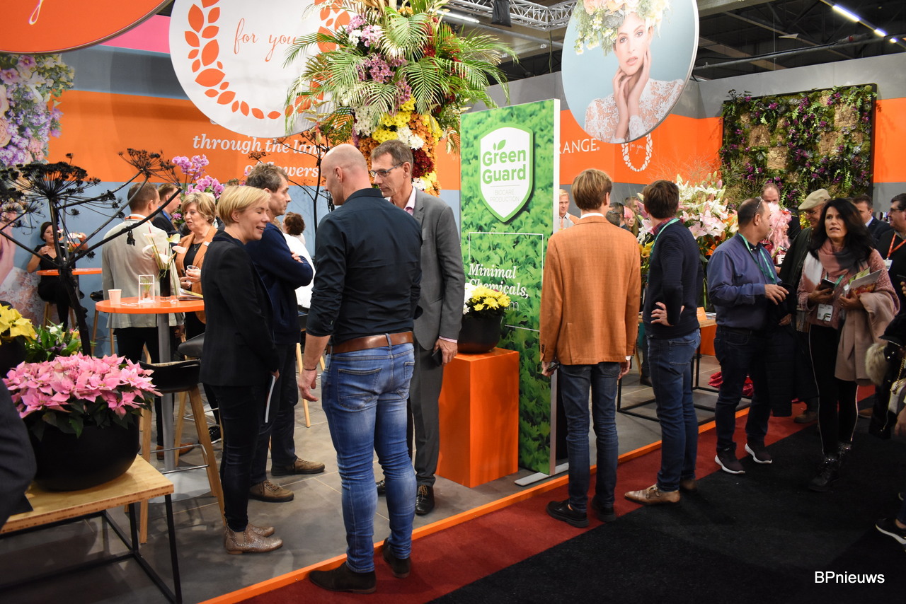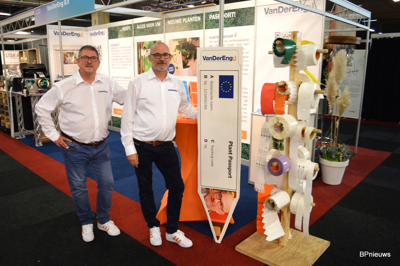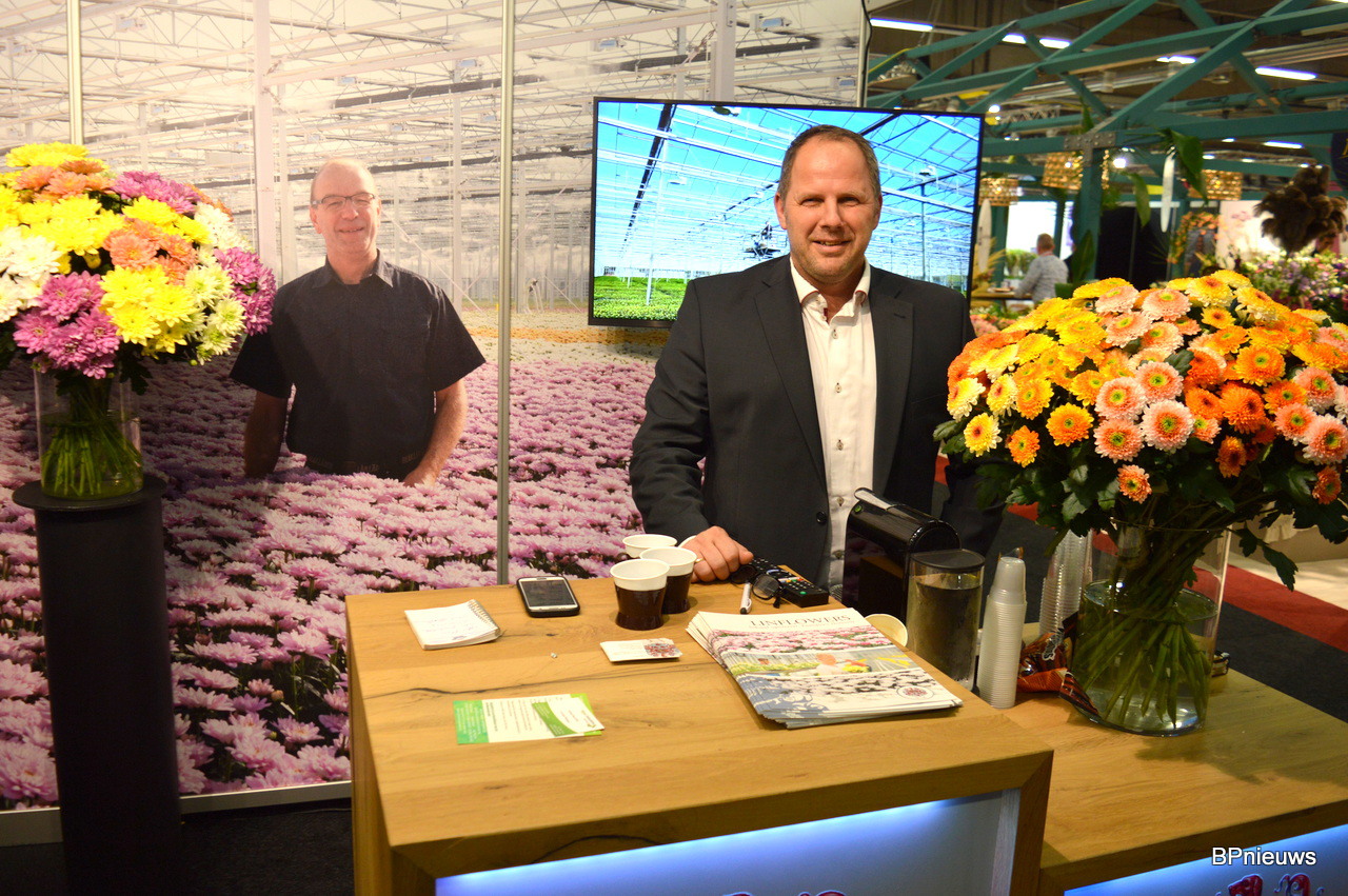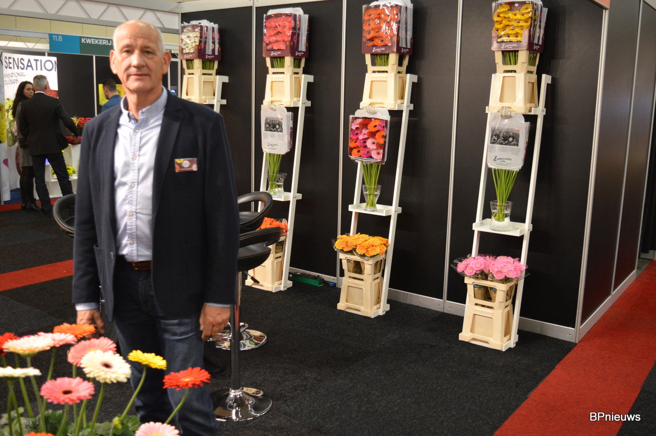 Ook bij de Bruin Plantpot zijn ze bezig met duurzaamheid en dat lieten ze zien door middel van hun nieuwe pulp-tray. Everard de Bruin met de gloednieuwe 8 gaats pulptray. Het is een echte combi tray verteld Everard en door de flexibele klembogen,die in de gaten gevestigd zijn, kun je potten van maat 12 t/m 14 samen in één tray zetten. In het midden staat Gerard van Doeburg met de Lingepot en rechts Ted Verbraeken met hun Terracotta en Olijfgroene potten.