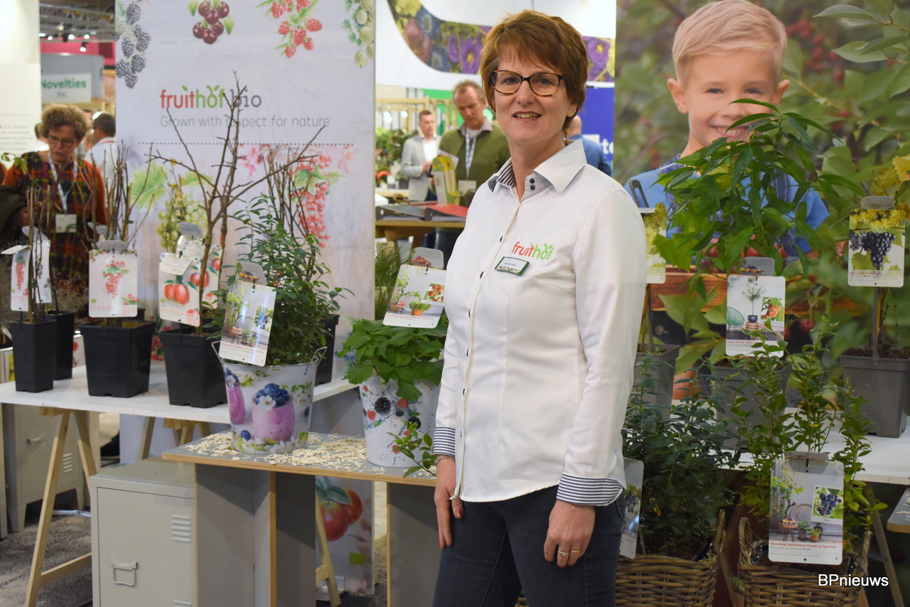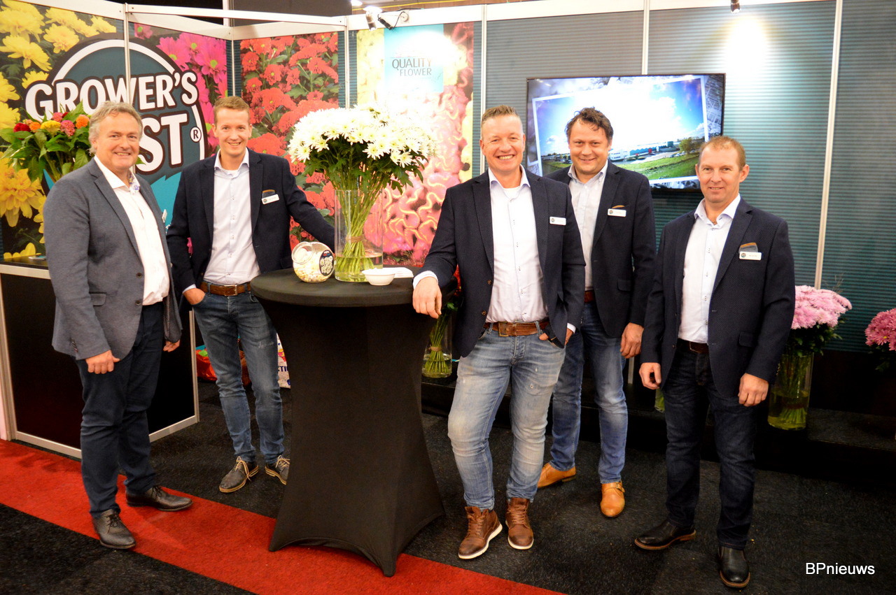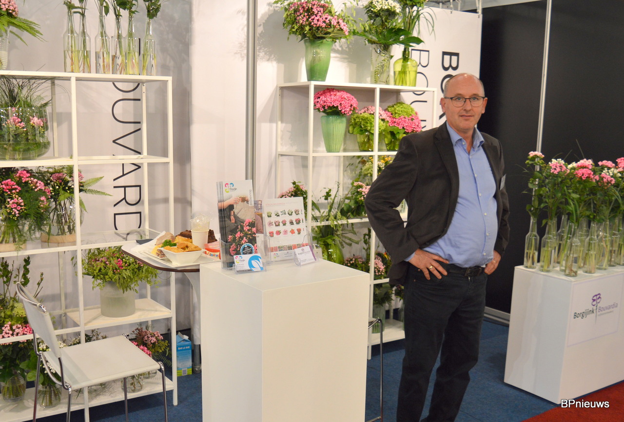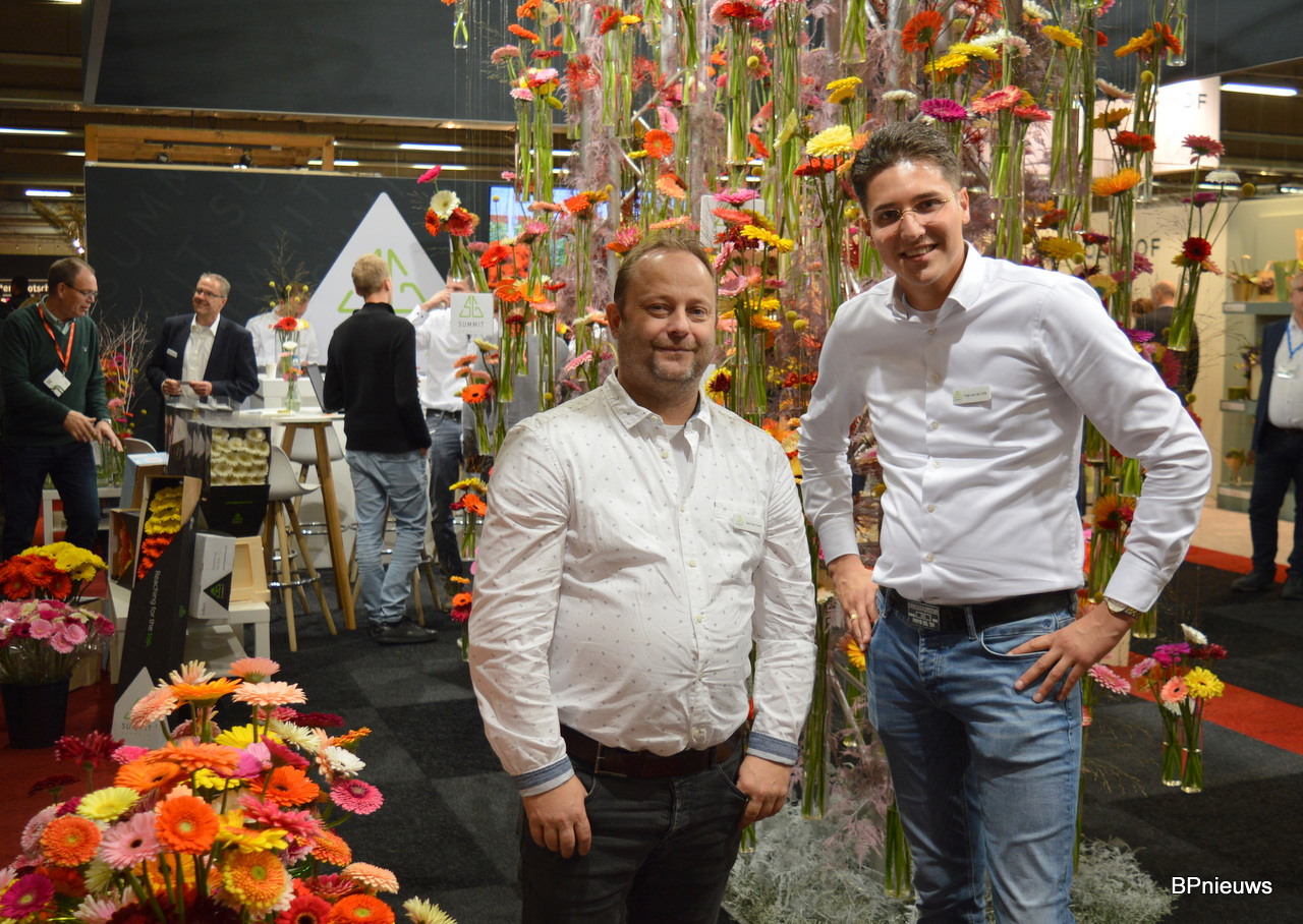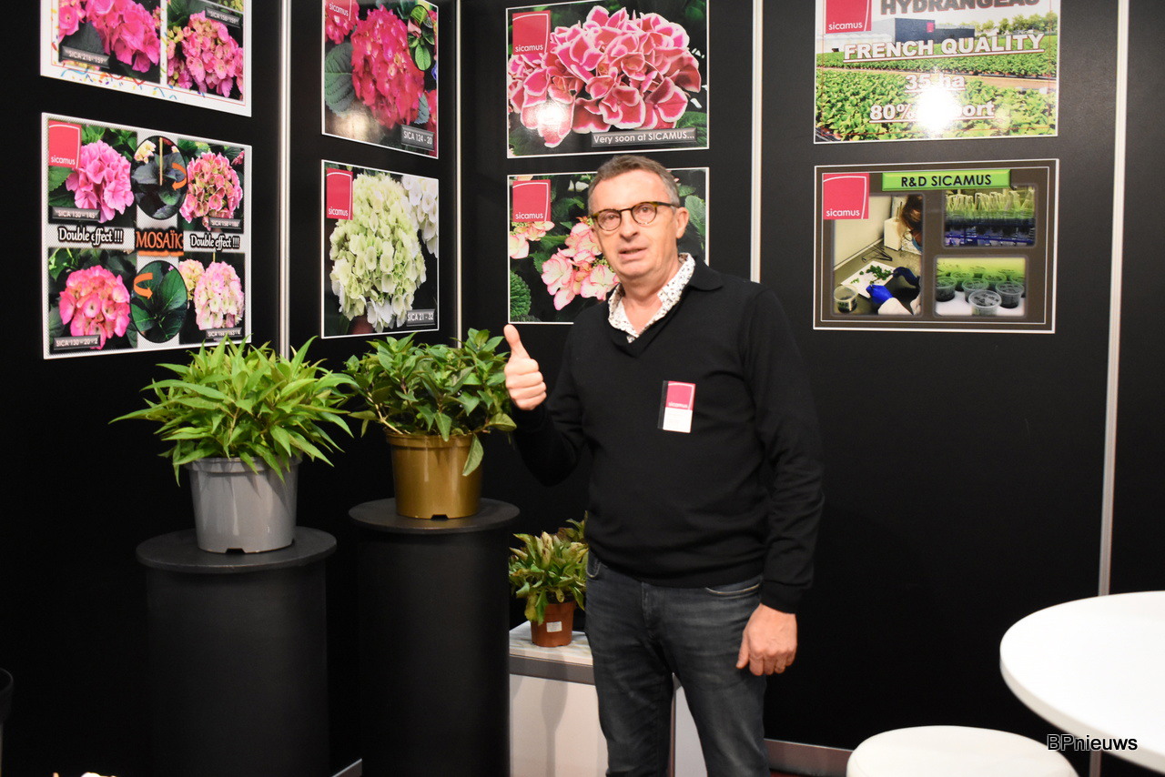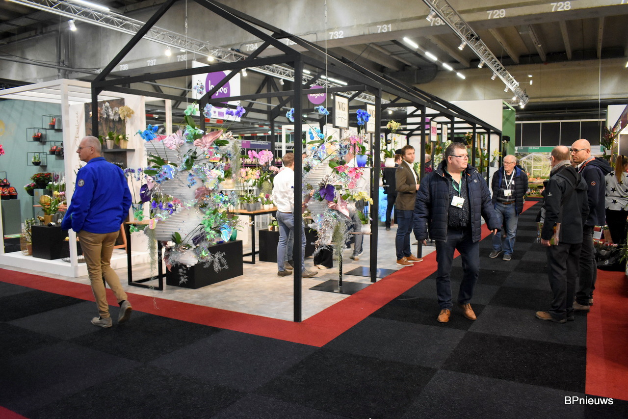 Ook bij de Bruin Plantpot zijn ze bezig met duurzaamheid en dat lieten ze zien door middel van hun nieuwe pulp-tray. Everard de Bruin met de gloednieuwe 8 gaats pulptray. Het is een echte combi tray verteld Everard en door de flexibele klembogen,die in de gaten gevestigd zijn, kun je potten van maat 12 t/m 14 samen in één tray zetten. In het midden staat Gerard van Doeburg met de Lingepot en rechts Ted Verbraeken met hun Terracotta en Olijfgroene potten.