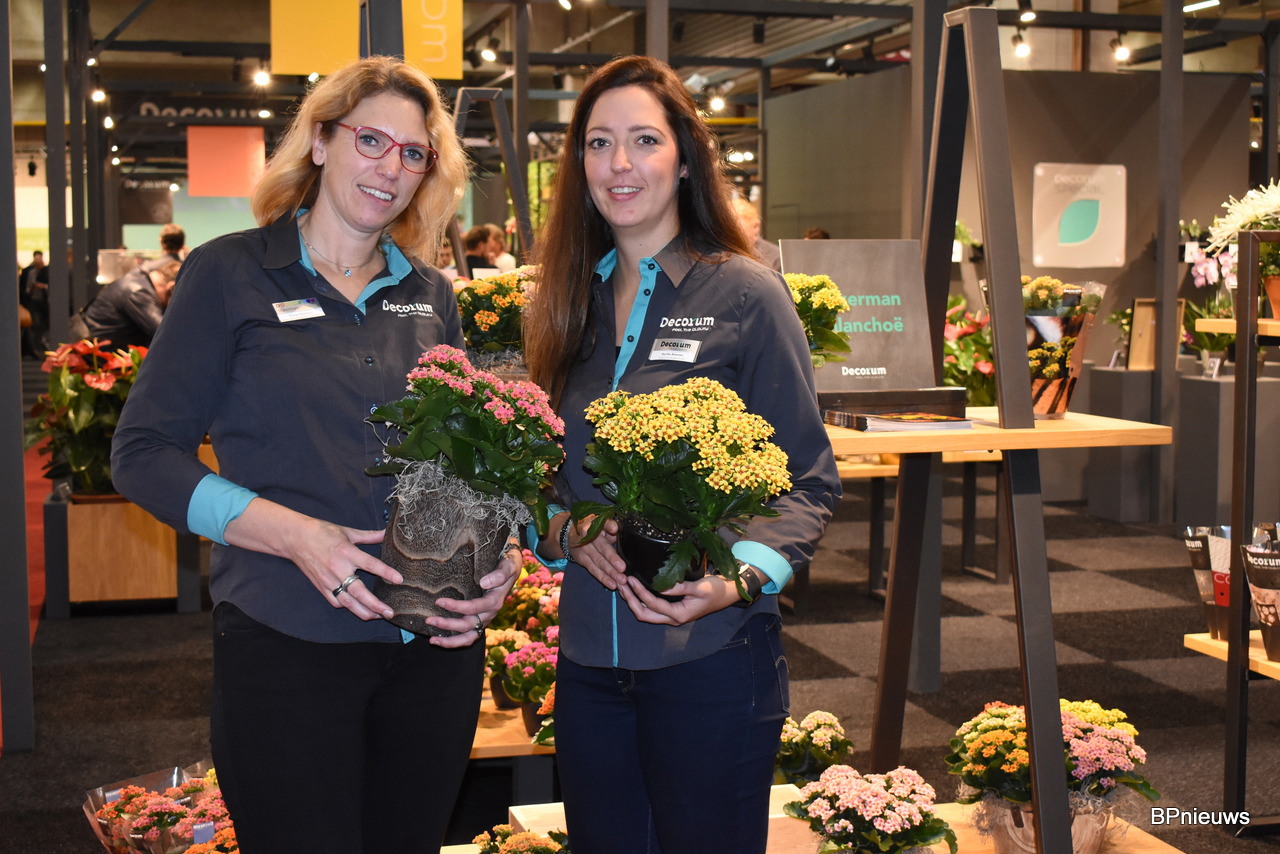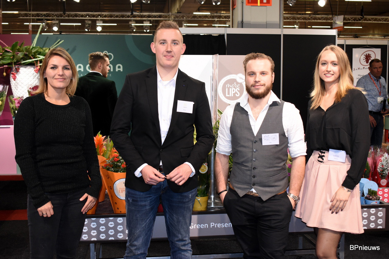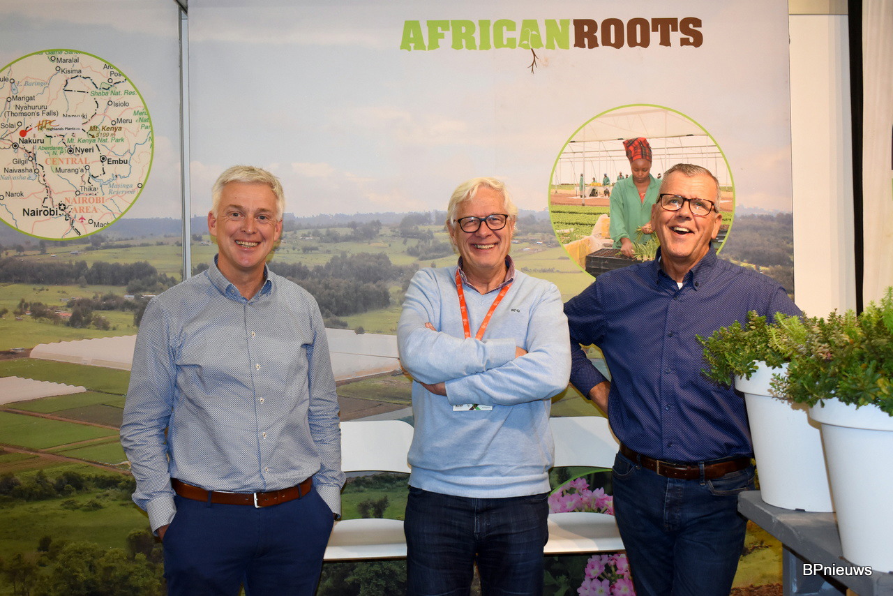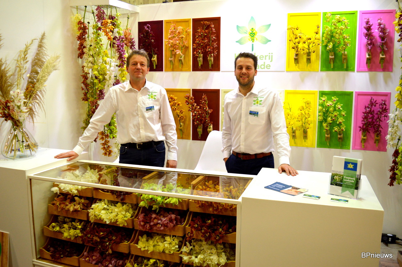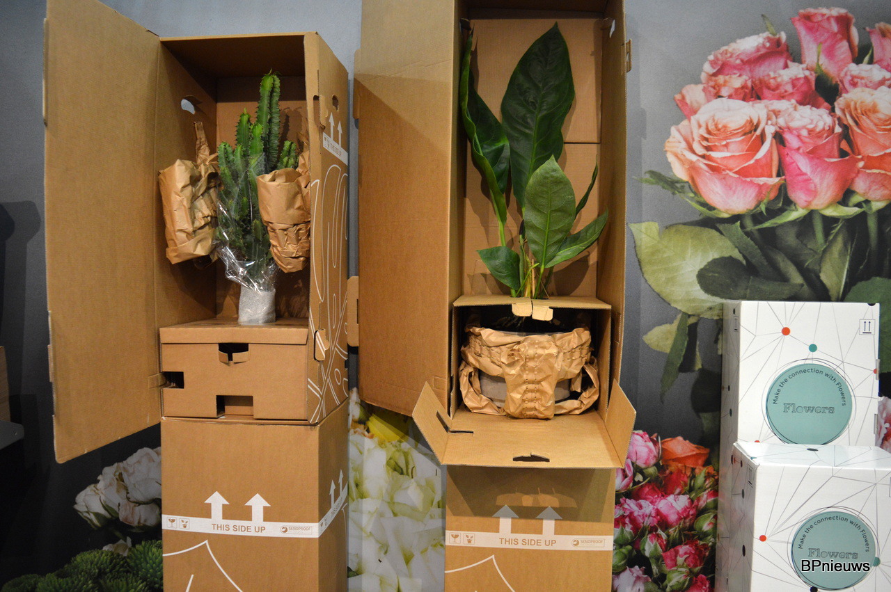 Ook bij de Bruin Plantpot zijn ze bezig met duurzaamheid en dat lieten ze zien door middel van hun nieuwe pulp-tray. Everard de Bruin met de gloednieuwe 8 gaats pulptray. Het is een echte combi tray verteld Everard en door de flexibele klembogen,die in de gaten gevestigd zijn, kun je potten van maat 12 t/m 14 samen in één tray zetten. In het midden staat Gerard van Doeburg met de Lingepot en rechts Ted Verbraeken met hun Terracotta en Olijfgroene potten.