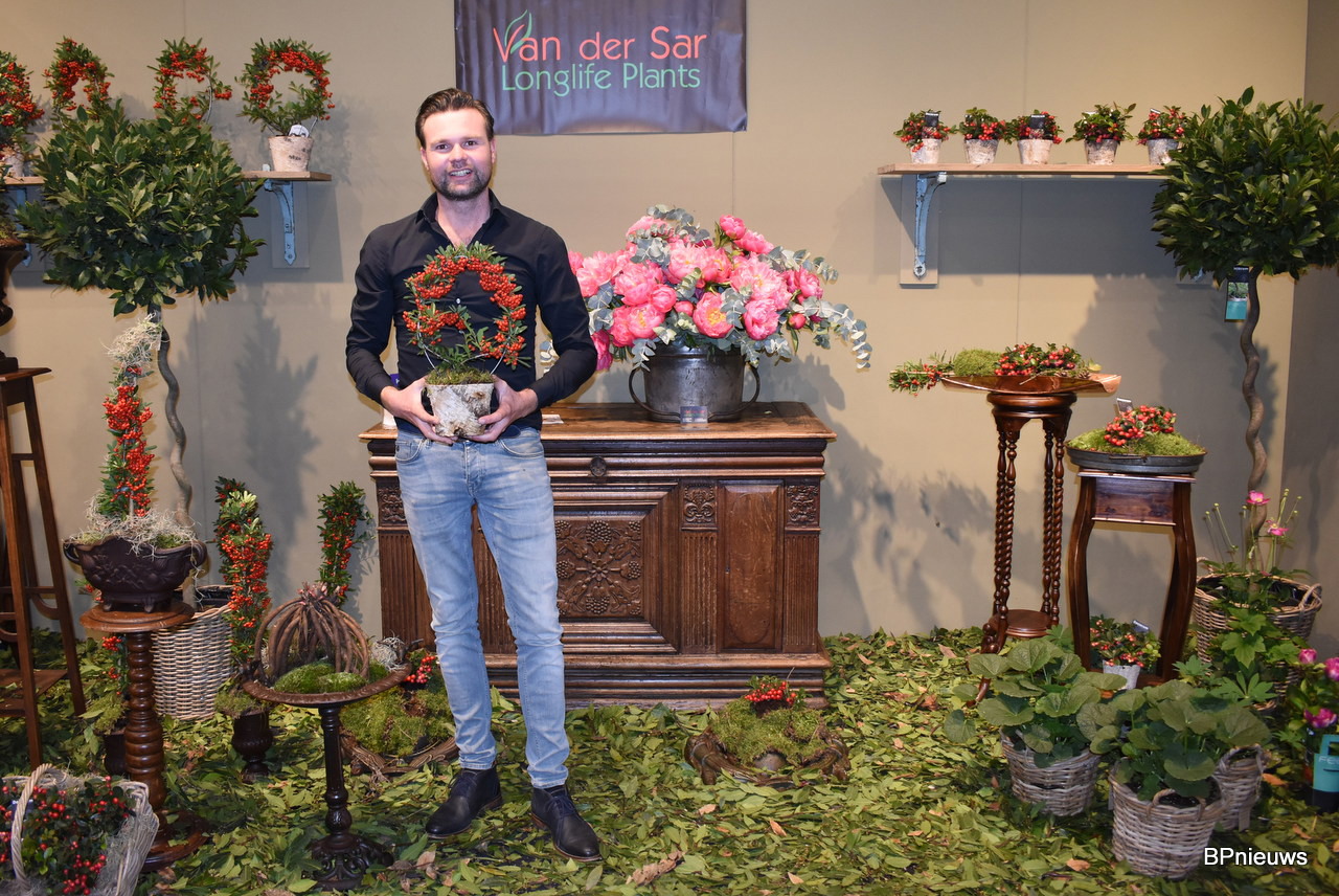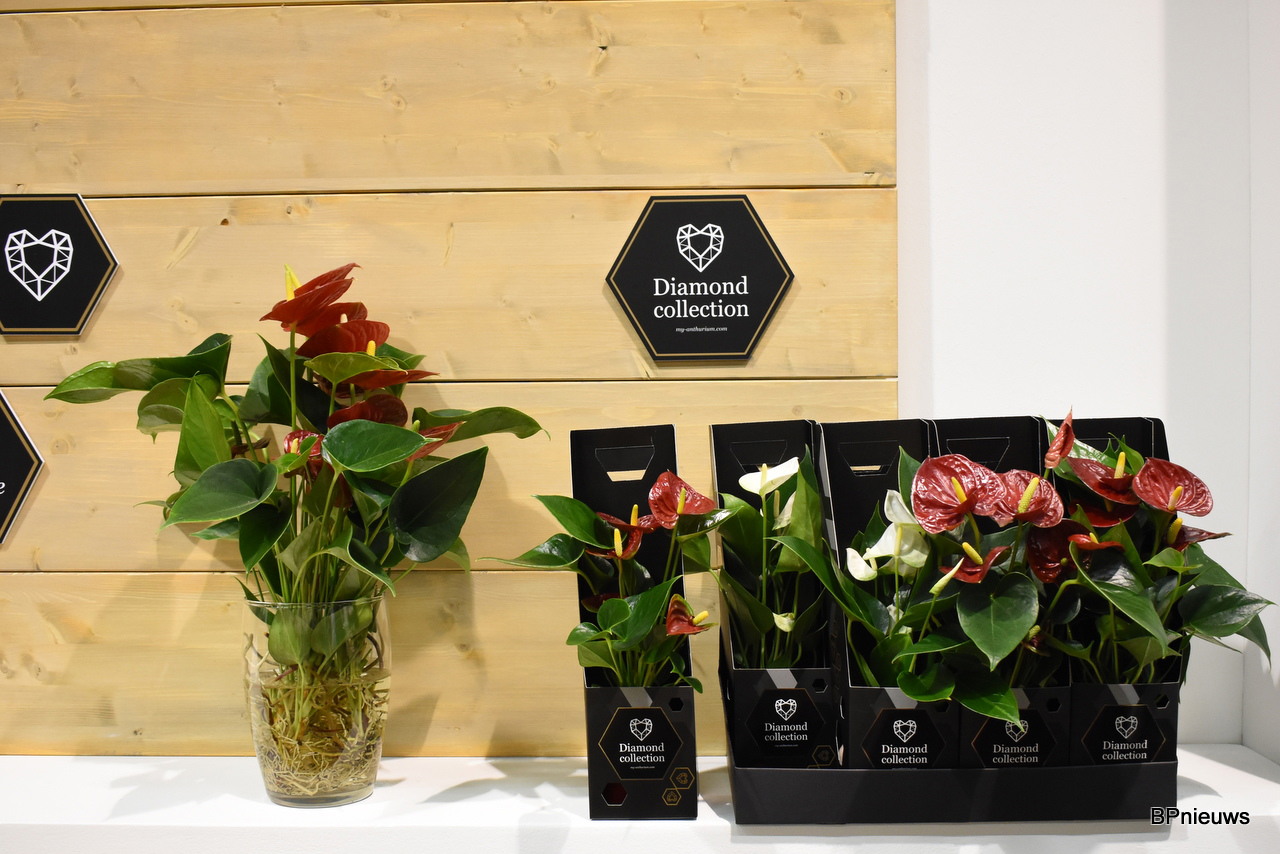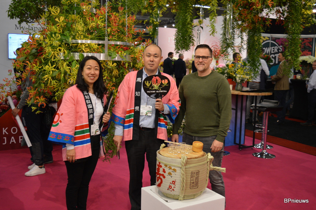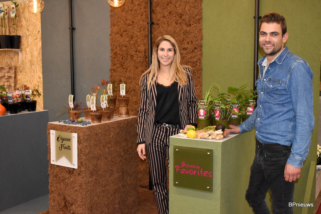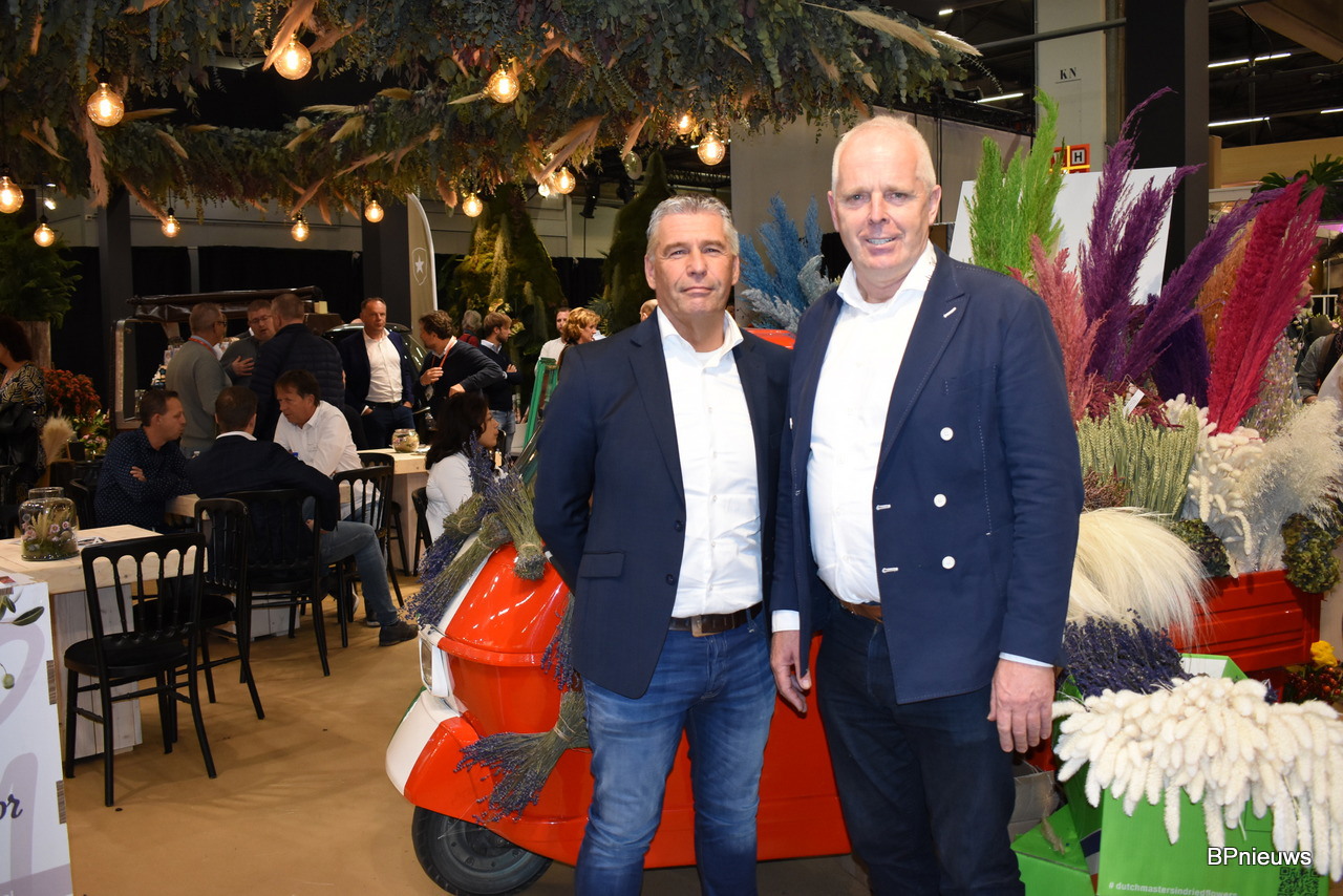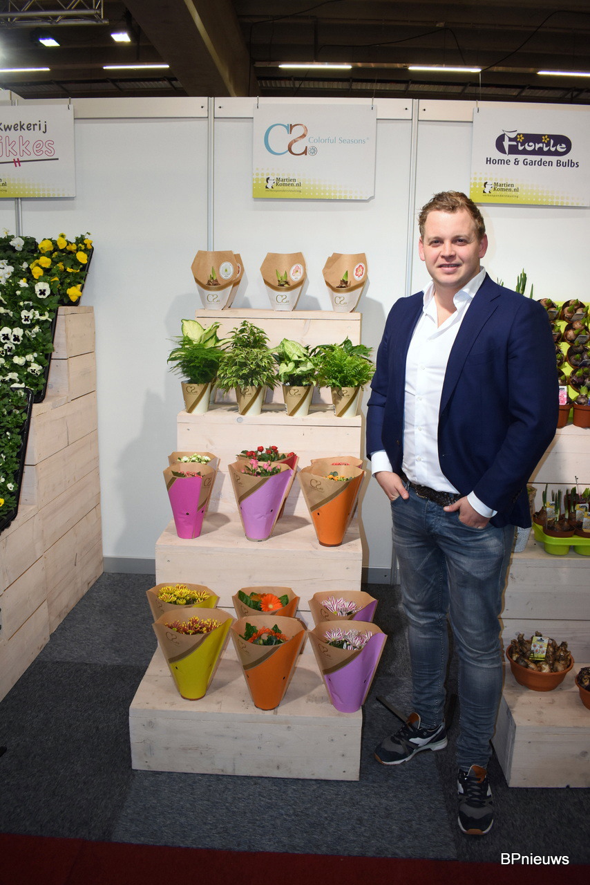 Ook bij de Bruin Plantpot zijn ze bezig met duurzaamheid en dat lieten ze zien door middel van hun nieuwe pulp-tray. Everard de Bruin met de gloednieuwe 8 gaats pulptray. Het is een echte combi tray verteld Everard en door de flexibele klembogen,die in de gaten gevestigd zijn, kun je potten van maat 12 t/m 14 samen in één tray zetten. In het midden staat Gerard van Doeburg met de Lingepot en rechts Ted Verbraeken met hun Terracotta en Olijfgroene potten.
