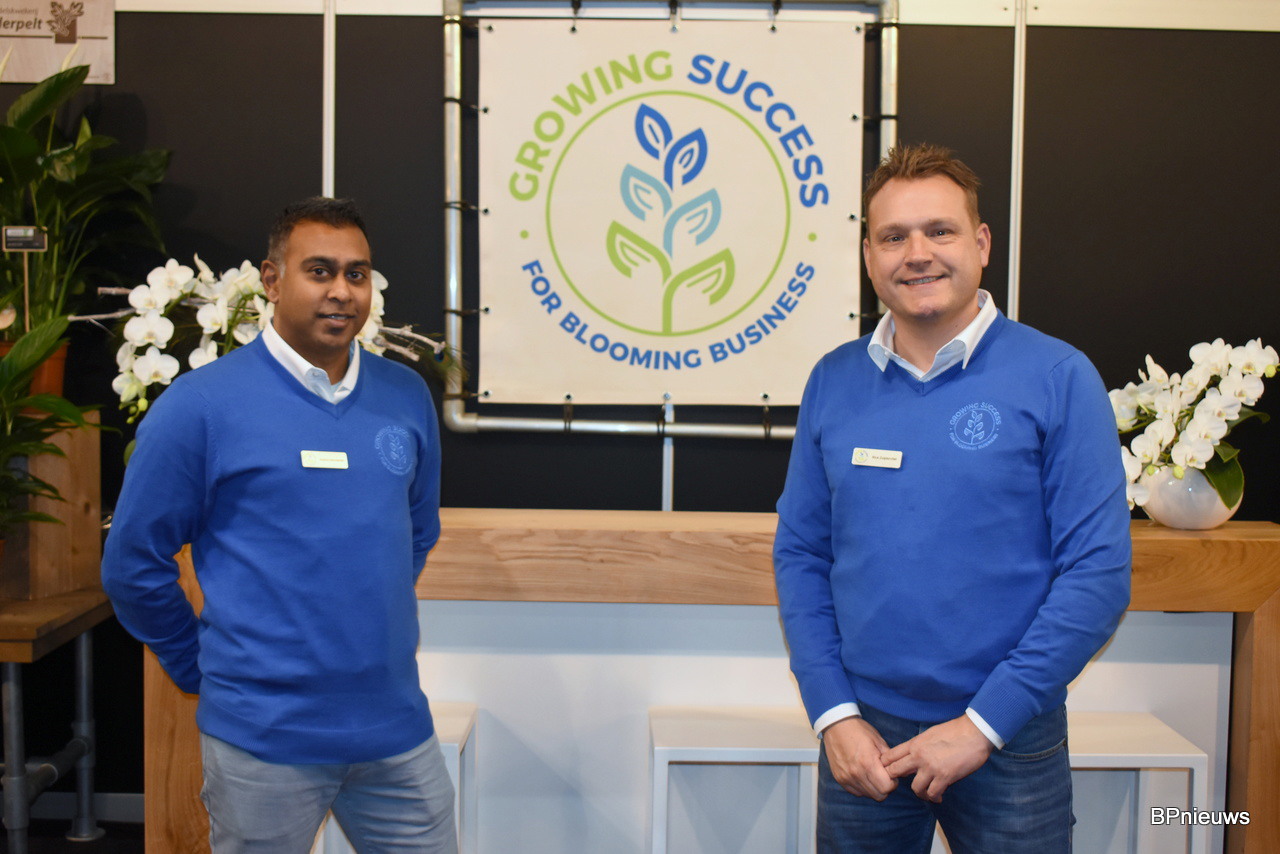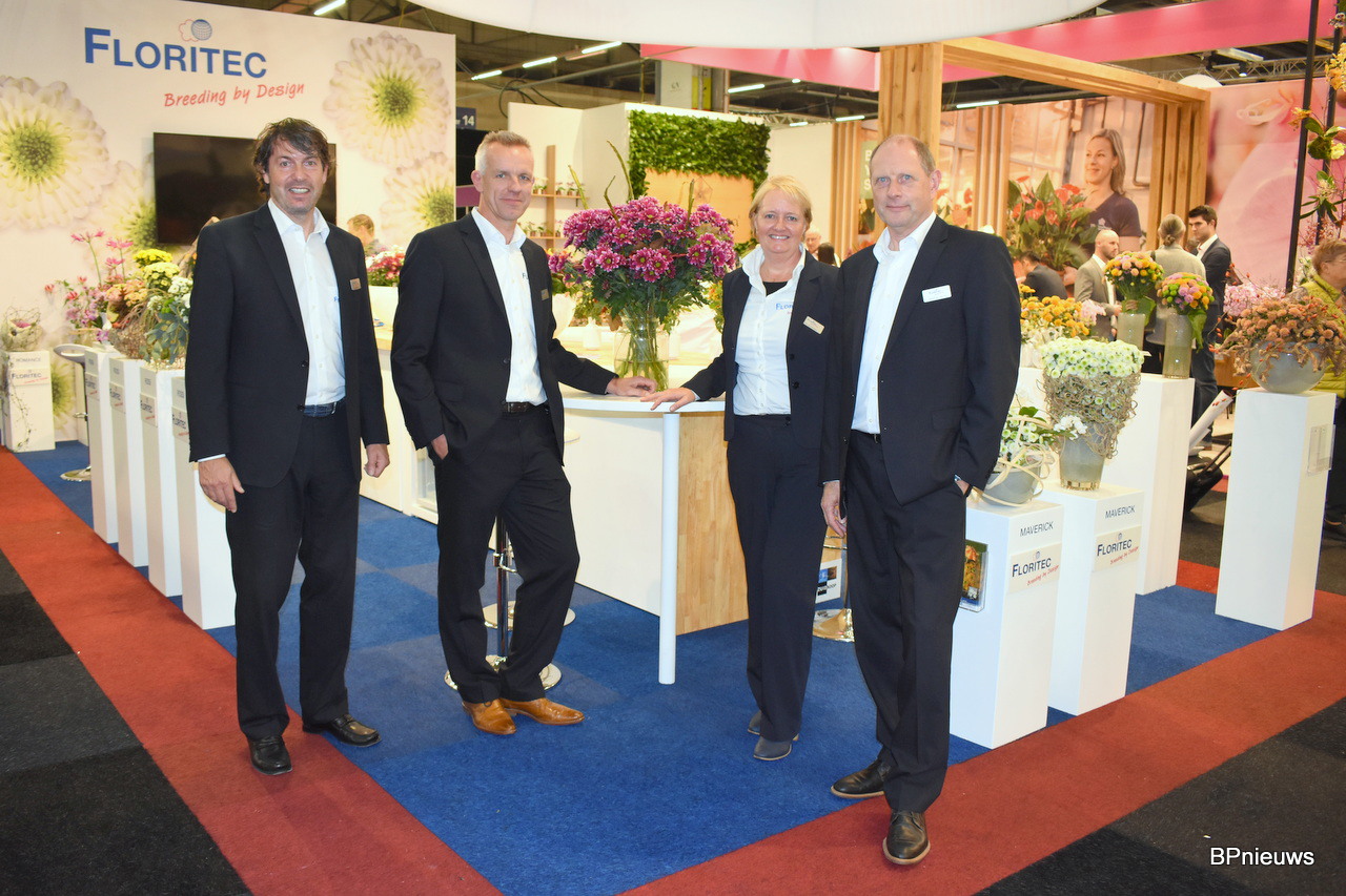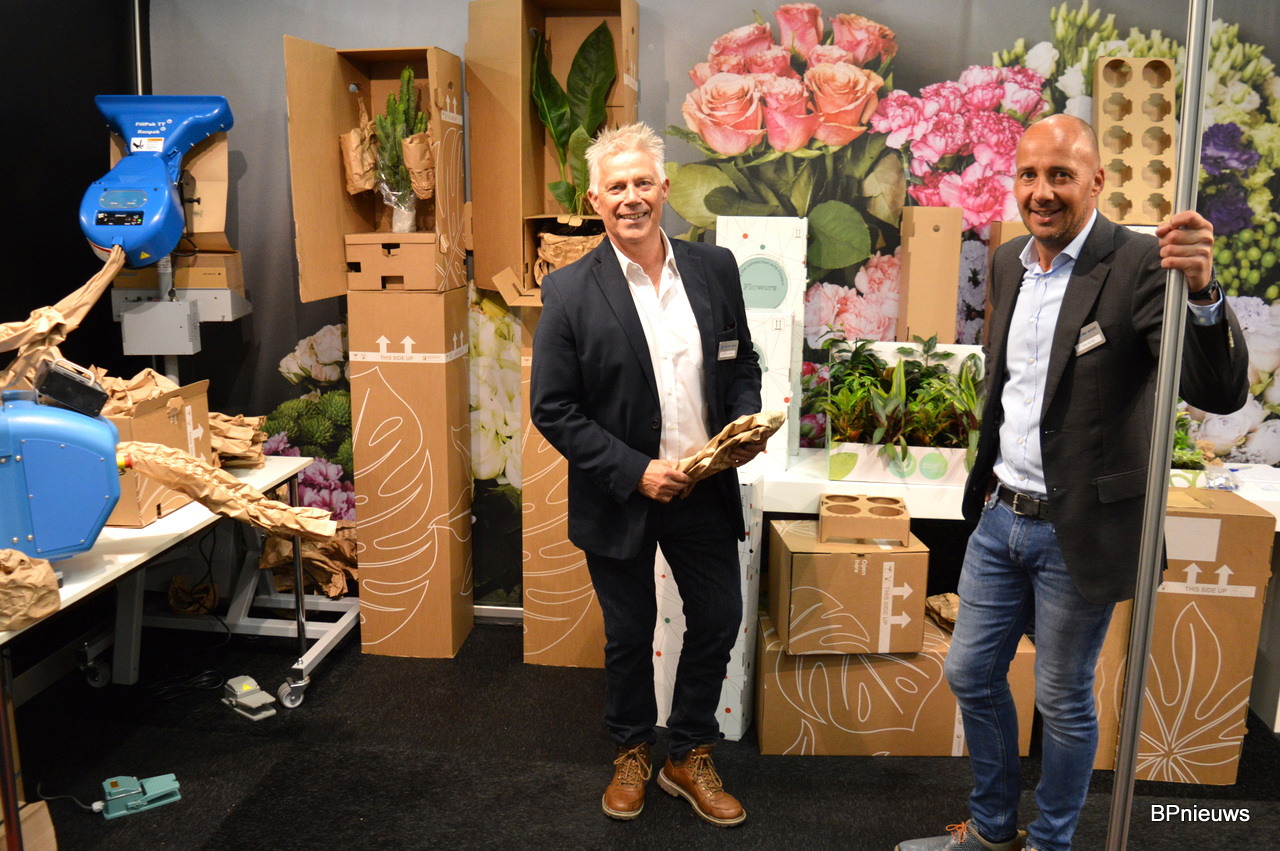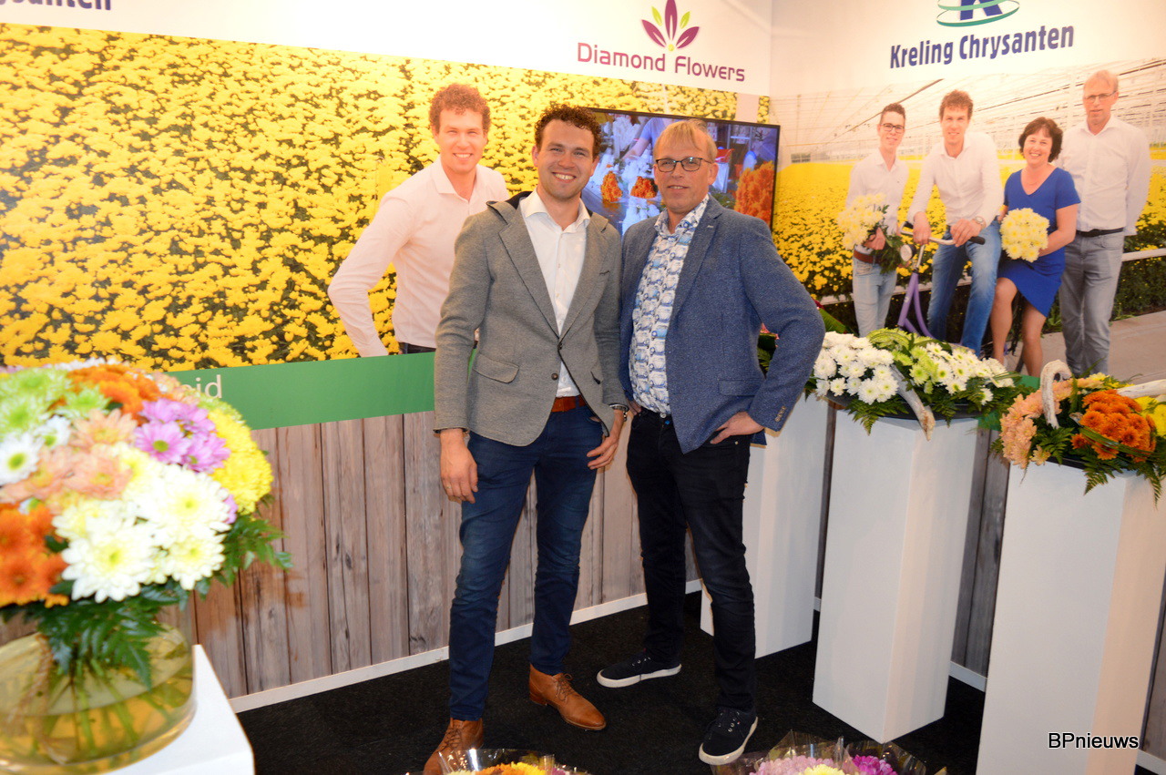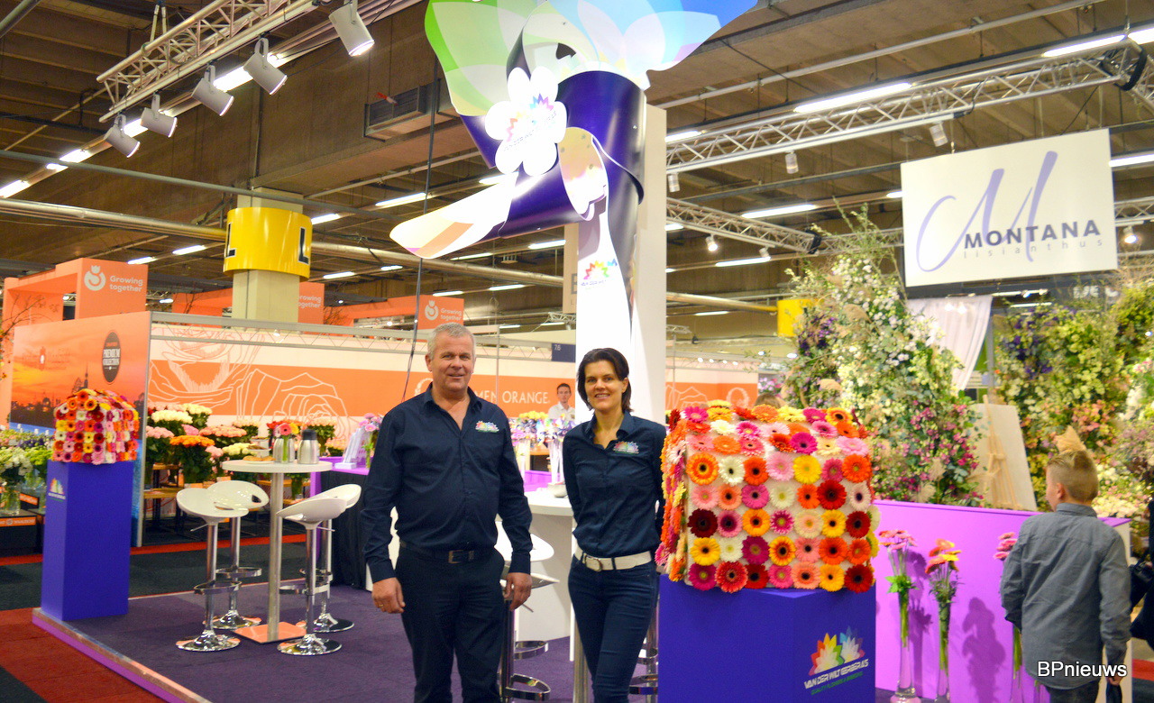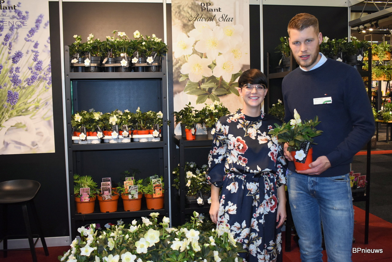 Ook bij de Bruin Plantpot zijn ze bezig met duurzaamheid en dat lieten ze zien door middel van hun nieuwe pulp-tray. Everard de Bruin met de gloednieuwe 8 gaats pulptray. Het is een echte combi tray verteld Everard en door de flexibele klembogen,die in de gaten gevestigd zijn, kun je potten van maat 12 t/m 14 samen in één tray zetten. In het midden staat Gerard van Doeburg met de Lingepot en rechts Ted Verbraeken met hun Terracotta en Olijfgroene potten.
