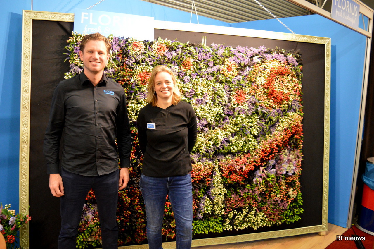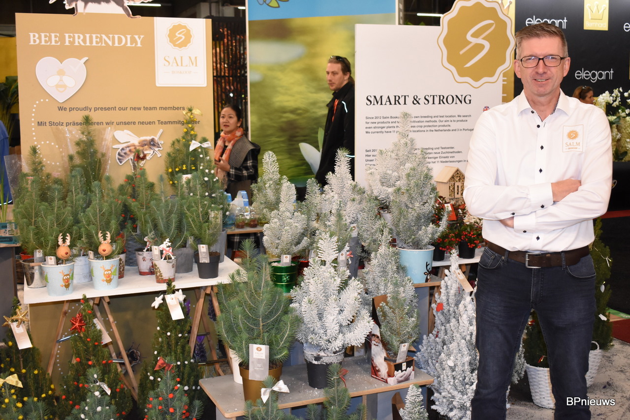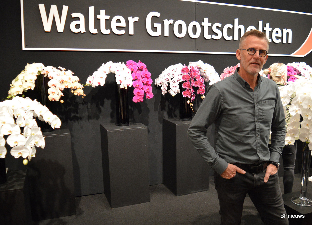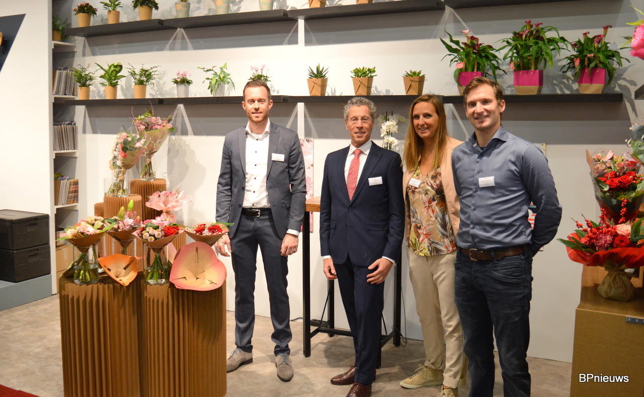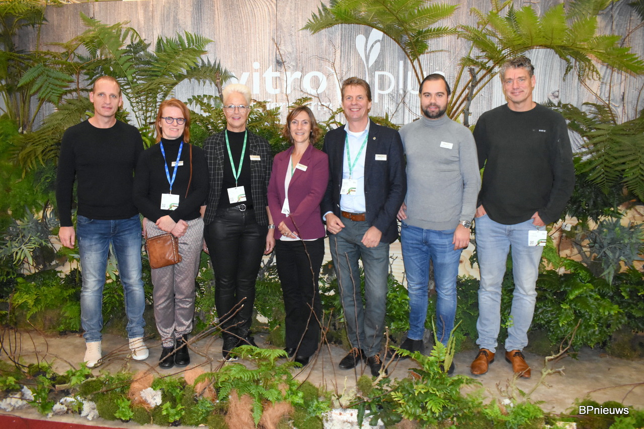Ook bij de Bruin Plantpot zijn ze bezig met duurzaamheid en dat lieten ze zien door middel van hun nieuwe pulp-tray. Everard de Bruin met de gloednieuwe 8 gaats pulptray. Het is een echte combi tray verteld Everard en door de flexibele klembogen,die in de gaten gevestigd zijn, kun je potten van maat 12 t/m 14 samen in één tray zetten. In het midden staat Gerard van Doeburg met de Lingepot en rechts Ted Verbraeken met hun Terracotta en Olijfgroene potten.