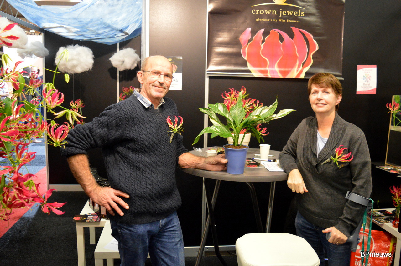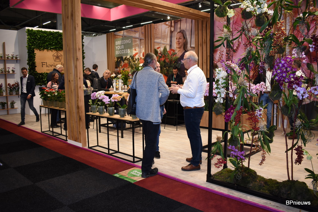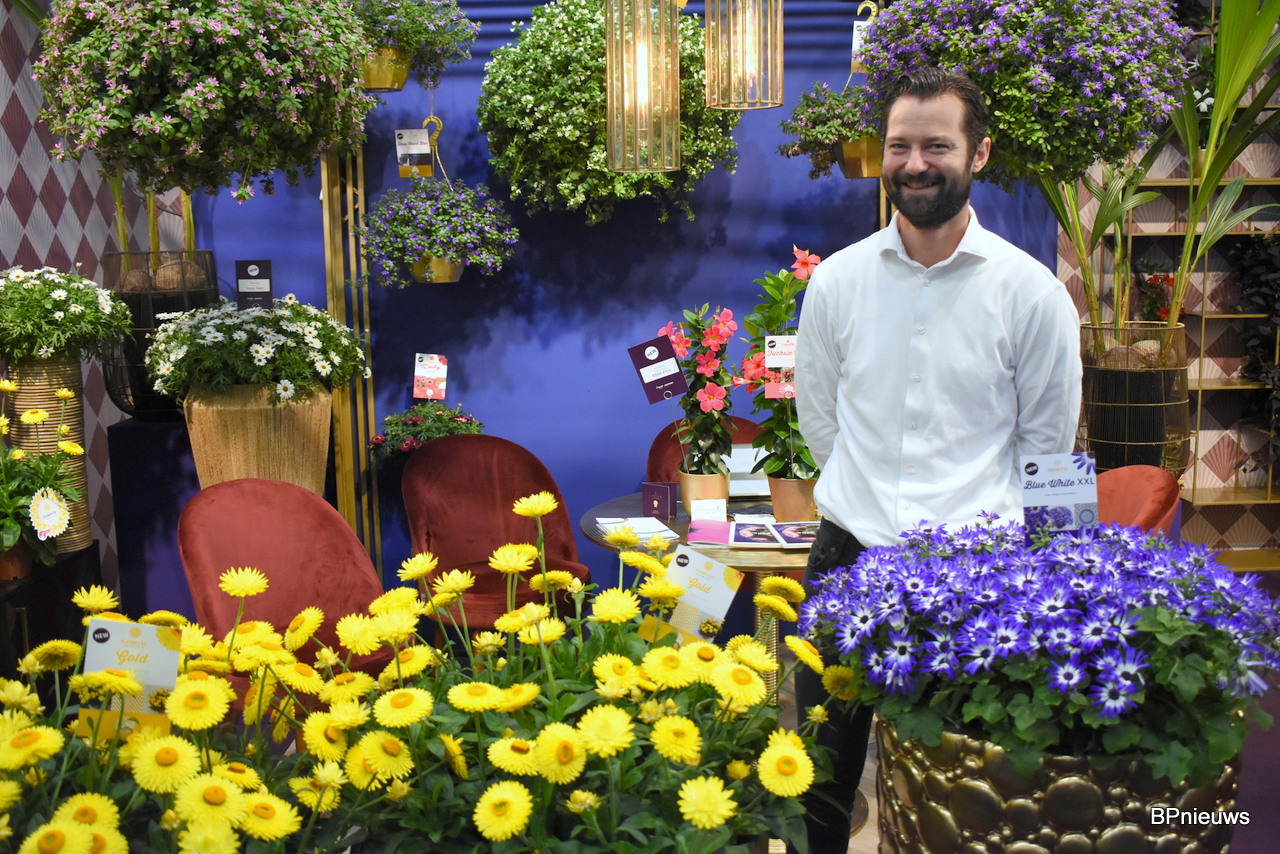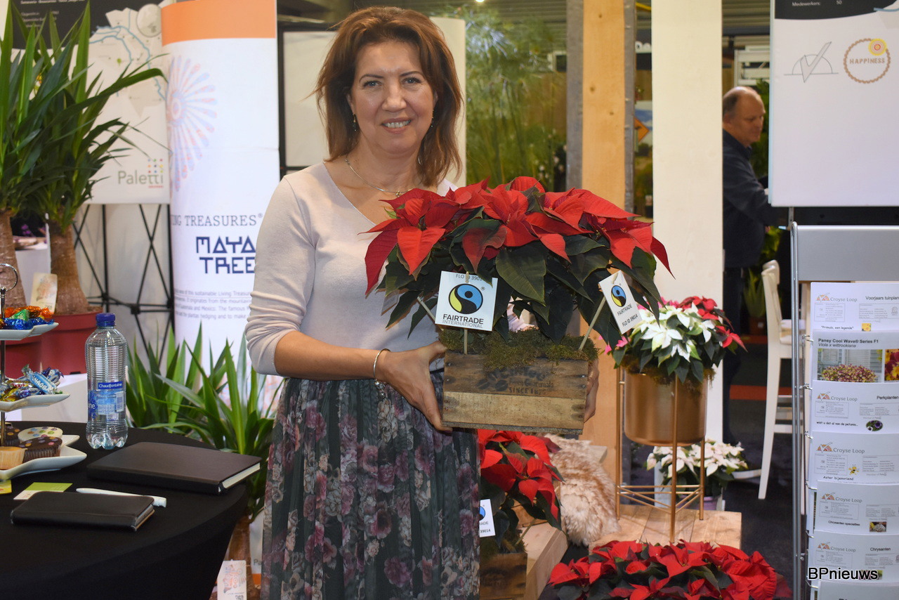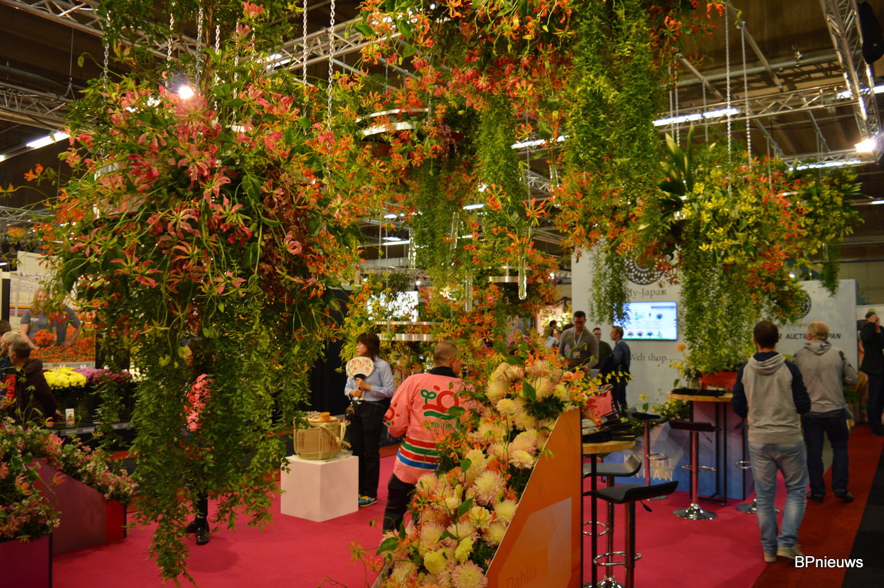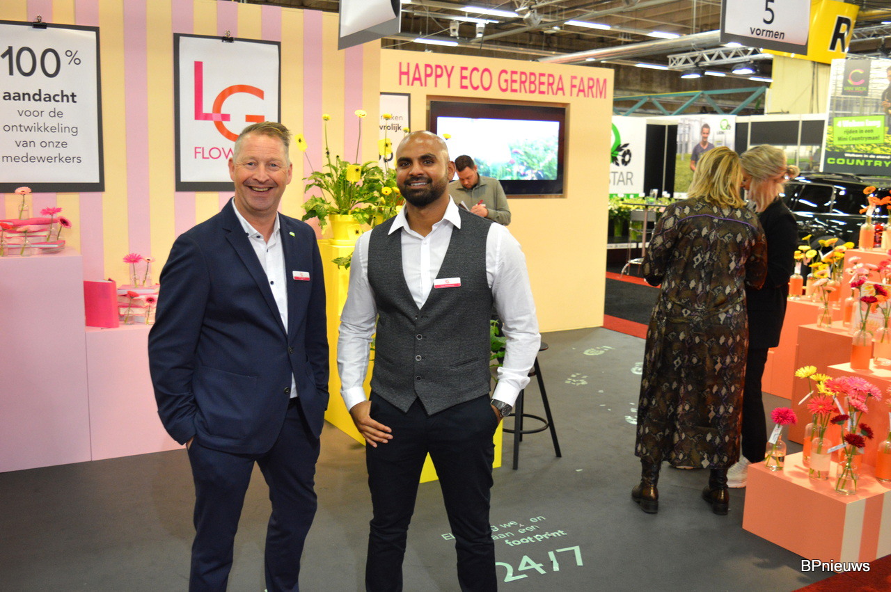 Ook bij de Bruin Plantpot zijn ze bezig met duurzaamheid en dat lieten ze zien door middel van hun nieuwe pulp-tray. Everard de Bruin met de gloednieuwe 8 gaats pulptray. Het is een echte combi tray verteld Everard en door de flexibele klembogen,die in de gaten gevestigd zijn, kun je potten van maat 12 t/m 14 samen in één tray zetten. In het midden staat Gerard van Doeburg met de Lingepot en rechts Ted Verbraeken met hun Terracotta en Olijfgroene potten.