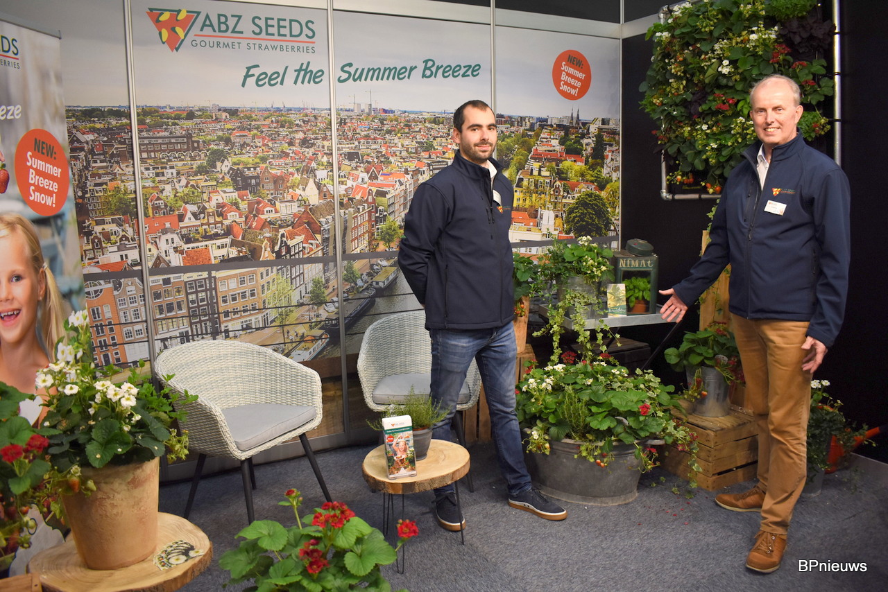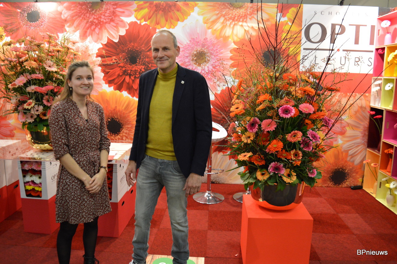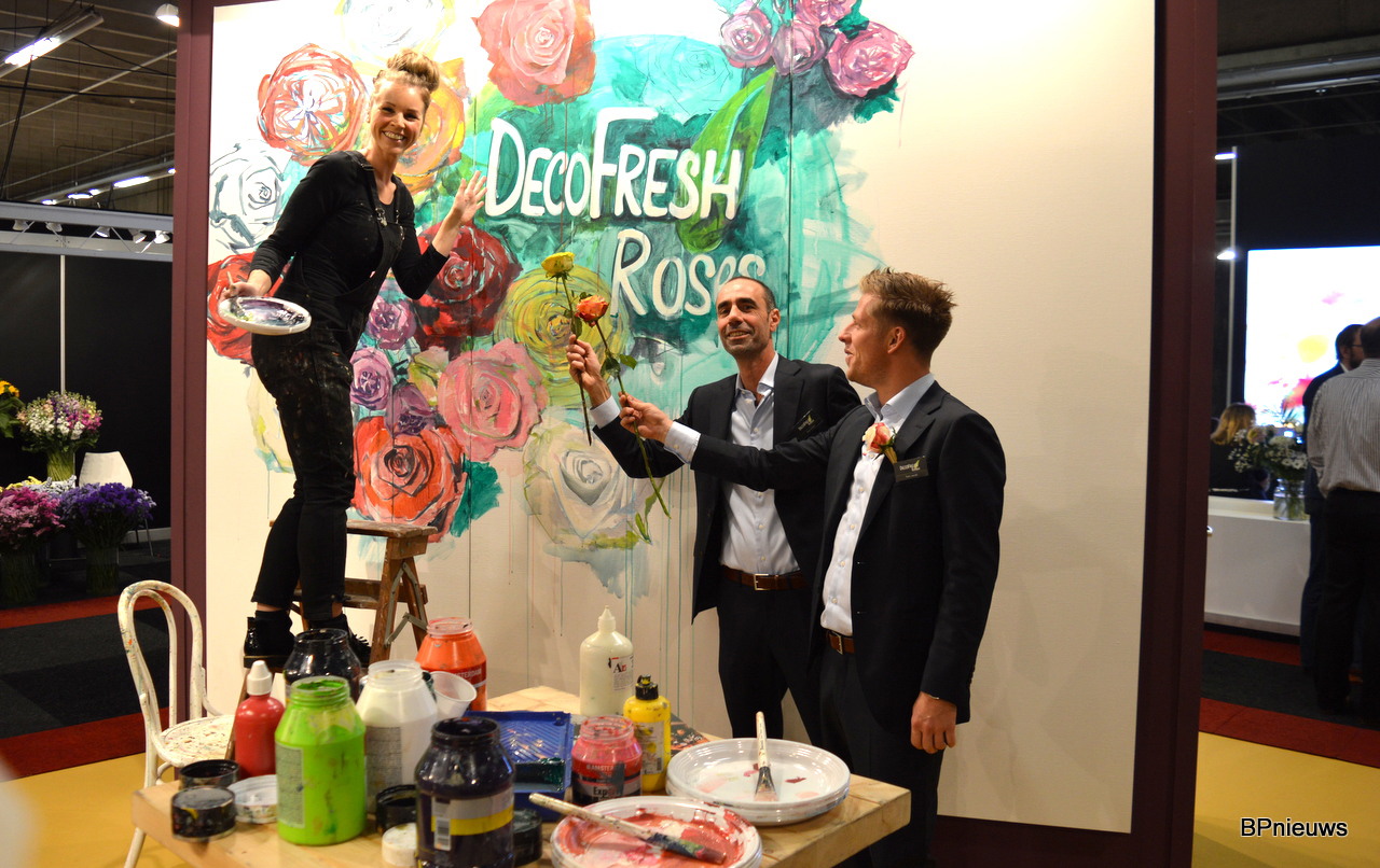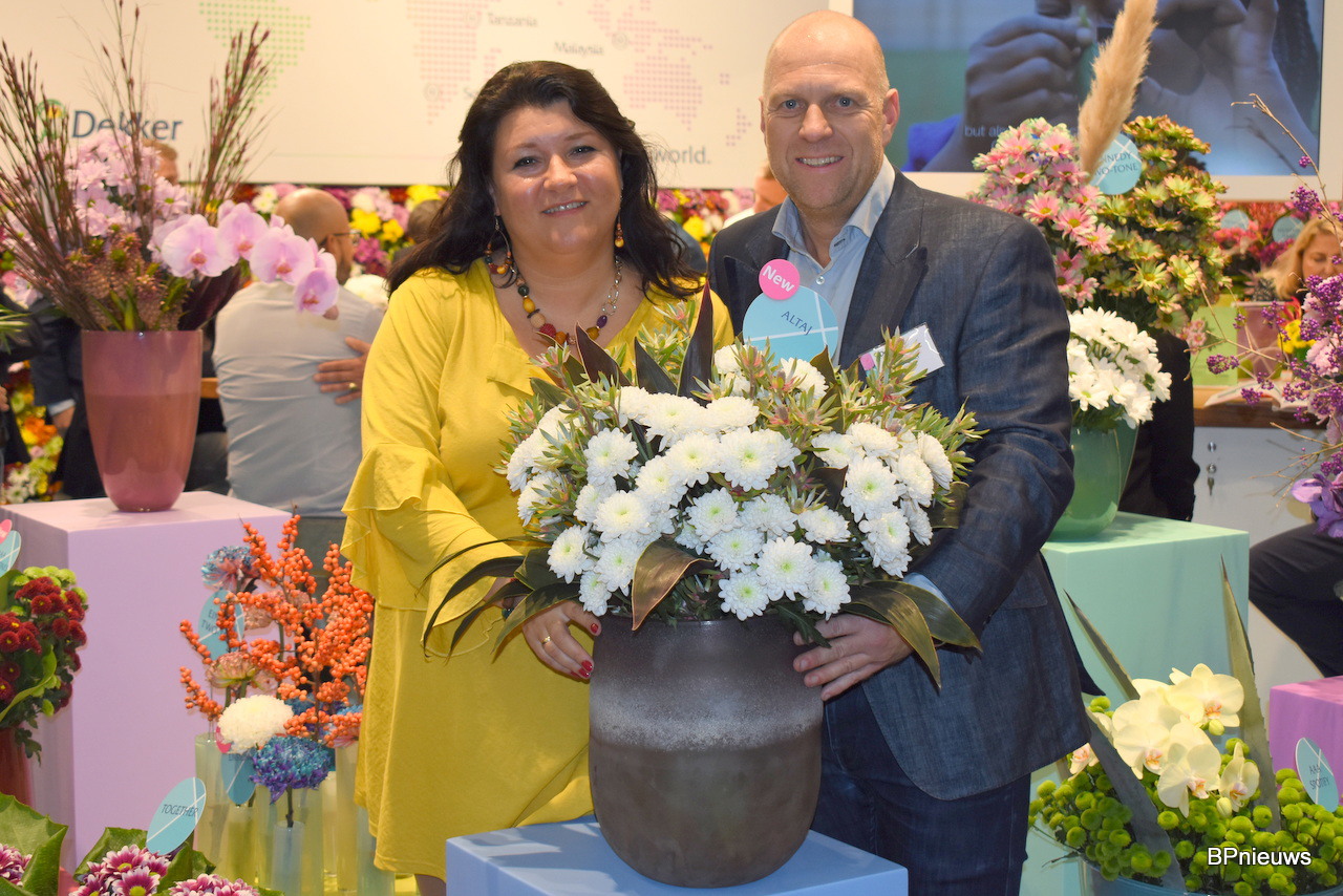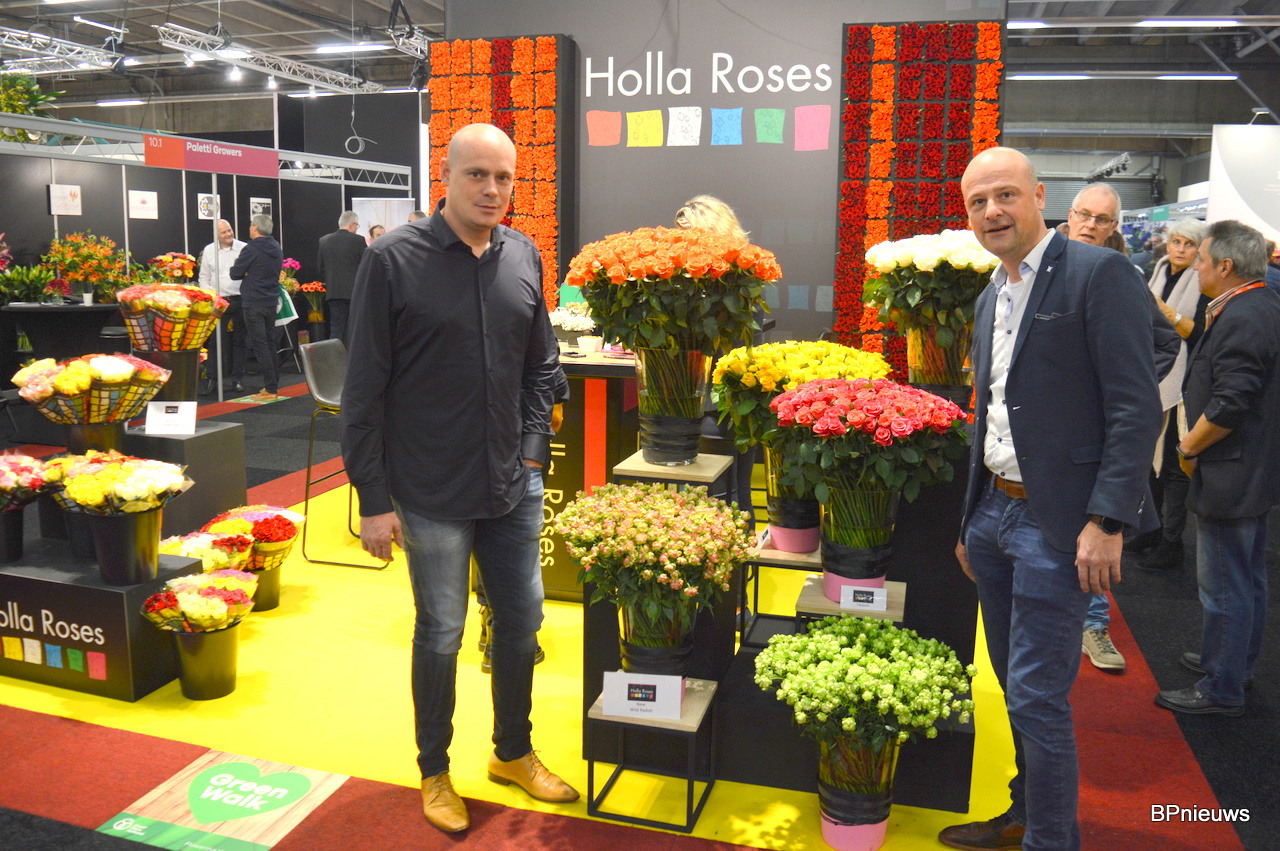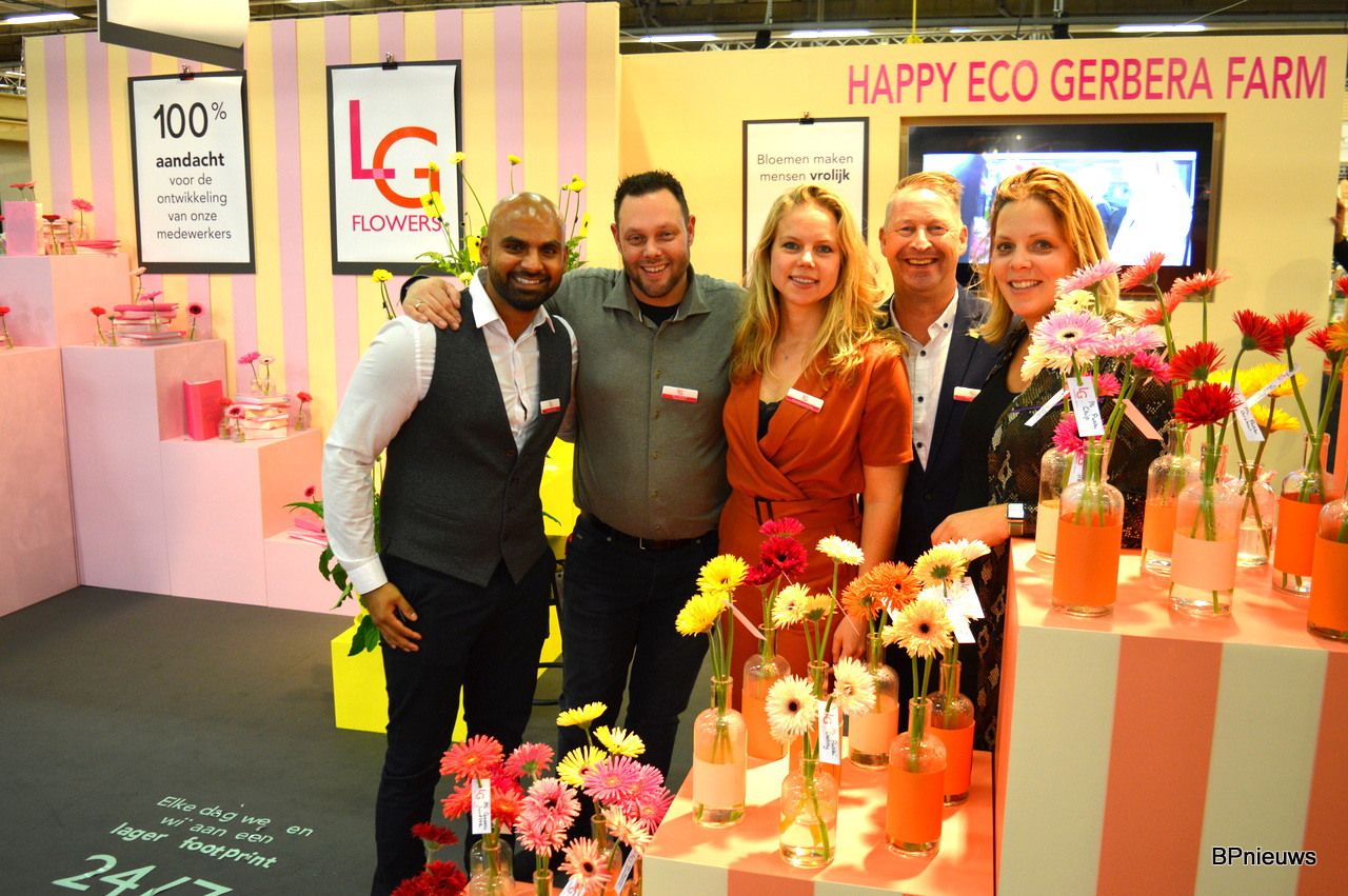 Ook bij de Bruin Plantpot zijn ze bezig met duurzaamheid en dat lieten ze zien door middel van hun nieuwe pulp-tray. Everard de Bruin met de gloednieuwe 8 gaats pulptray. Het is een echte combi tray verteld Everard en door de flexibele klembogen,die in de gaten gevestigd zijn, kun je potten van maat 12 t/m 14 samen in één tray zetten. In het midden staat Gerard van Doeburg met de Lingepot en rechts Ted Verbraeken met hun Terracotta en Olijfgroene potten.
