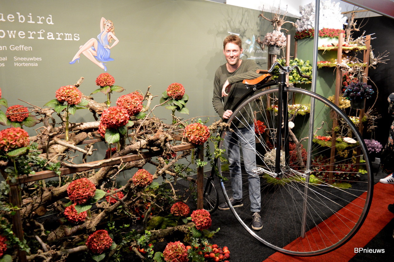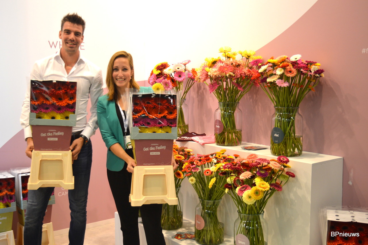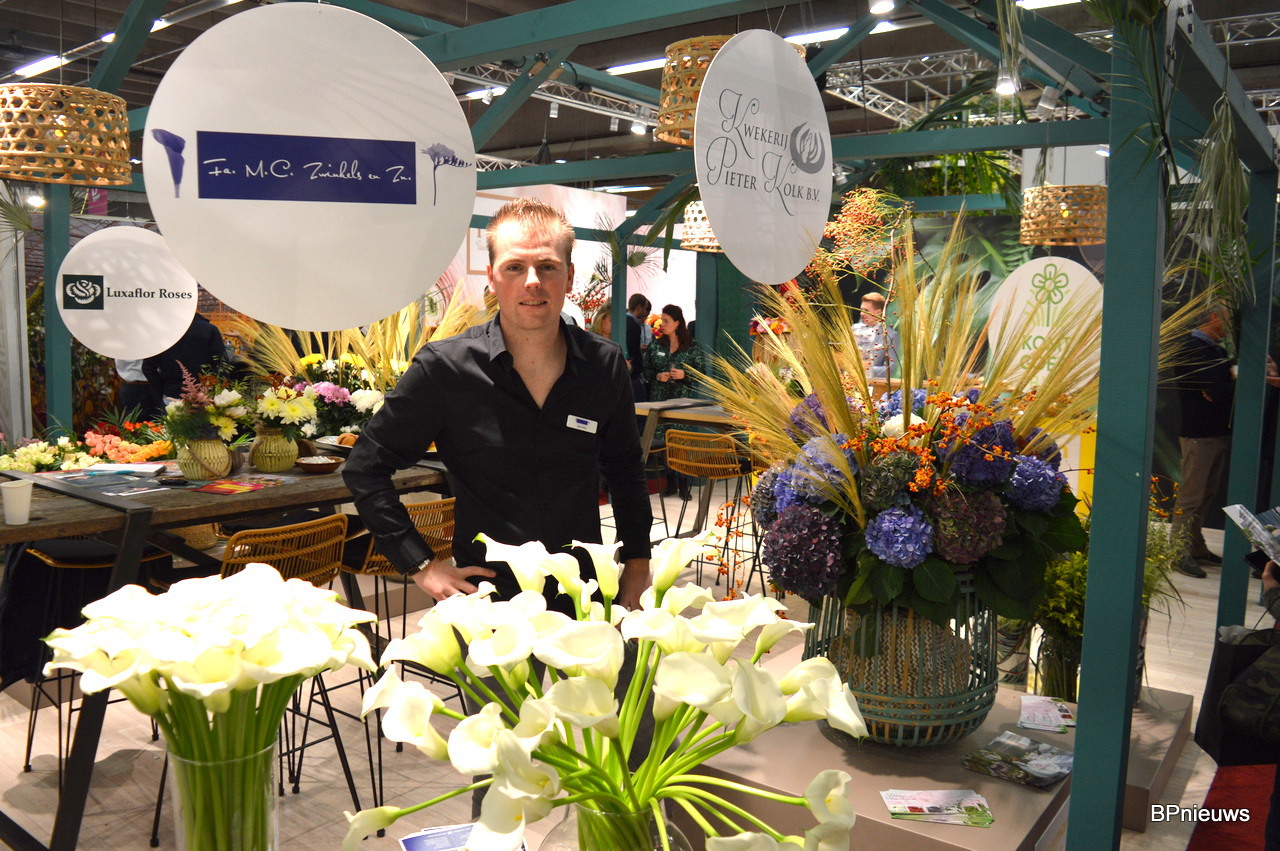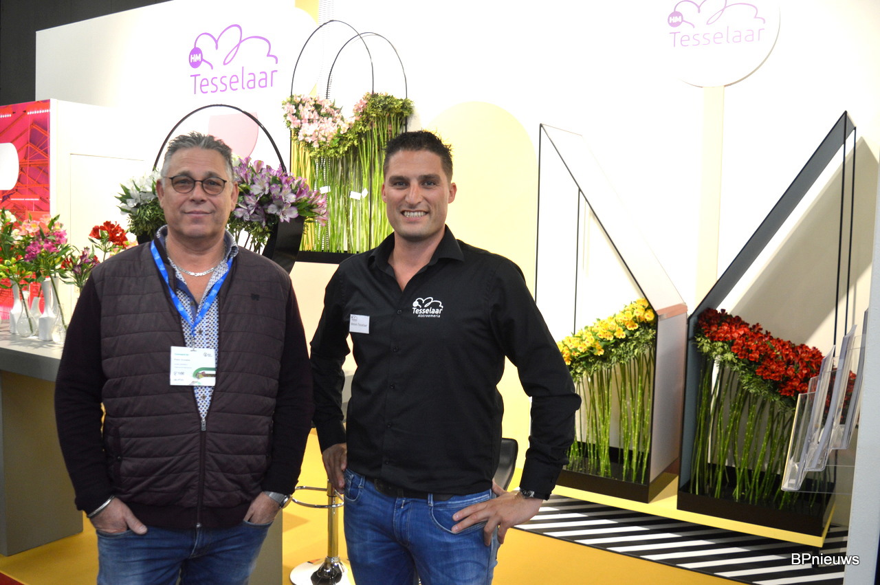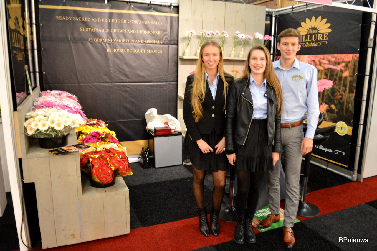 Ook bij de Bruin Plantpot zijn ze bezig met duurzaamheid en dat lieten ze zien door middel van hun nieuwe pulp-tray. Everard de Bruin met de gloednieuwe 8 gaats pulptray. Het is een echte combi tray verteld Everard en door de flexibele klembogen,die in de gaten gevestigd zijn, kun je potten van maat 12 t/m 14 samen in één tray zetten. In het midden staat Gerard van Doeburg met de Lingepot en rechts Ted Verbraeken met hun Terracotta en Olijfgroene potten.