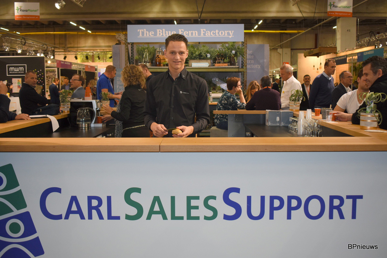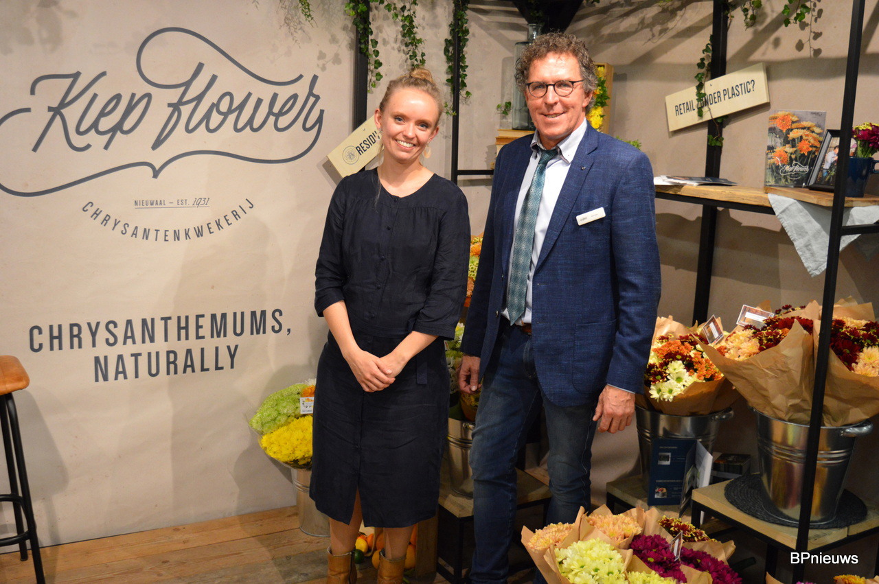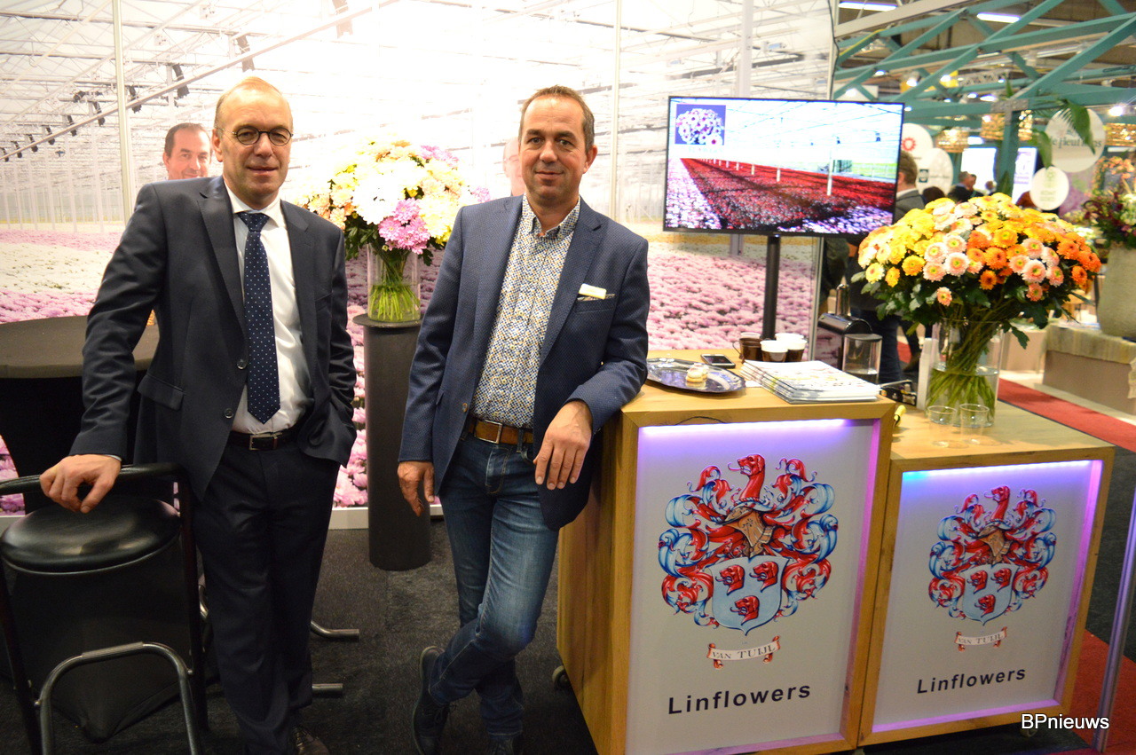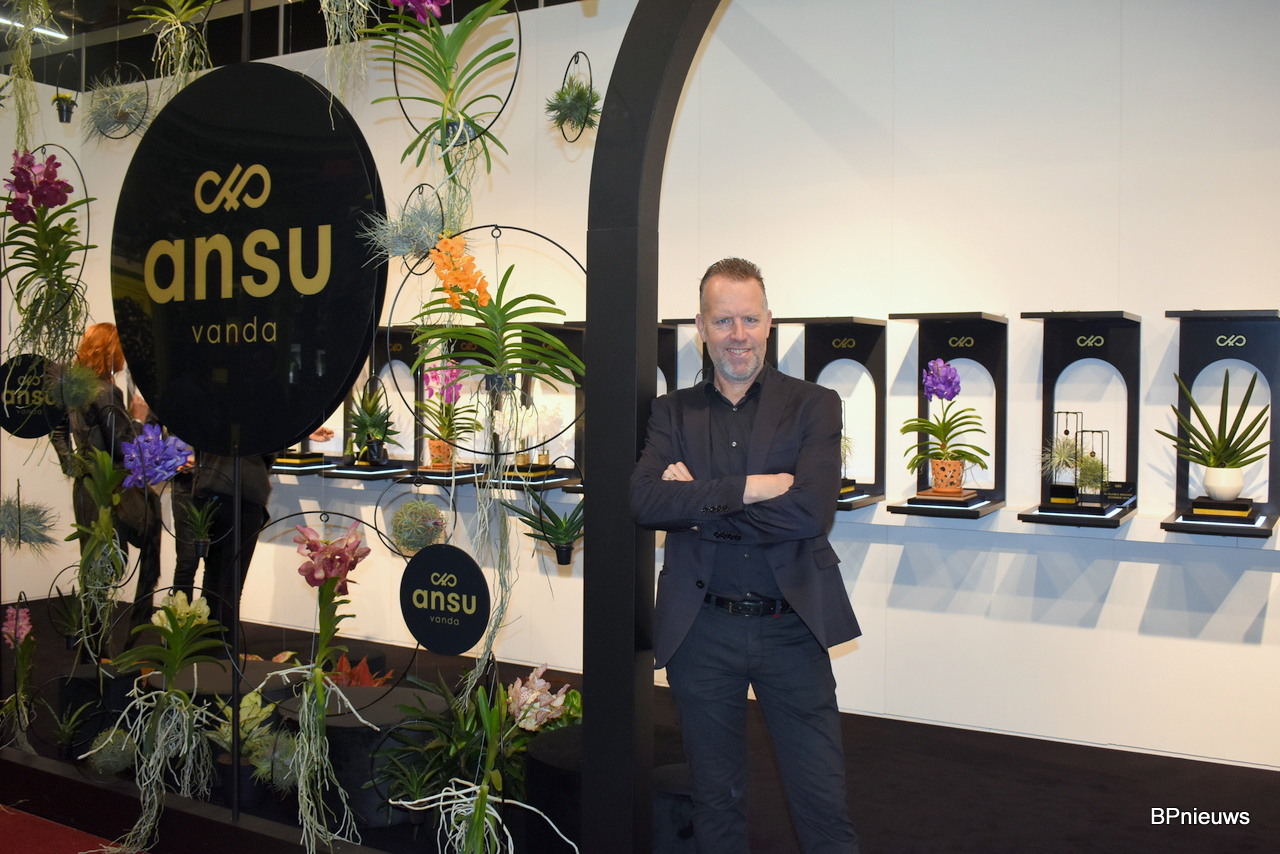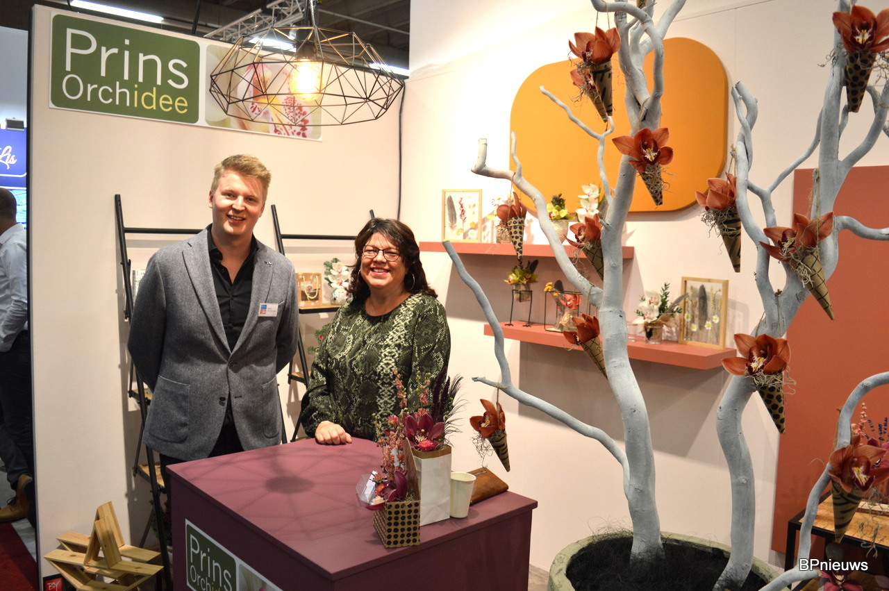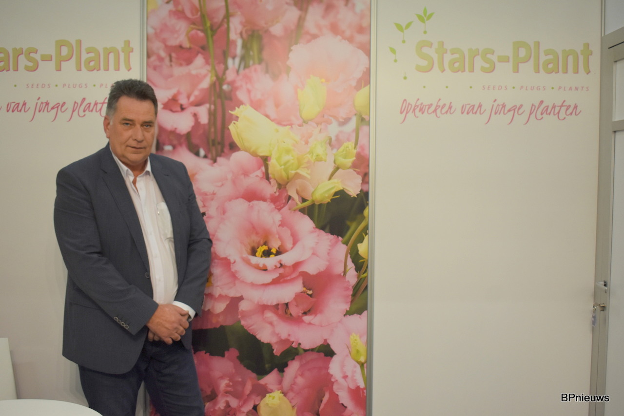 Ook bij de Bruin Plantpot zijn ze bezig met duurzaamheid en dat lieten ze zien door middel van hun nieuwe pulp-tray. Everard de Bruin met de gloednieuwe 8 gaats pulptray. Het is een echte combi tray verteld Everard en door de flexibele klembogen,die in de gaten gevestigd zijn, kun je potten van maat 12 t/m 14 samen in één tray zetten. In het midden staat Gerard van Doeburg met de Lingepot en rechts Ted Verbraeken met hun Terracotta en Olijfgroene potten.