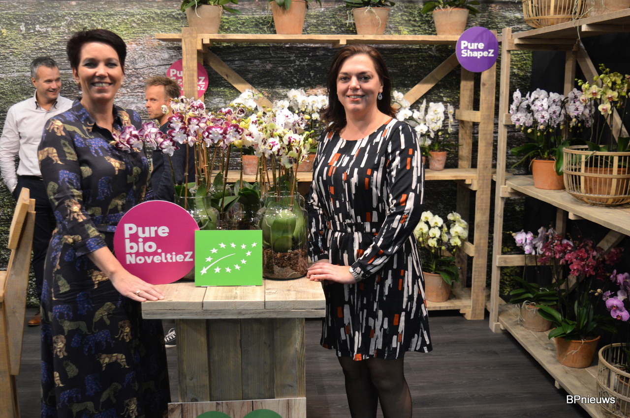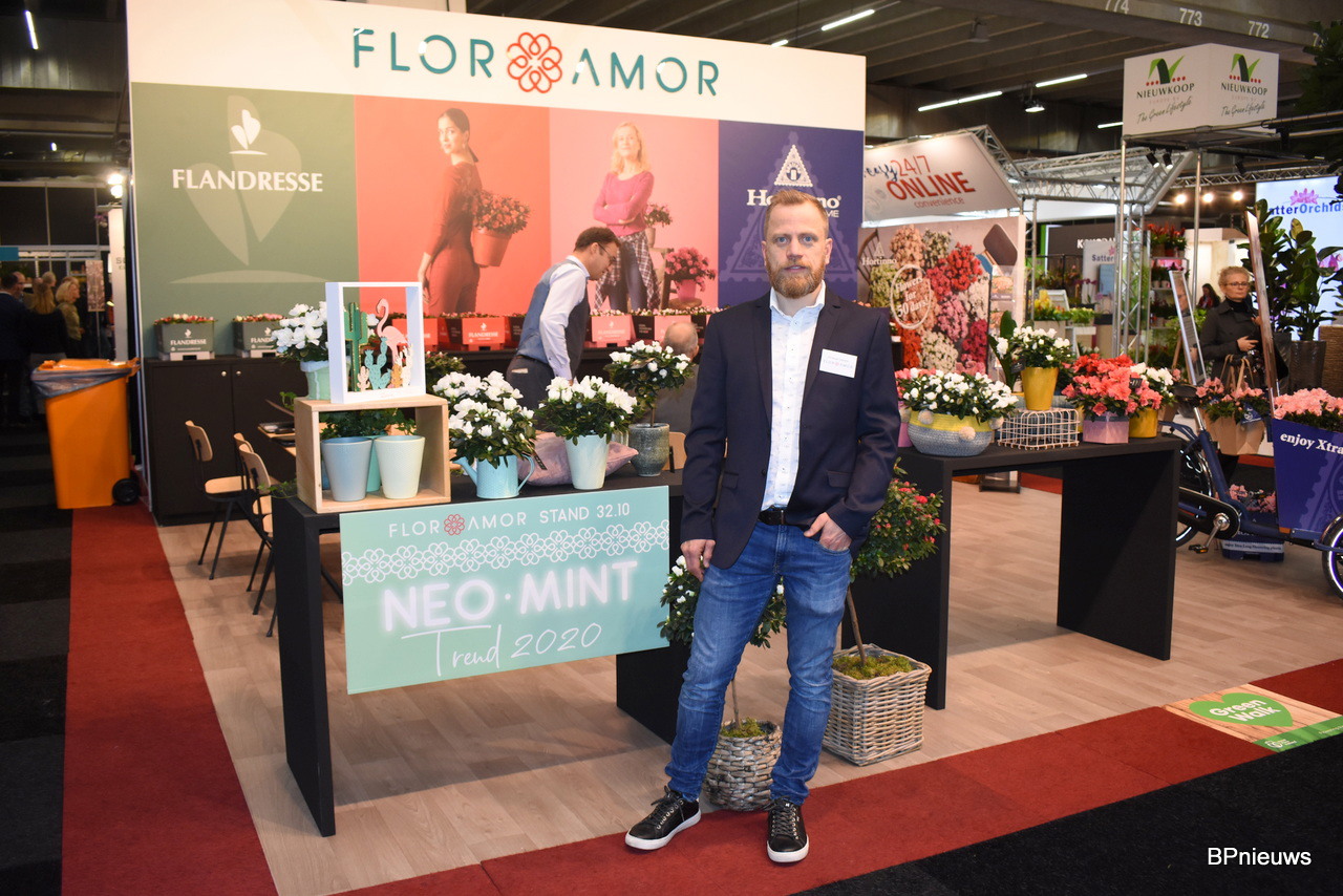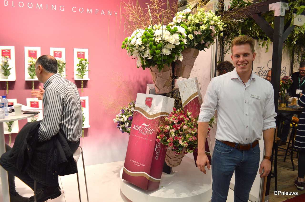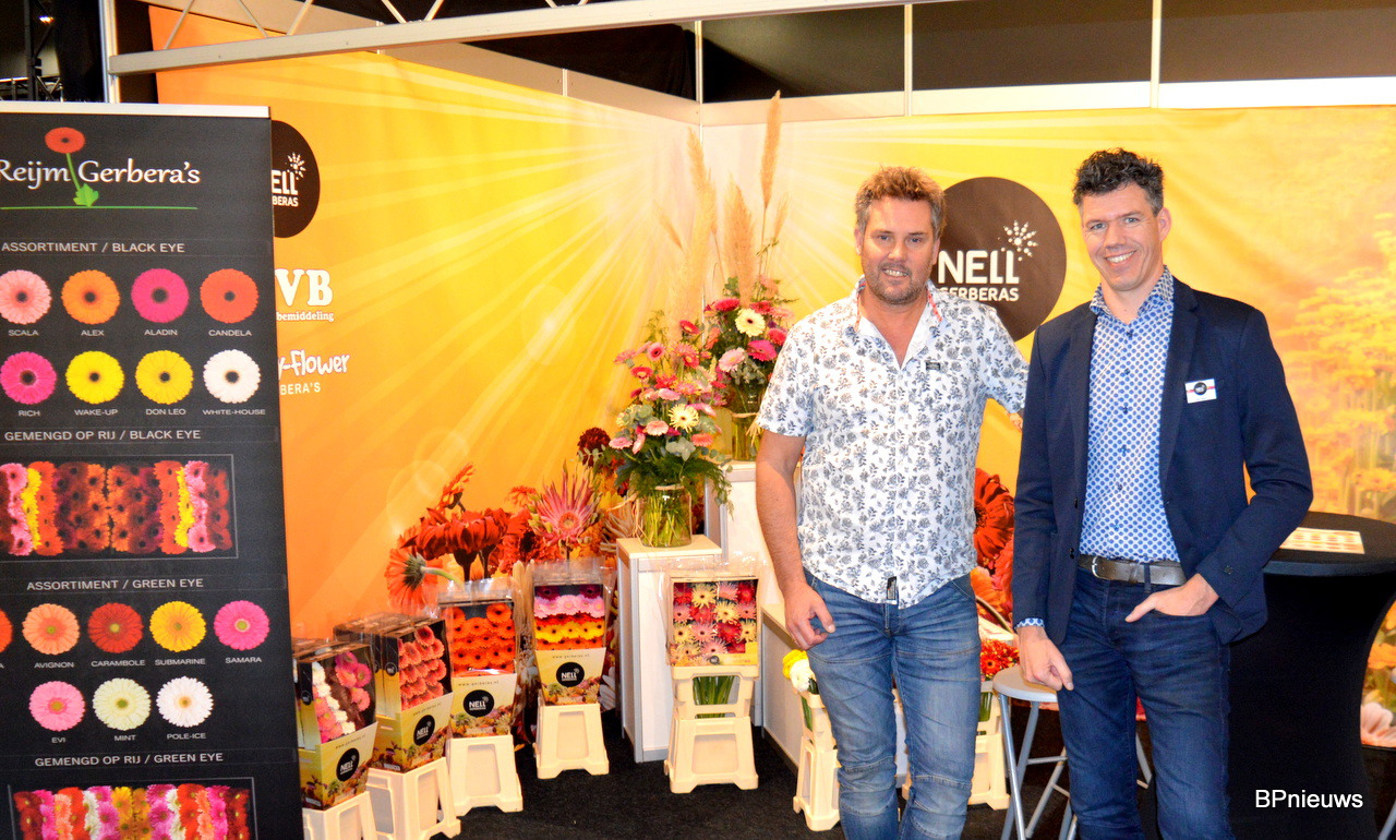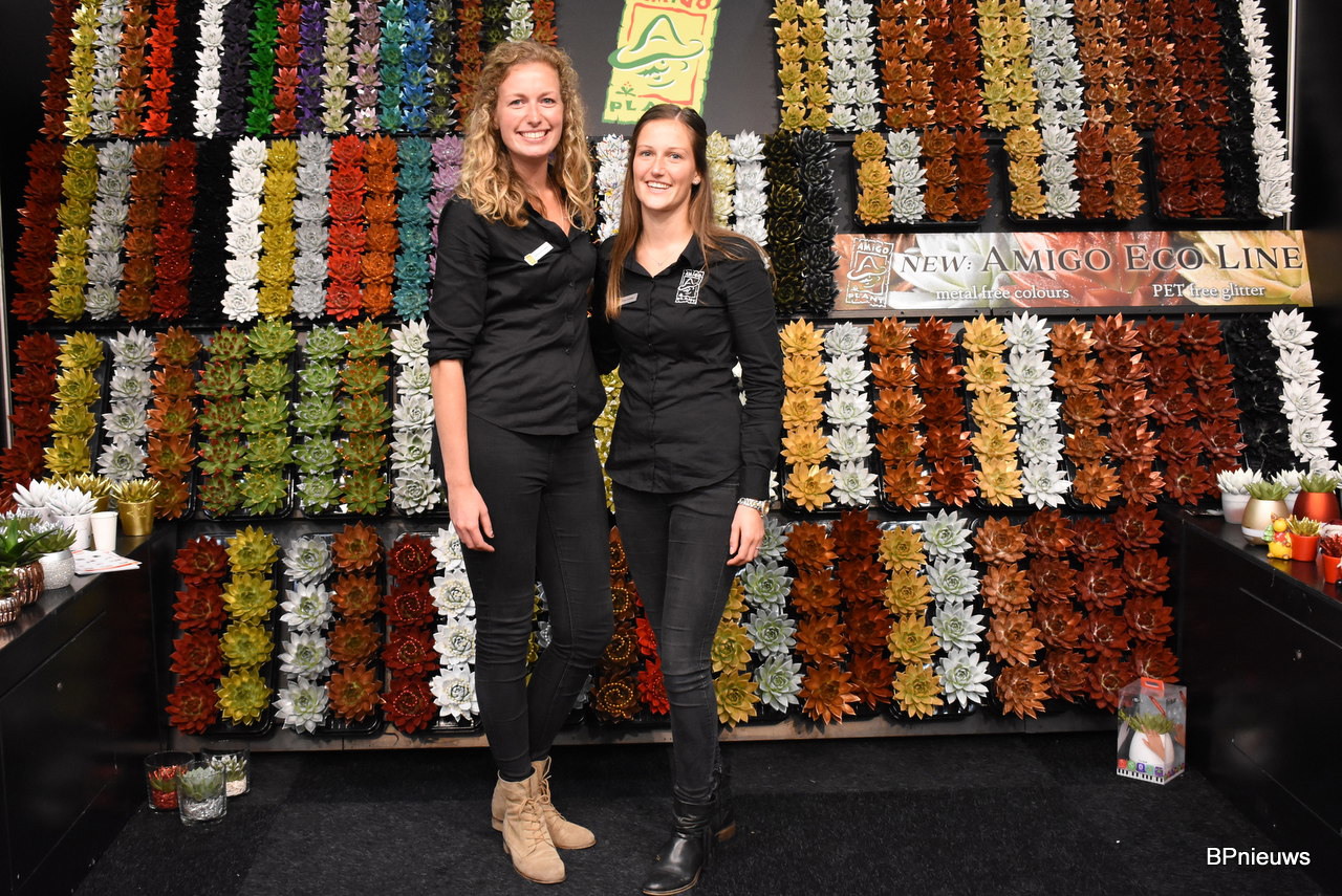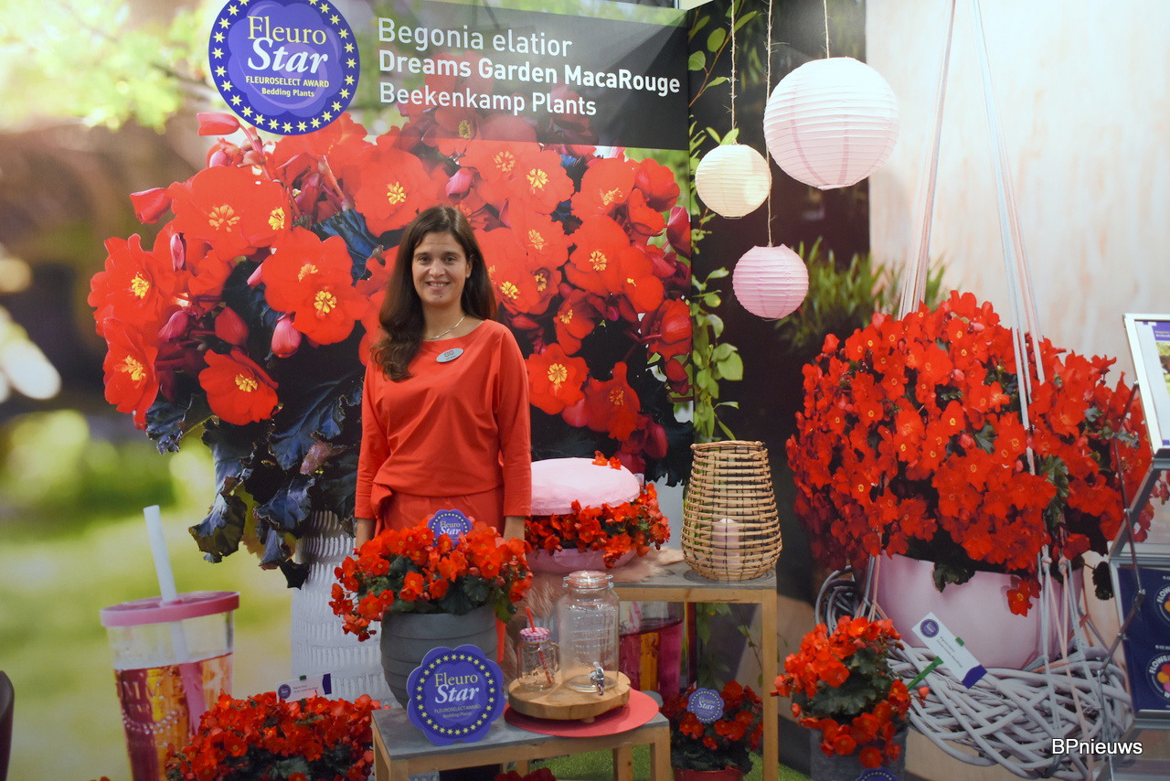Ook bij de Bruin Plantpot zijn ze bezig met duurzaamheid en dat lieten ze zien door middel van hun nieuwe pulp-tray. Everard de Bruin met de gloednieuwe 8 gaats pulptray. Het is een echte combi tray verteld Everard en door de flexibele klembogen,die in de gaten gevestigd zijn, kun je potten van maat 12 t/m 14 samen in één tray zetten. In het midden staat Gerard van Doeburg met de Lingepot en rechts Ted Verbraeken met hun Terracotta en Olijfgroene potten.