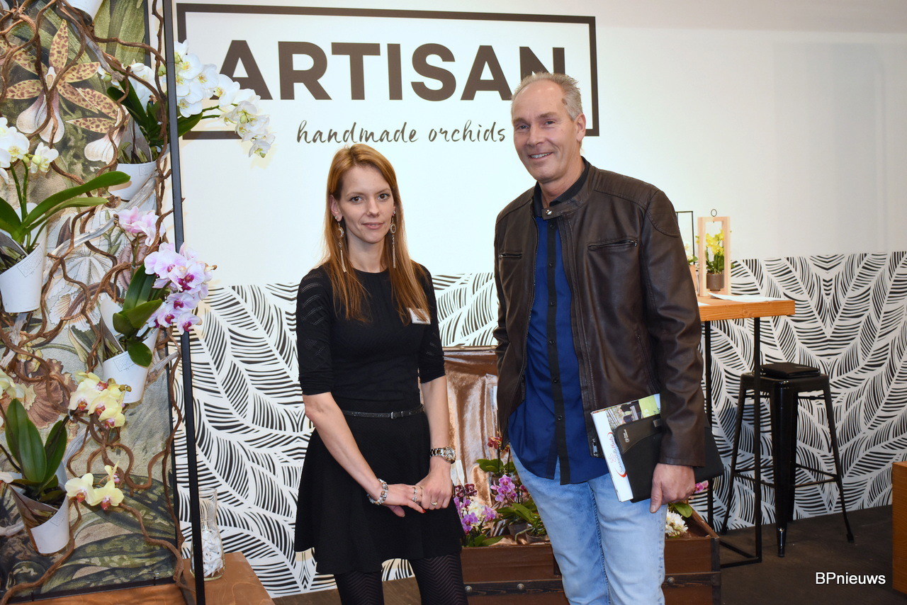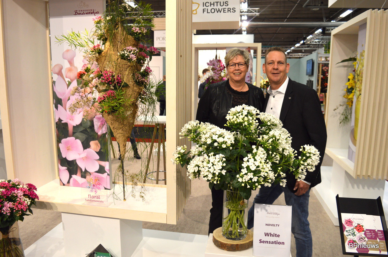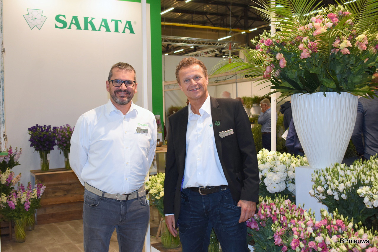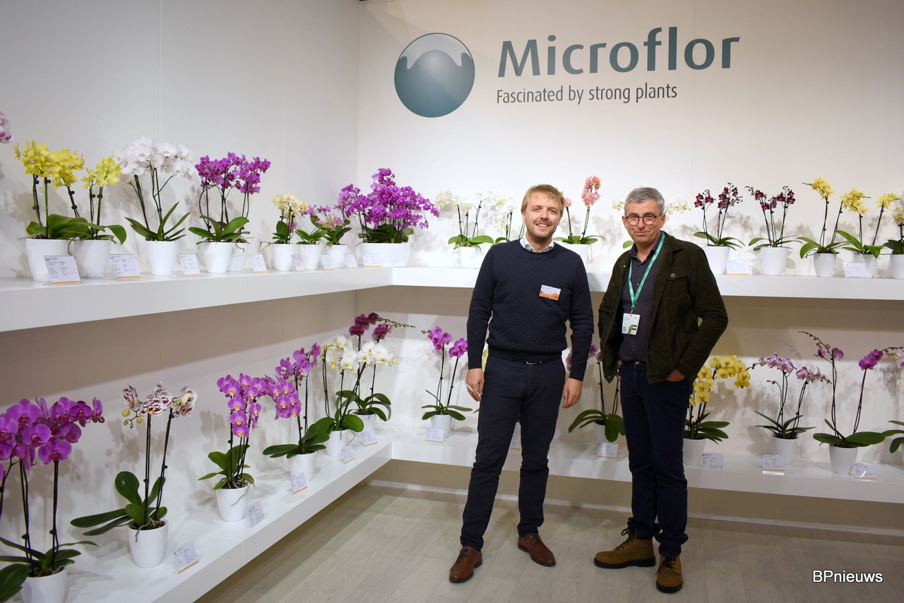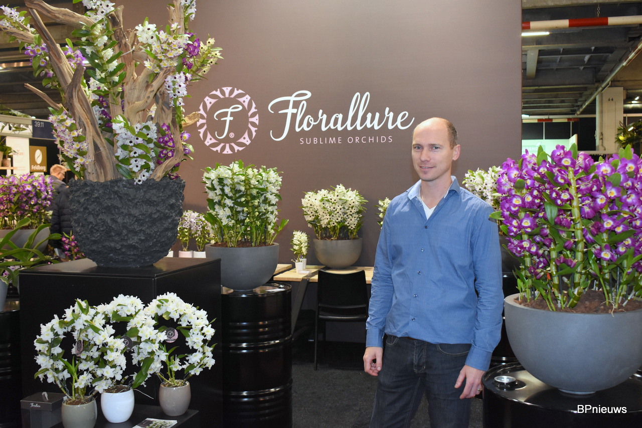 Ook bij de Bruin Plantpot zijn ze bezig met duurzaamheid en dat lieten ze zien door middel van hun nieuwe pulp-tray. Everard de Bruin met de gloednieuwe 8 gaats pulptray. Het is een echte combi tray verteld Everard en door de flexibele klembogen,die in de gaten gevestigd zijn, kun je potten van maat 12 t/m 14 samen in één tray zetten. In het midden staat Gerard van Doeburg met de Lingepot en rechts Ted Verbraeken met hun Terracotta en Olijfgroene potten.