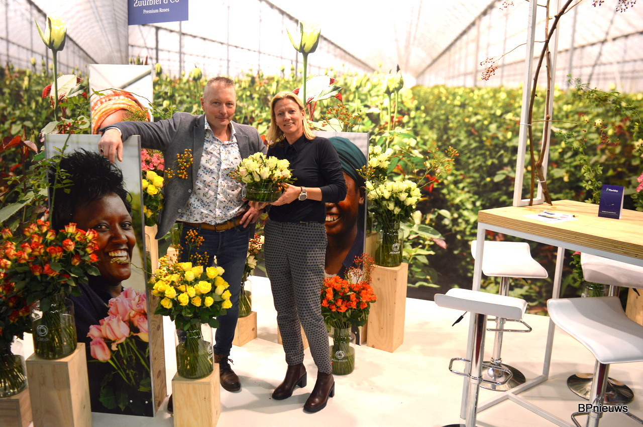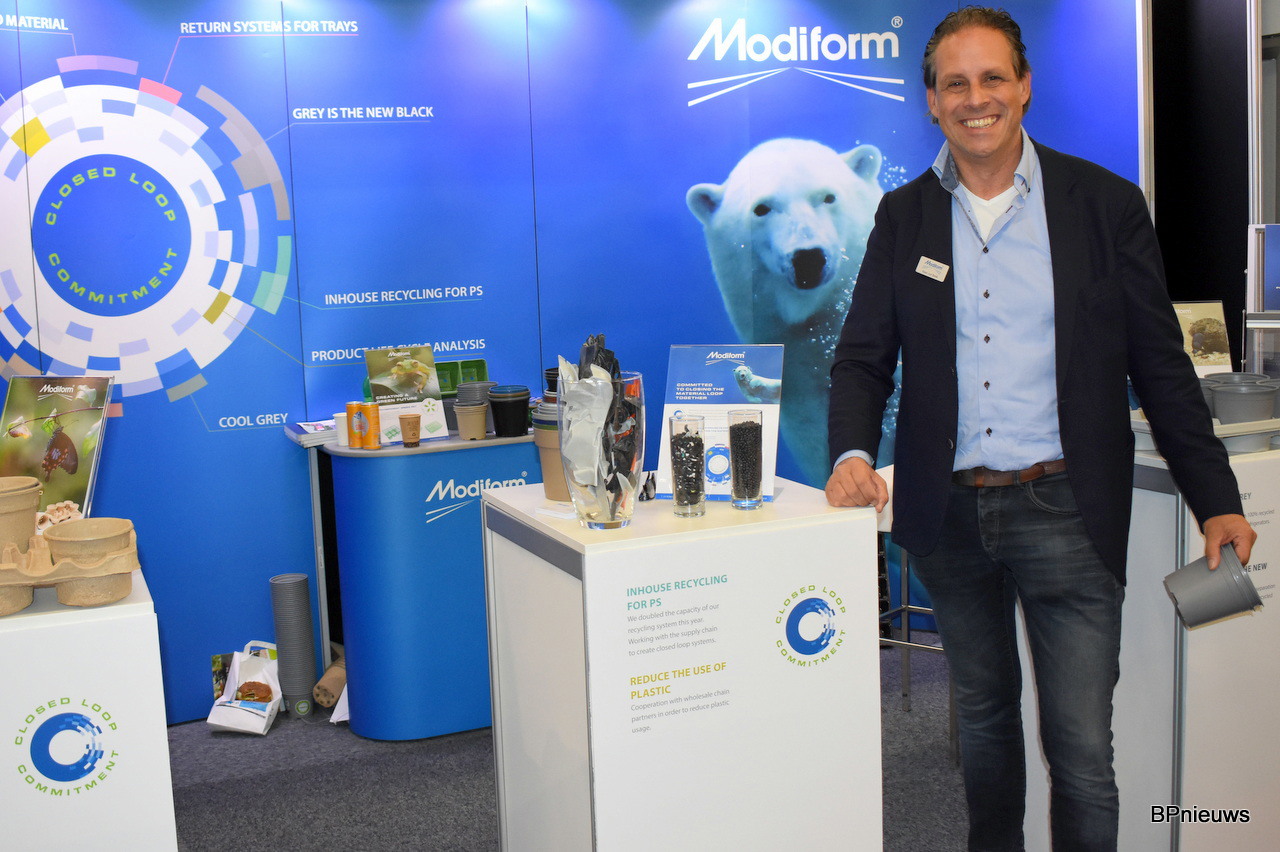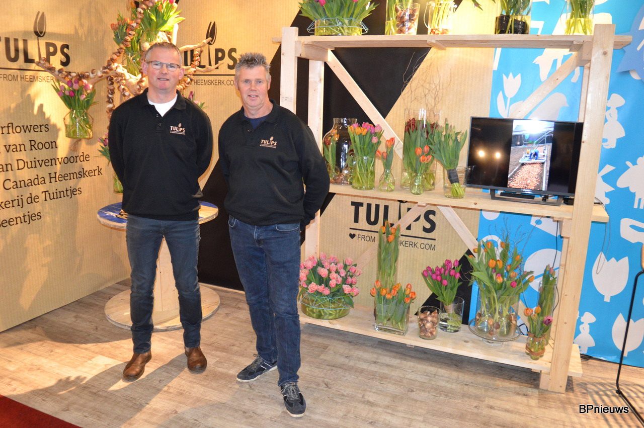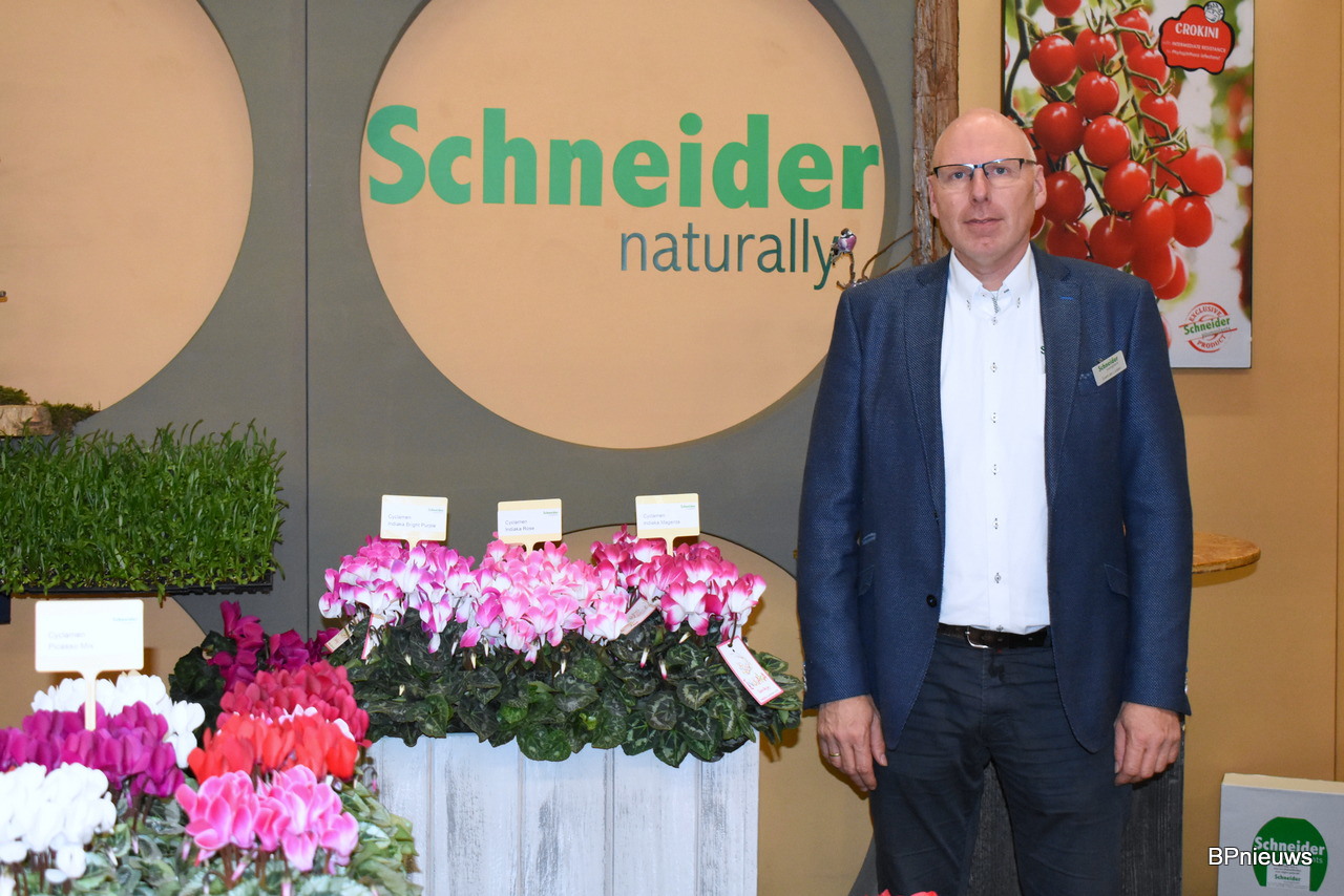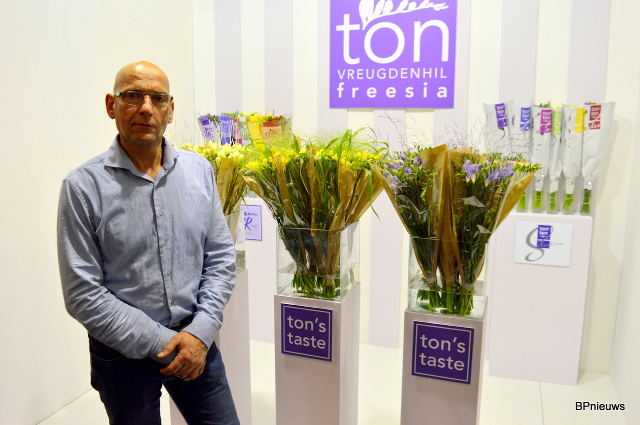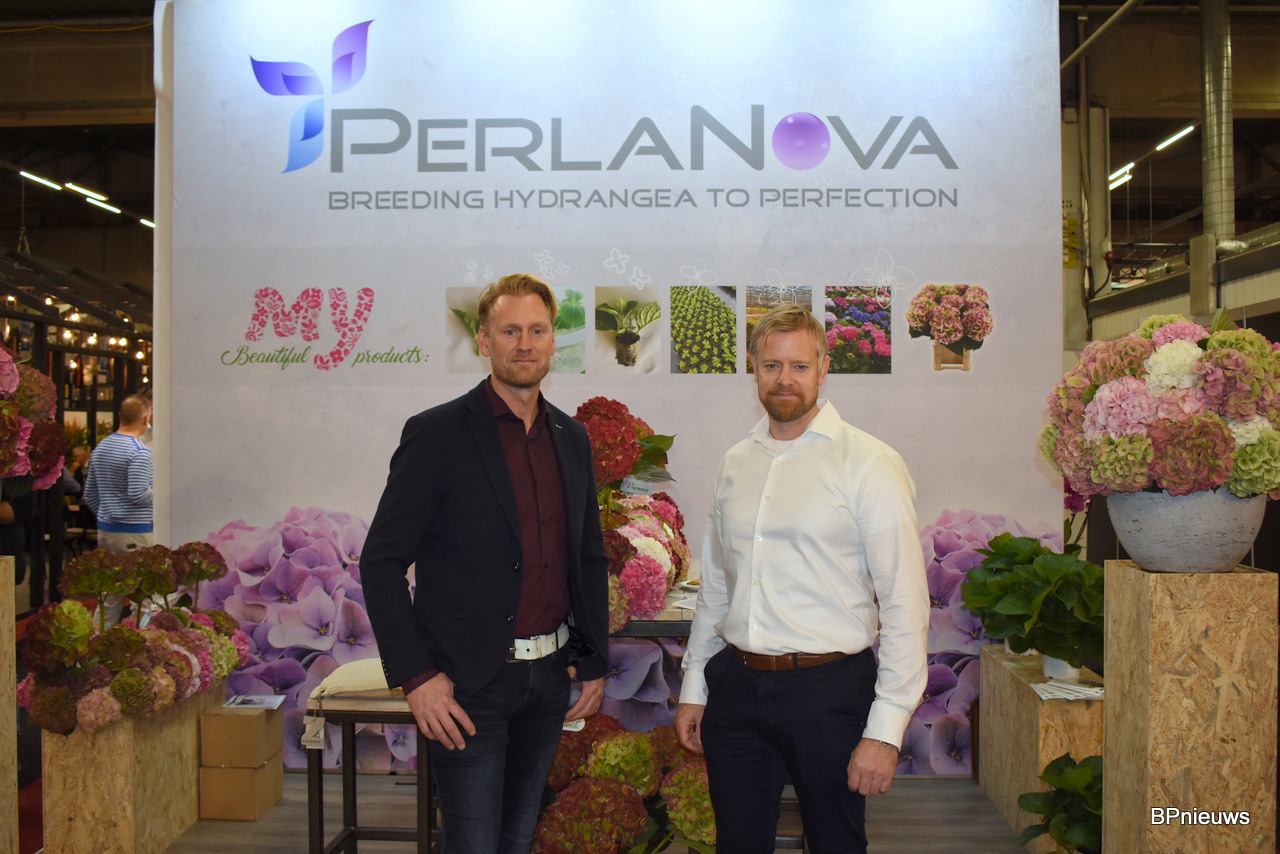 Ook bij de Bruin Plantpot zijn ze bezig met duurzaamheid en dat lieten ze zien door middel van hun nieuwe pulp-tray. Everard de Bruin met de gloednieuwe 8 gaats pulptray. Het is een echte combi tray verteld Everard en door de flexibele klembogen,die in de gaten gevestigd zijn, kun je potten van maat 12 t/m 14 samen in één tray zetten. In het midden staat Gerard van Doeburg met de Lingepot en rechts Ted Verbraeken met hun Terracotta en Olijfgroene potten.