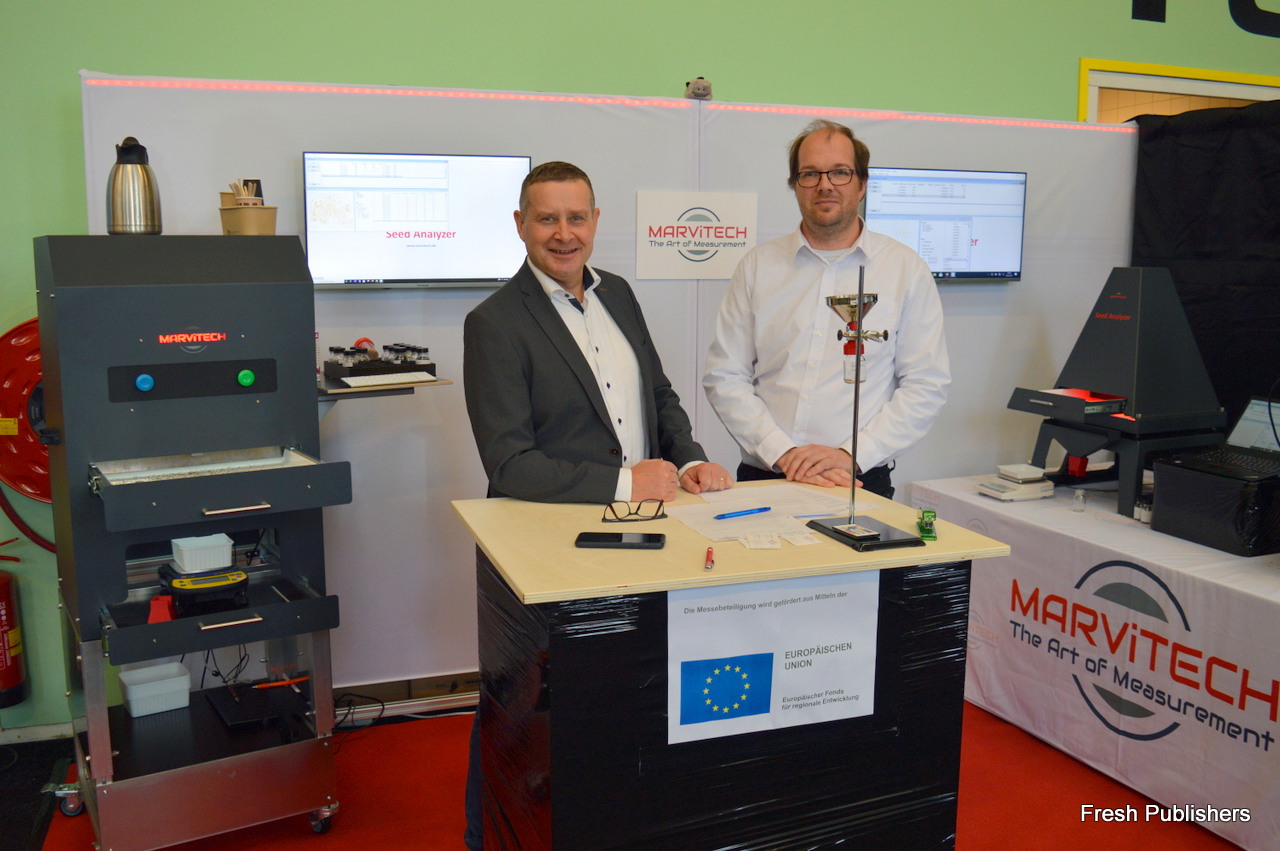 Thomas Stumpe and Tobias Gagzow with Marvitech, among others presenting their seed counting machines with extraordinary precision.