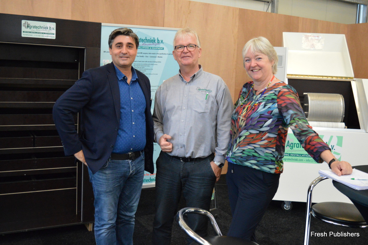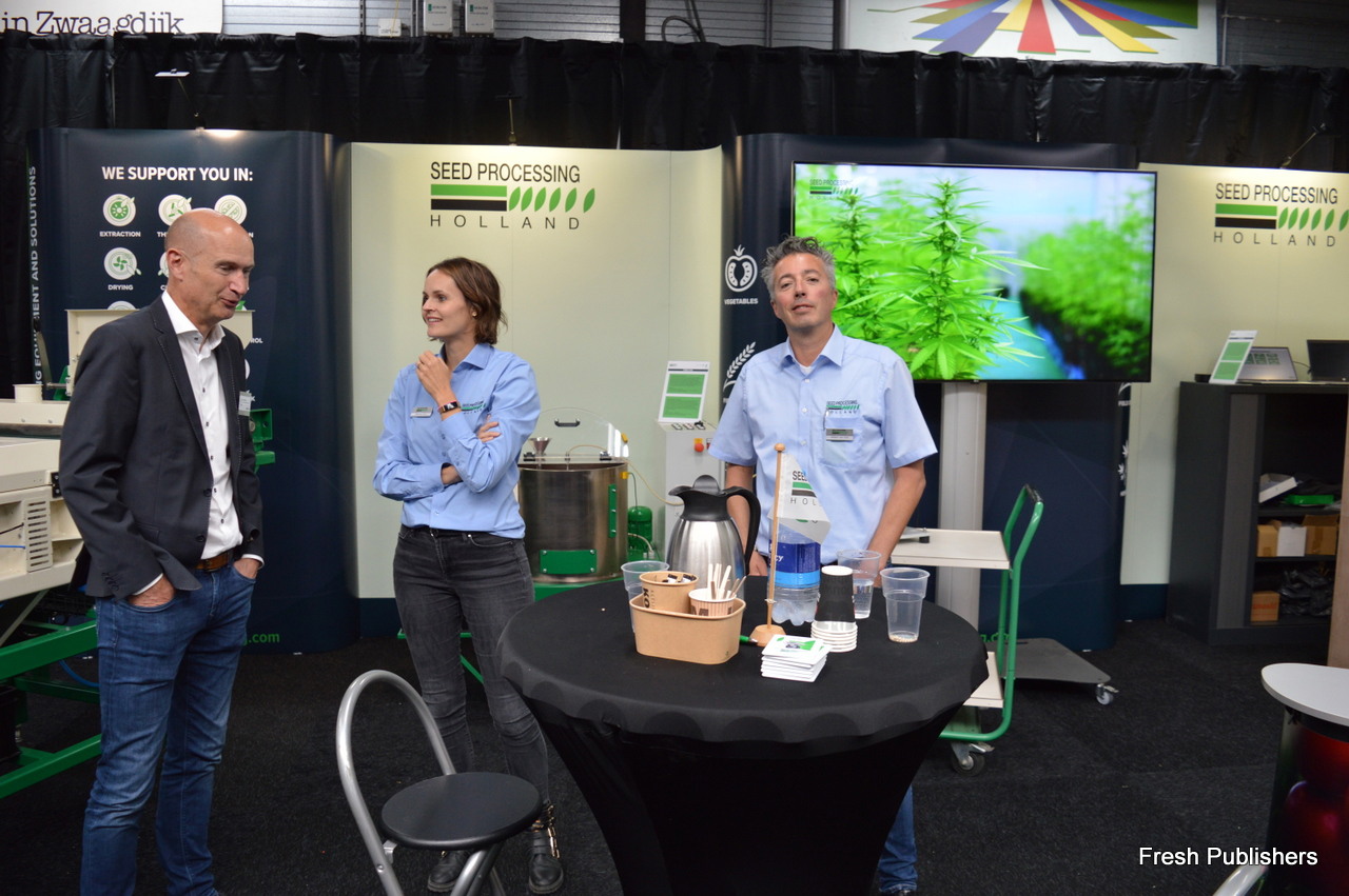 Jan and Silvia Appelman from Agratechniek, together with a visitor to the booth. The company is specialized in drying and seed-processing solutions, recently focussing (among others) on the professional cannabis growing industry.