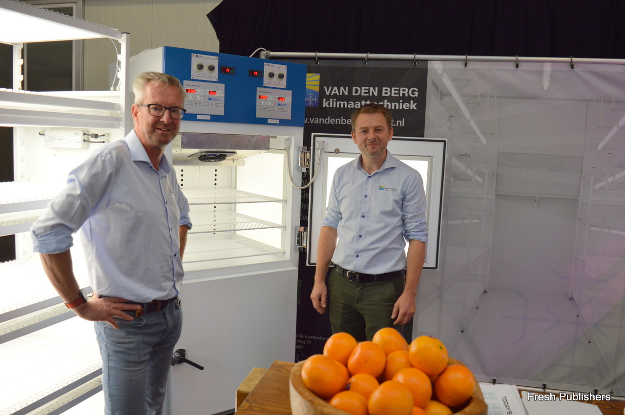 Jacko van Wieringen en Stephen Geenen with Van der Berg Klimaattechnology. The climate chamber you see in the back is cooled by natural coolants (instead of chemical ones, which used to be standard in the past).