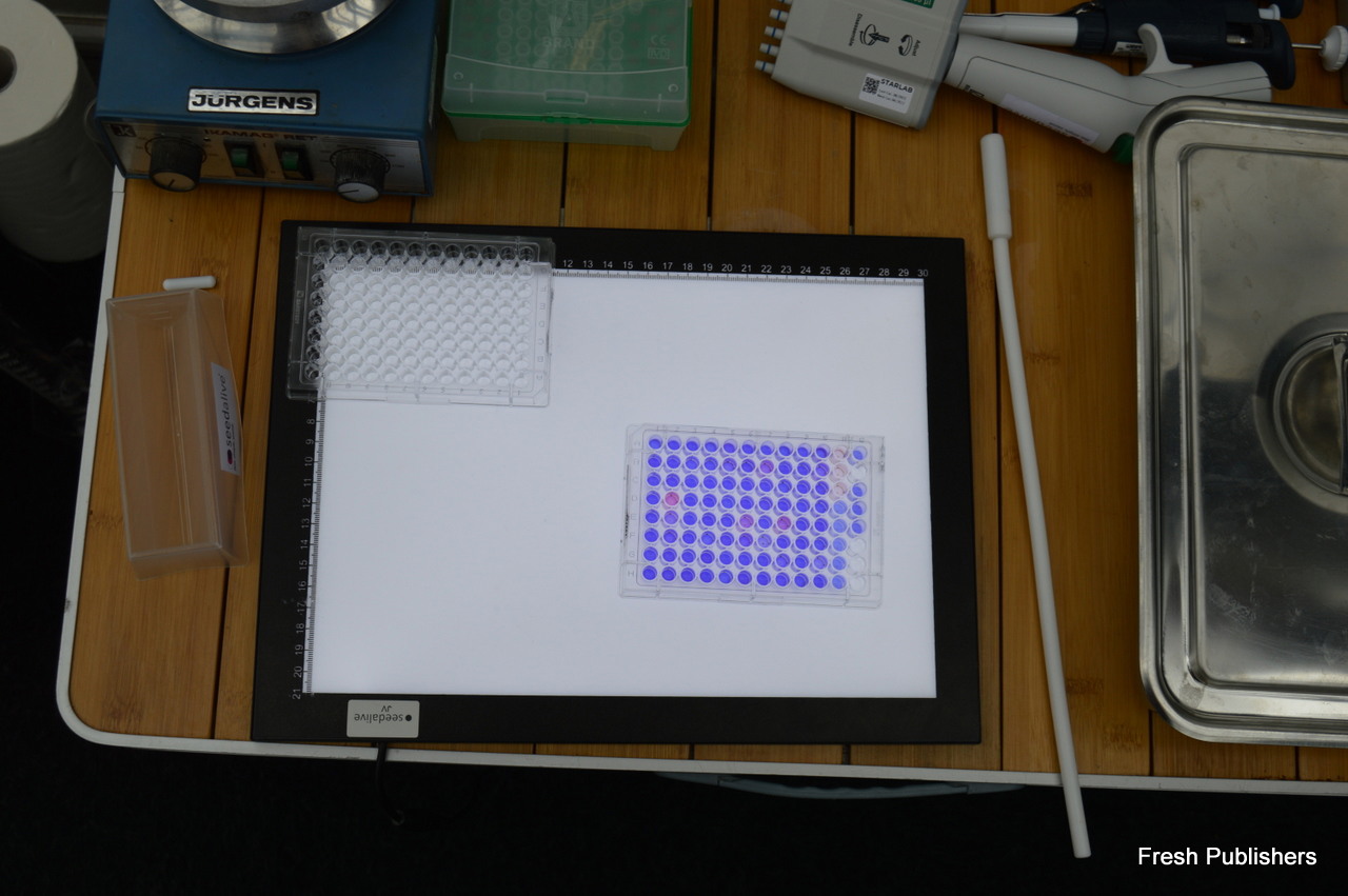 Seeds in a blue solutions are fit. Did the solution turn pink, a seed is probably damanged; did all color disappear, it means a seed is dead.