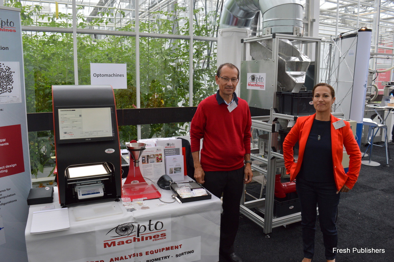 Francois Paradis and Sandra Sobral with Opto Machines. The seed selection machine in the back was invented 30 years ago, but is, with some improvements added, used to this day