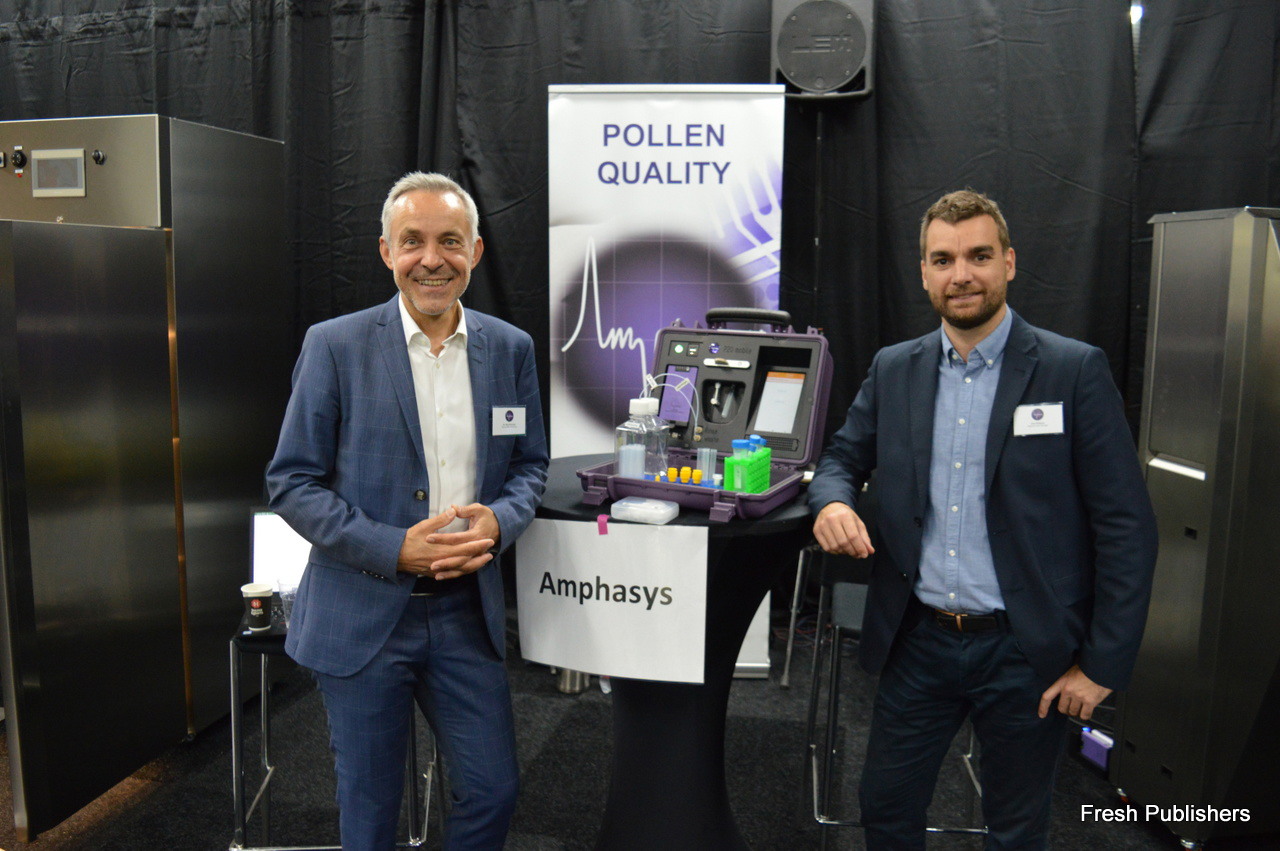 Jörg Schrickel and Lluc Pallares with Amphasys. The company offers a solution to check on the viability of pollen using electrolysis, a solution it now also provides in a portable kit.