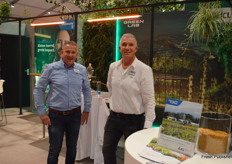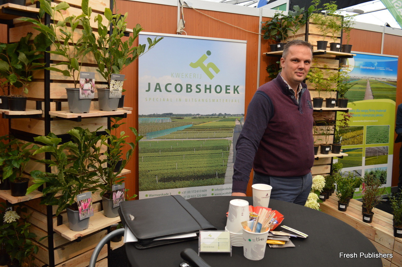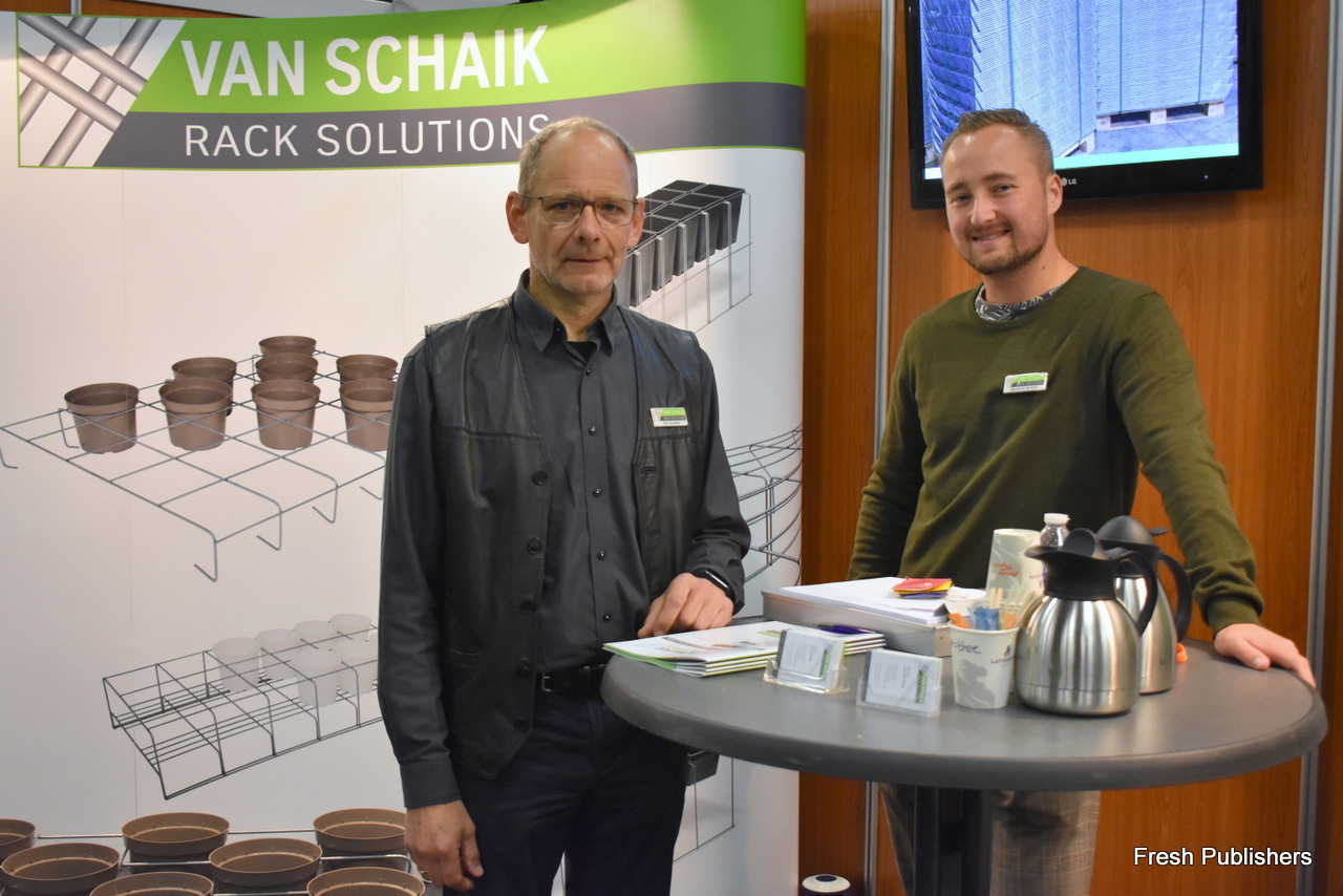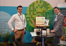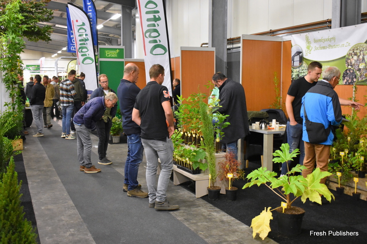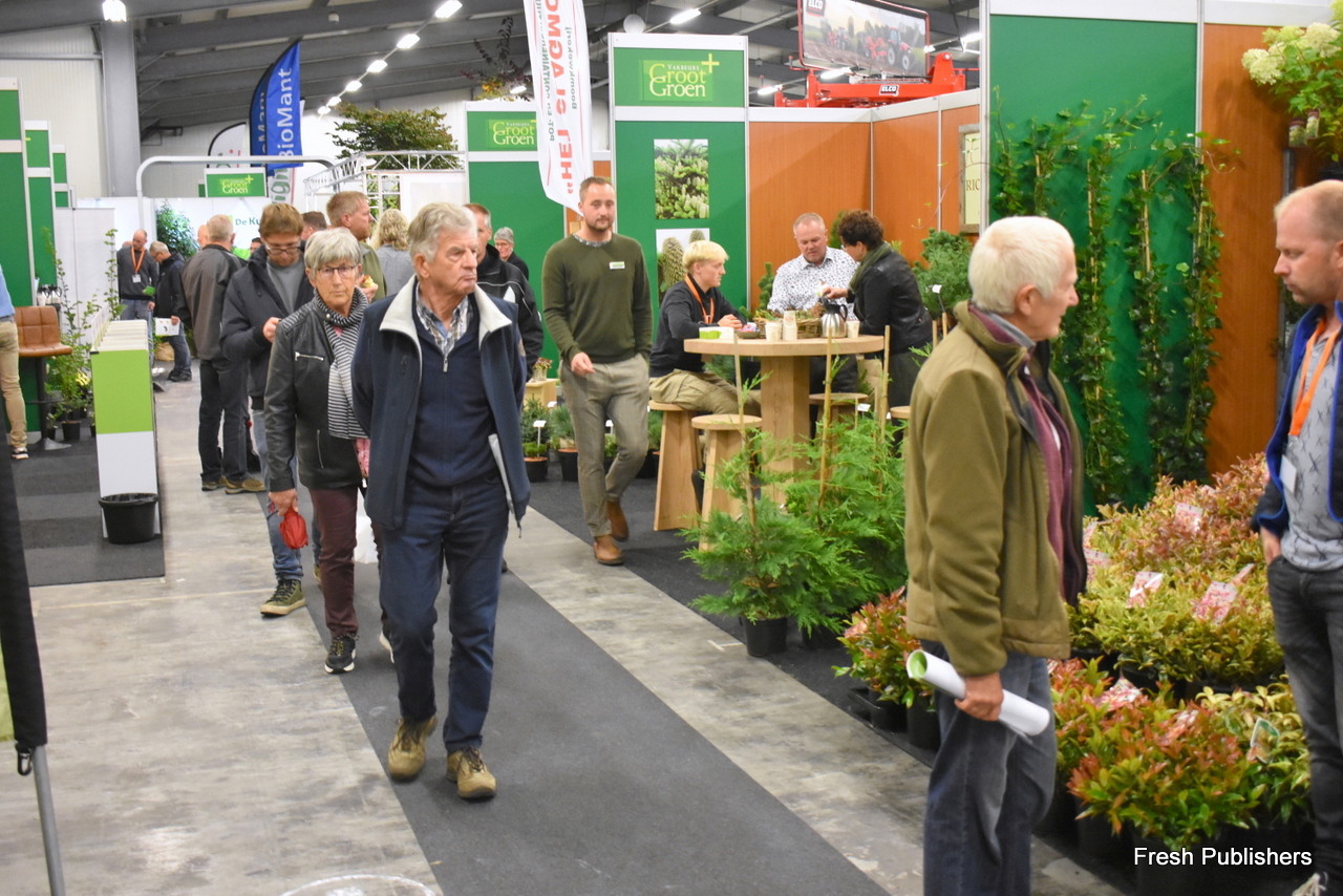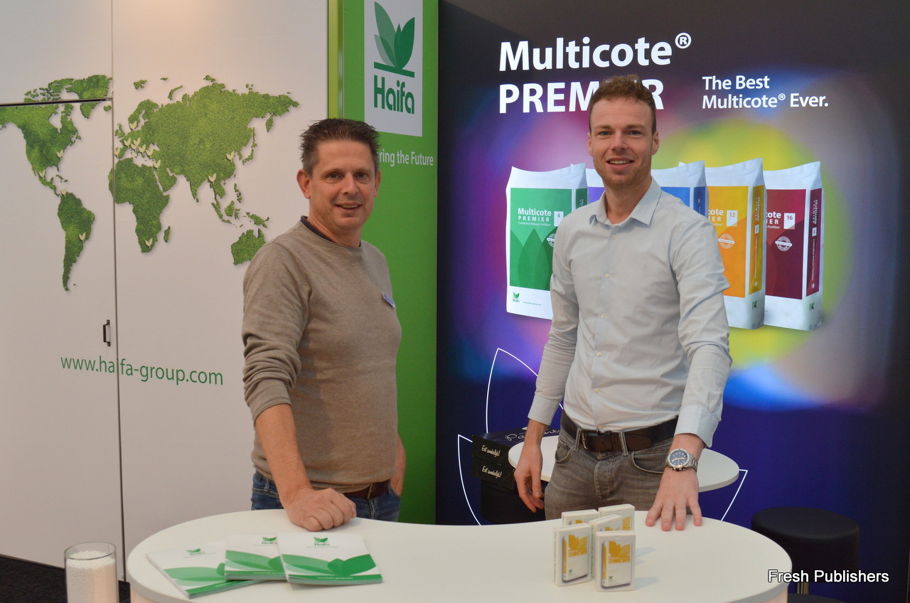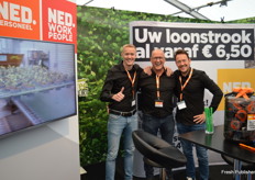 De stand van Broere Beregening wordt bemand door (van links naar recht) John Duijvestijn, Arie-Jan Broere en Ties Baltussen. Broere Beregening heeft meerder oplossingen voor vollegrondteelt, boomkwekerijen, zachtfruittelers en druppelinstallaties.