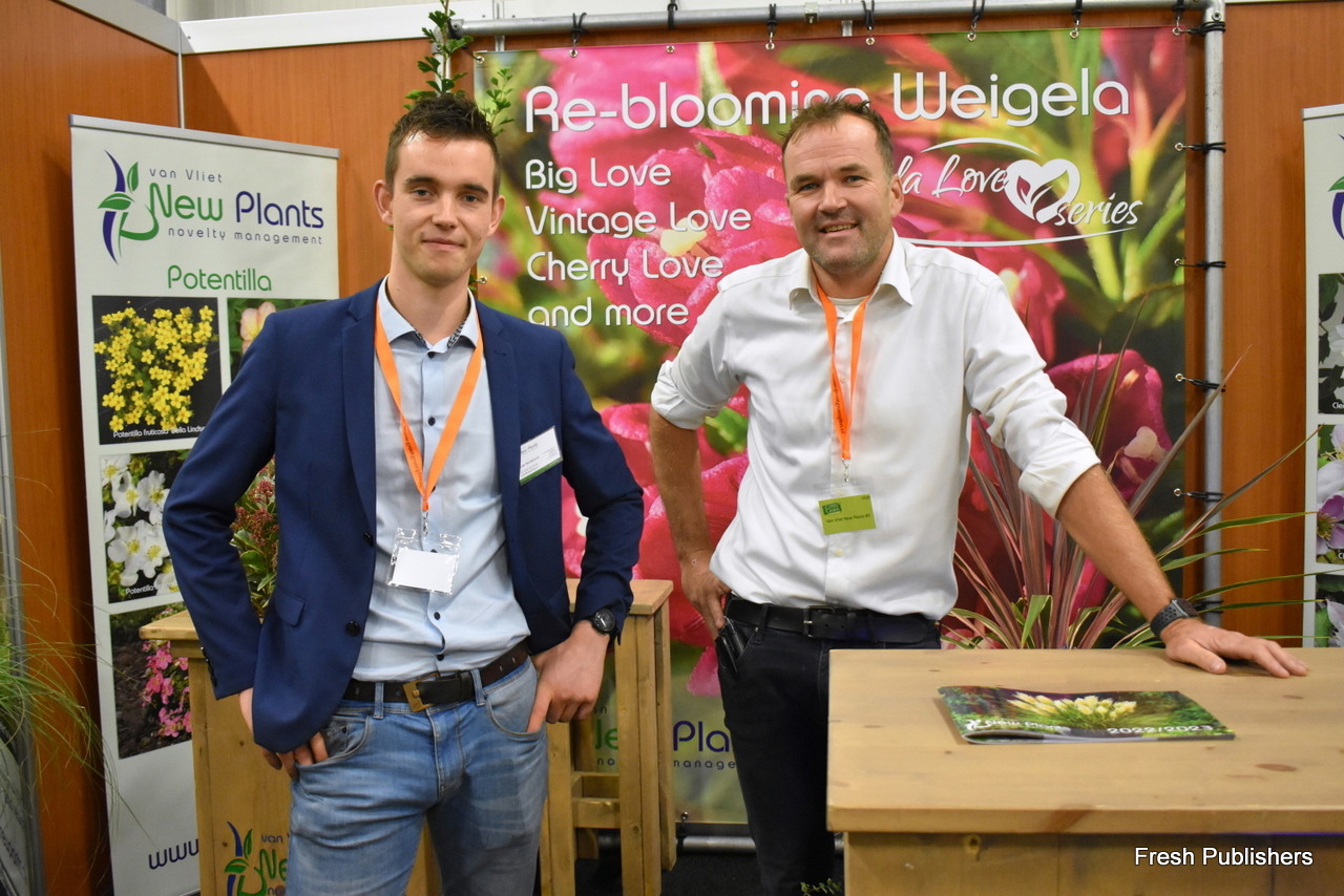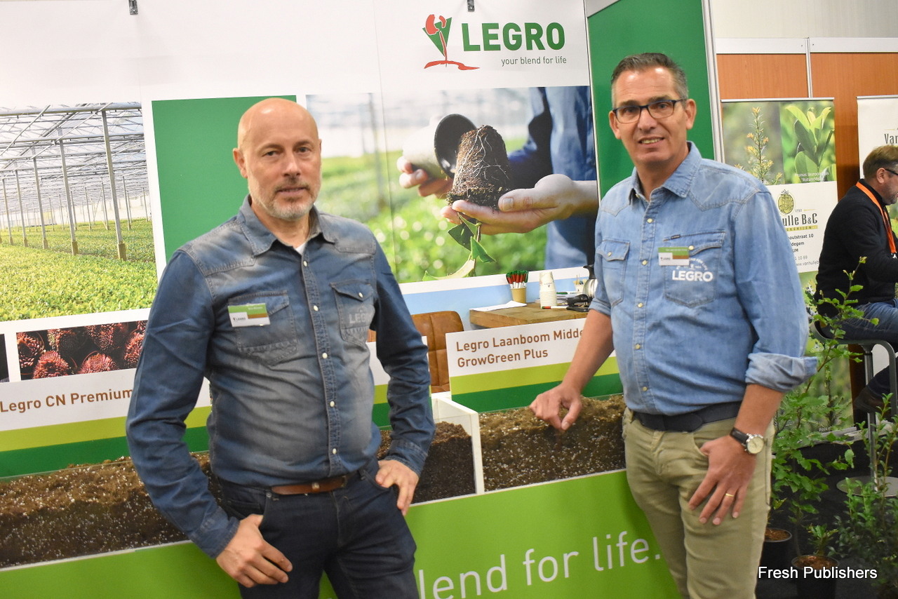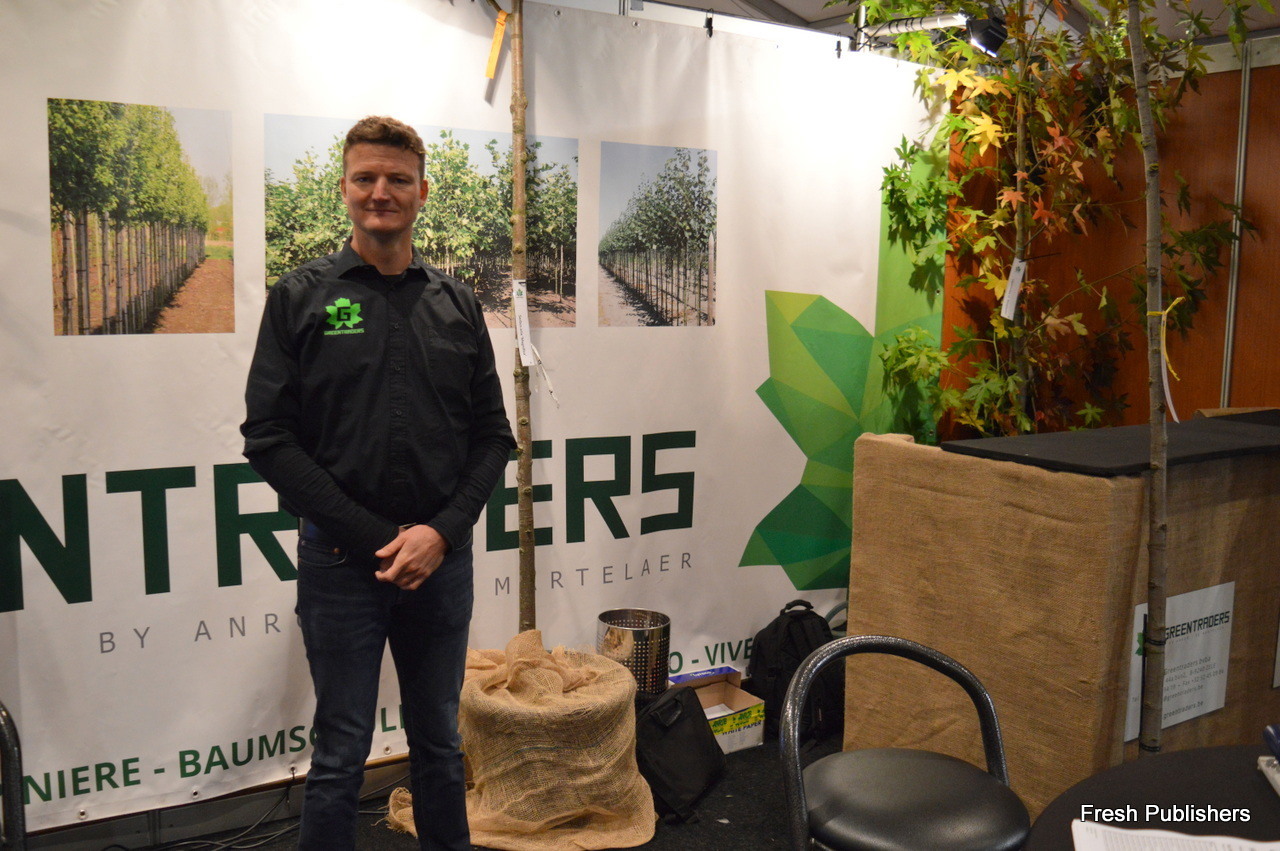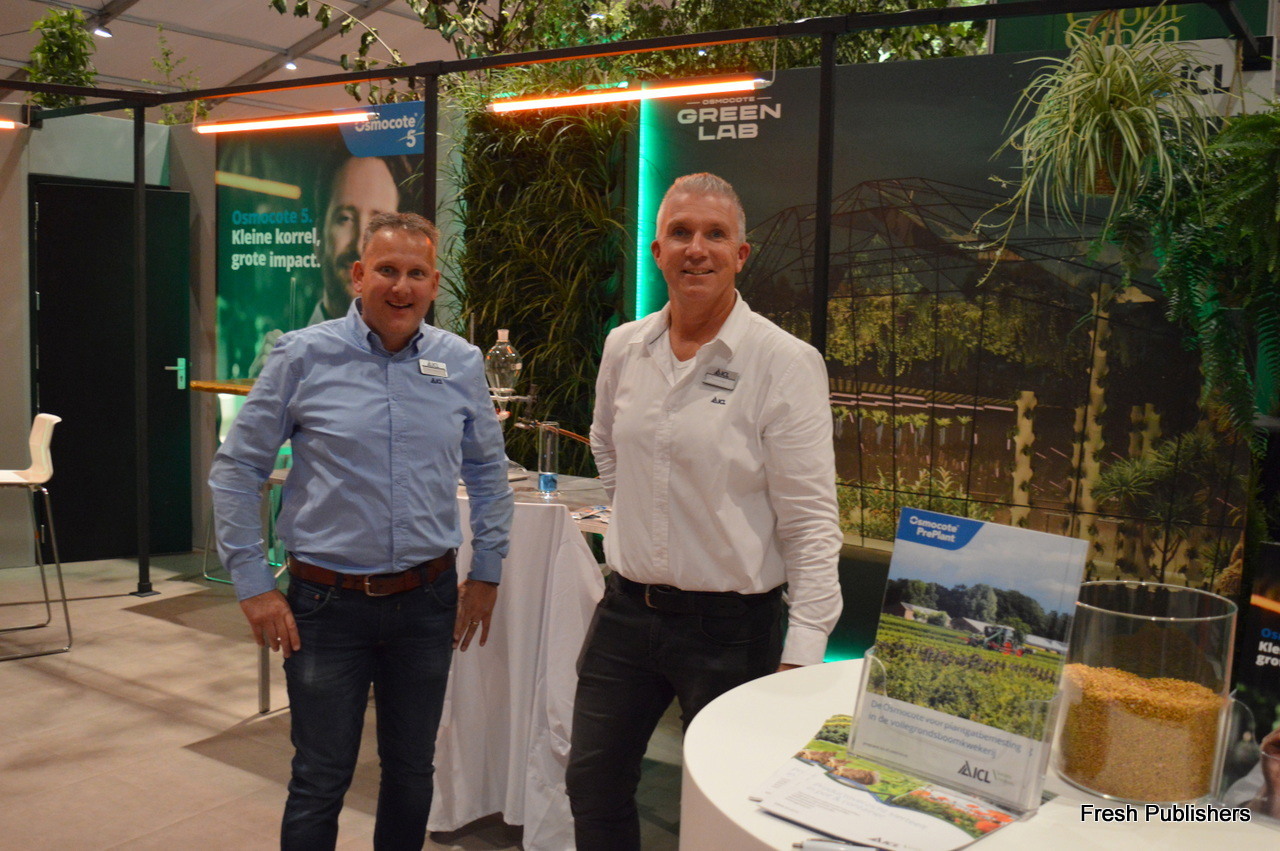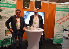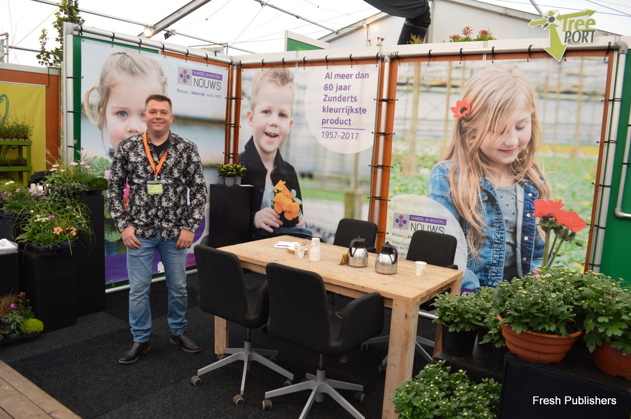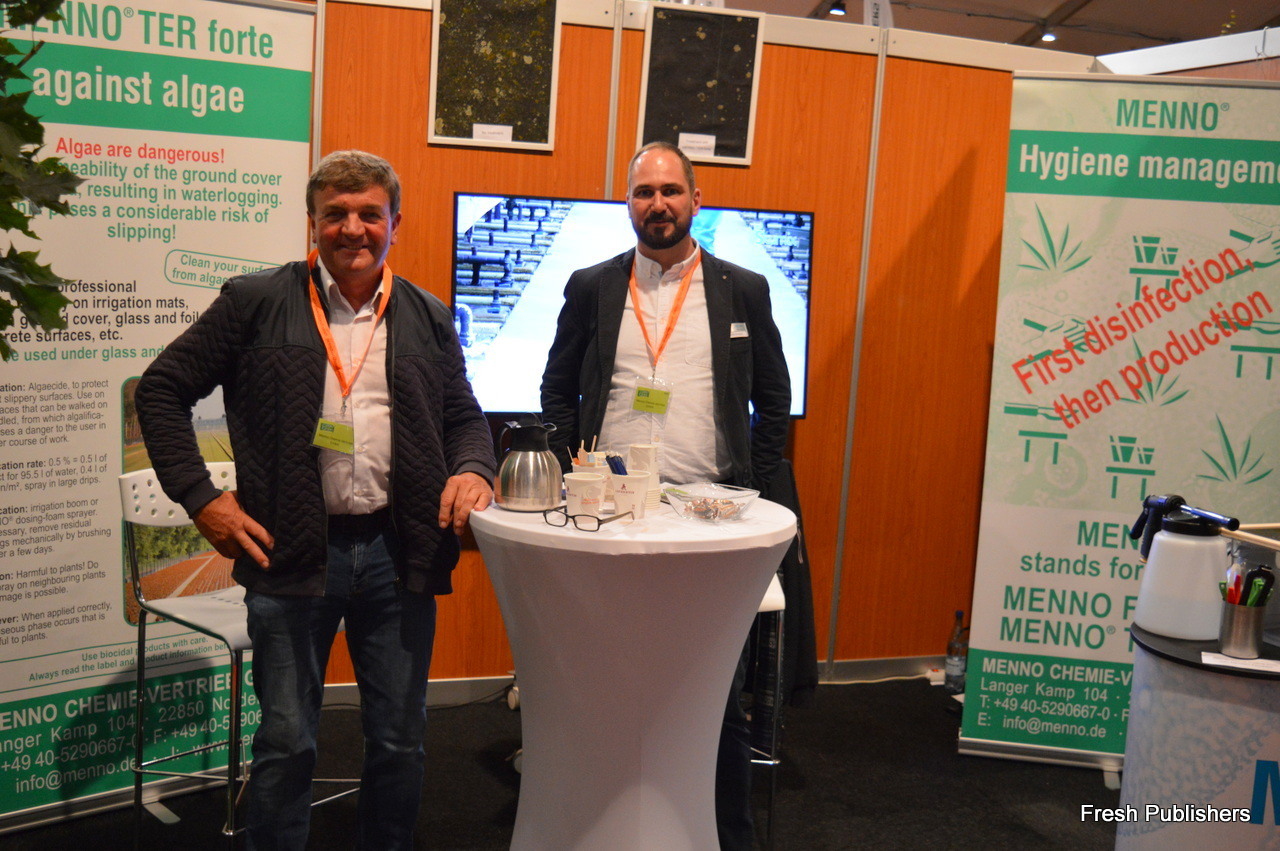 De stand van Broere Beregening wordt bemand door (van links naar recht) John Duijvestijn, Arie-Jan Broere en Ties Baltussen. Broere Beregening heeft meerder oplossingen voor vollegrondteelt, boomkwekerijen, zachtfruittelers en druppelinstallaties.