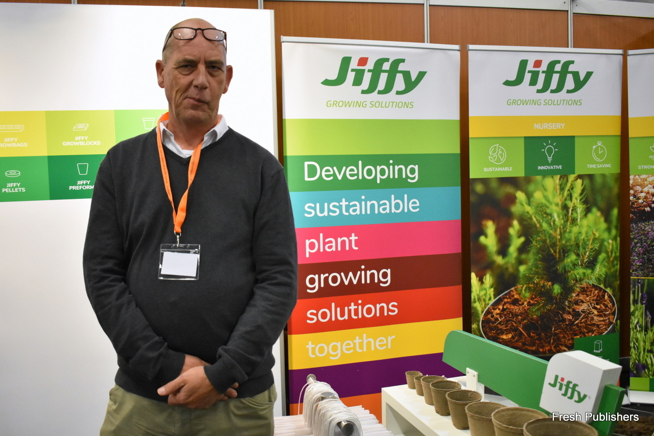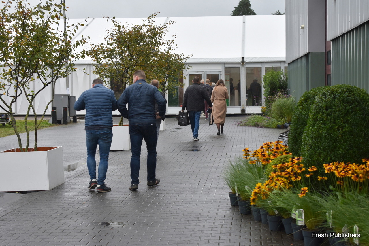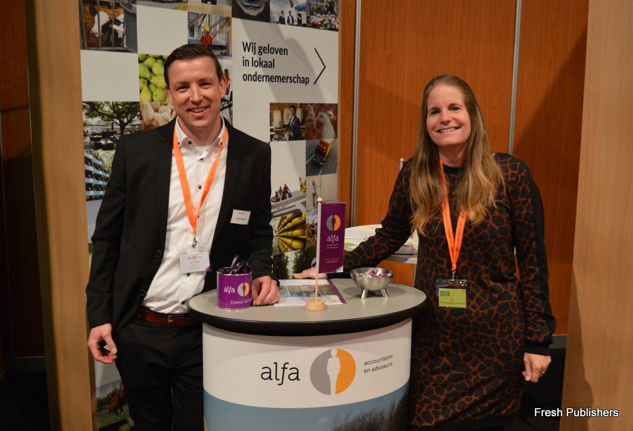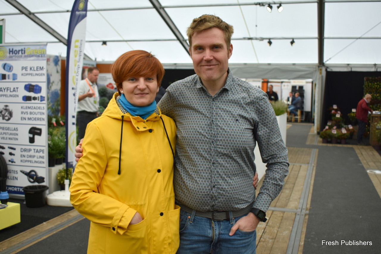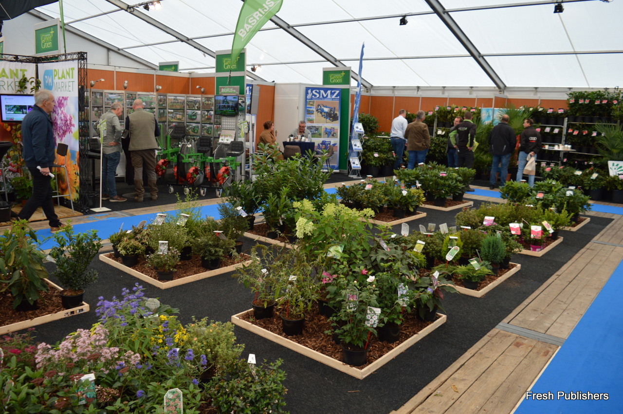 De stand van Broere Beregening wordt bemand door (van links naar recht) John Duijvestijn, Arie-Jan Broere en Ties Baltussen. Broere Beregening heeft meerder oplossingen voor vollegrondteelt, boomkwekerijen, zachtfruittelers en druppelinstallaties.