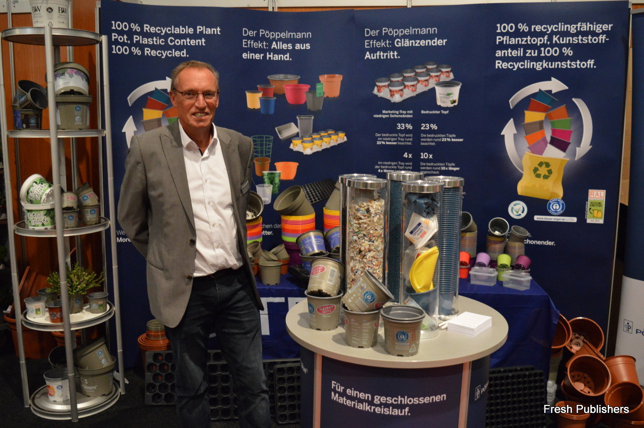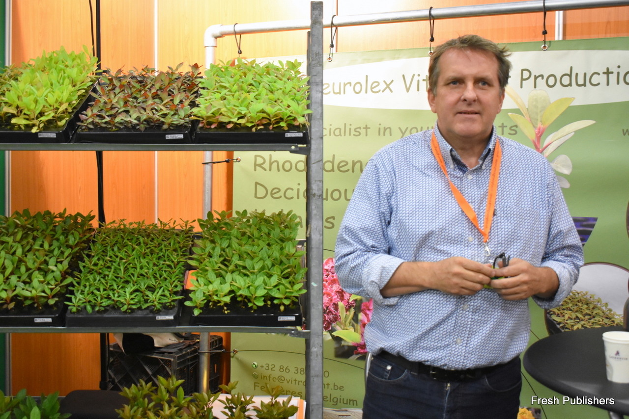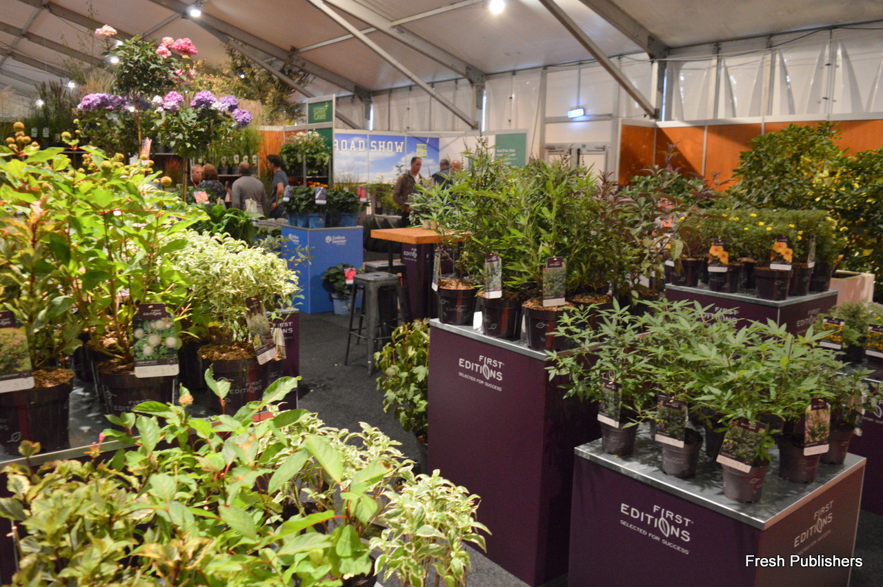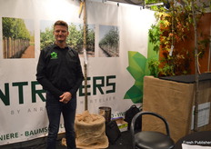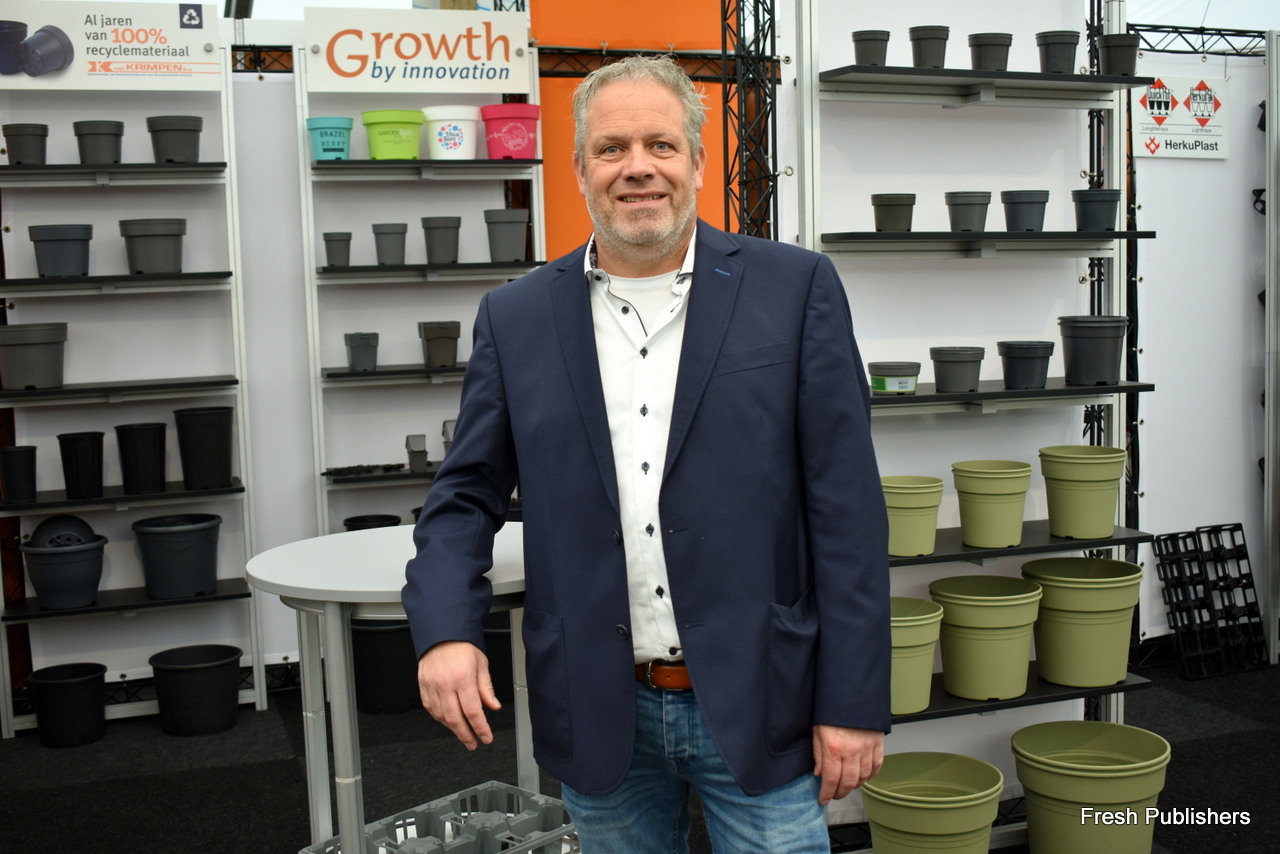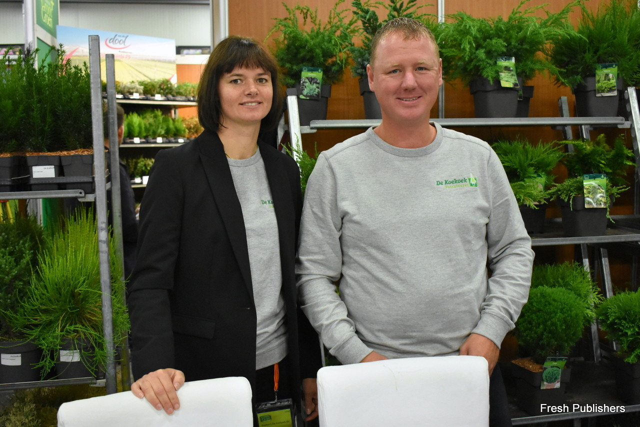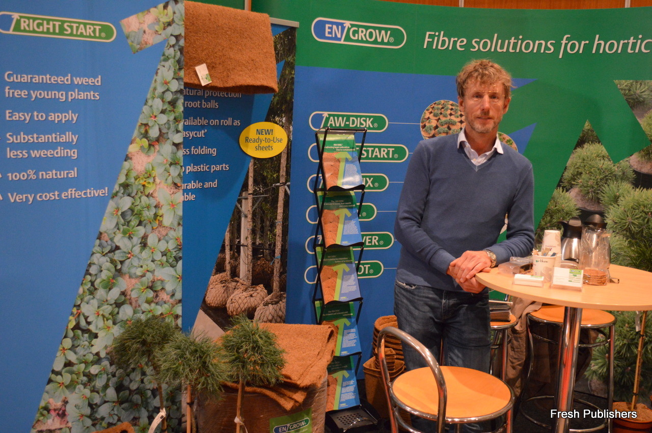 De stand van Broere Beregening wordt bemand door (van links naar recht) John Duijvestijn, Arie-Jan Broere en Ties Baltussen. Broere Beregening heeft meerder oplossingen voor vollegrondteelt, boomkwekerijen, zachtfruittelers en druppelinstallaties.