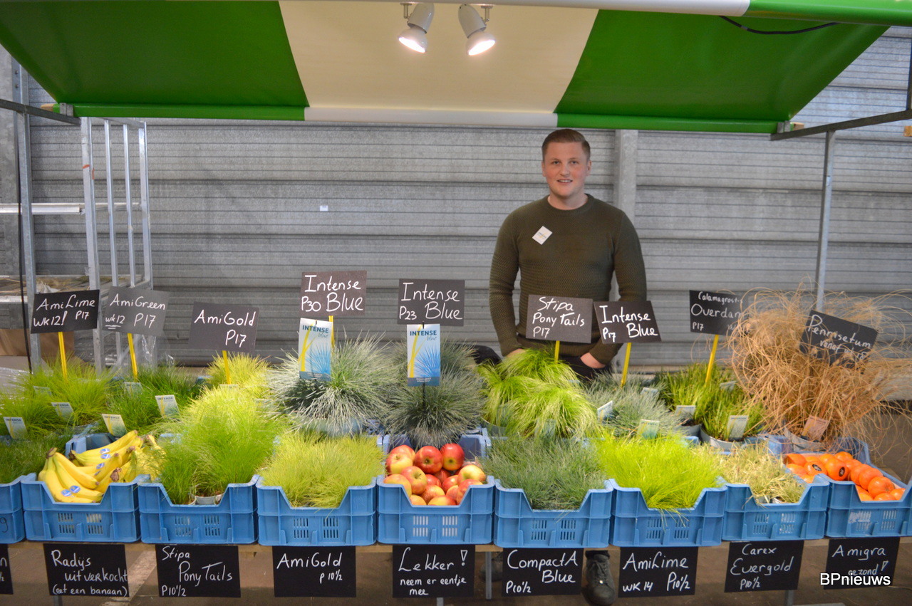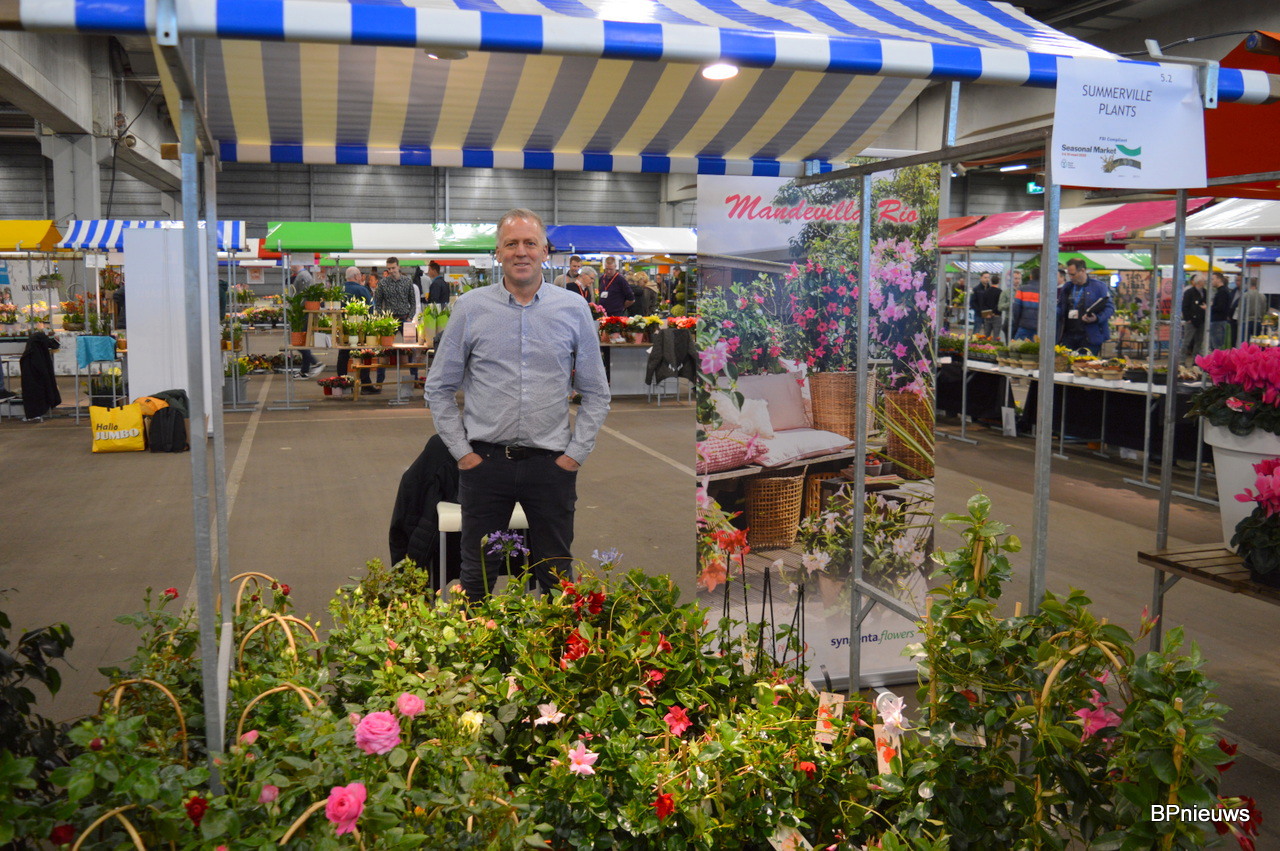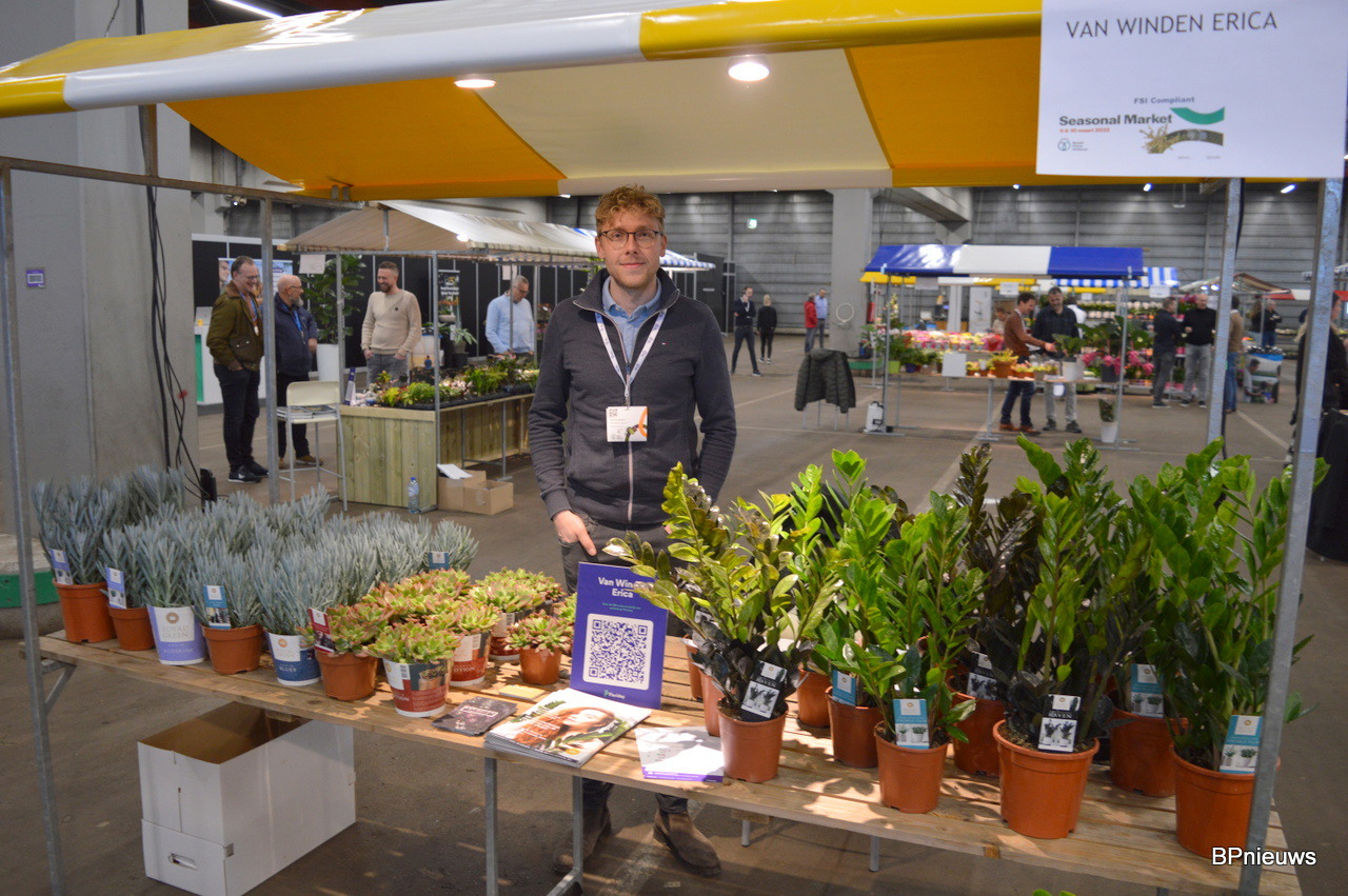 Tom van Winden van Van Winden Erica, bekend van de zamio's maar onder andere ook met echeveria en curio's, én ook met perkgoed op de markt.