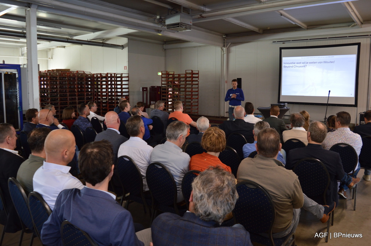 De befaamde uit chrysanten-gewas geproduceerde "schimmelwand", wat hier vooral dient om het geluid van de machines in de verwerkingsruimte wat te dempen. Benieuwd naar de ins en outs, zie https://www.bpnieuws.nl/article/9281691/uit-reststromen-geproduceerde-schimmelwand-brengt-rust-in-de-schuur/