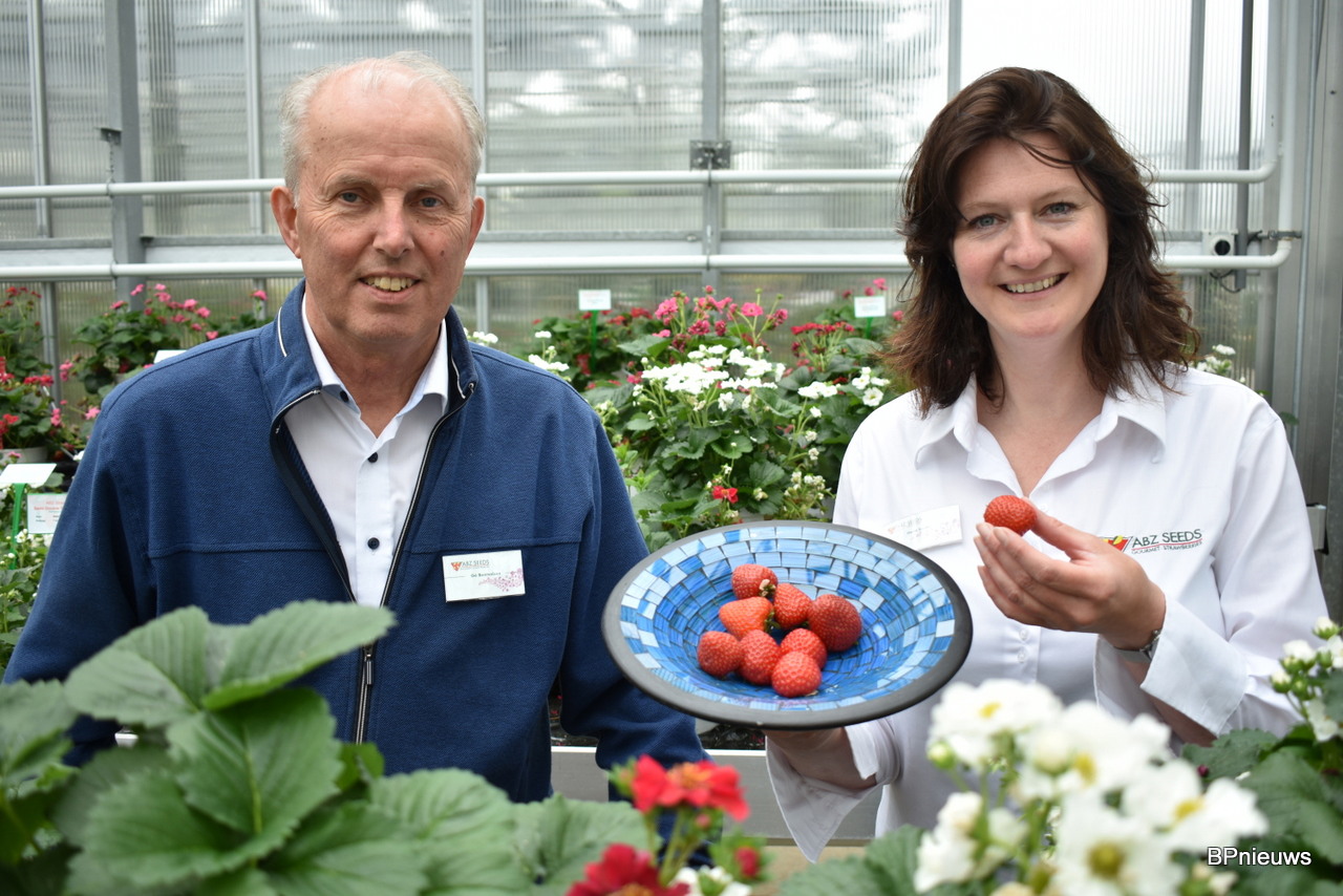 Gé Bentvelsen and Ilona Smith from ABZ Seeds with some delicious strawberries.