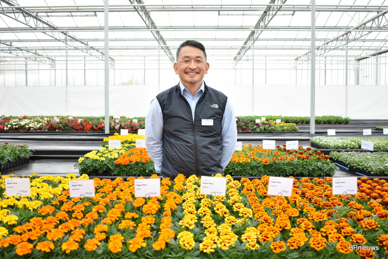 Area Sales Manager of Japan, Naoto Takamura with the Super Hero Series of Benary. The Super Hero series is well known for its good seed quality, uniformity and bright colors.
