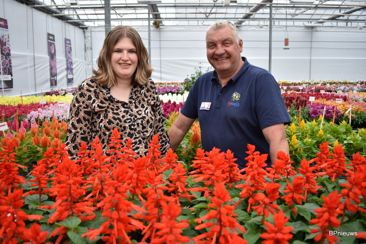 Chantal Groot, backoffice, and Marco Laan, Production Manager, from Hem Genetics, together with their coming introduction the Salvia Redhill. It's a high Salvia with an superb garden value.