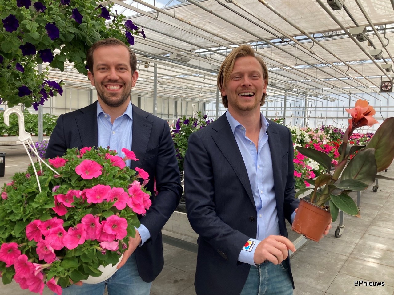 Hylke Kroon and Sven Pauwe from Takii presenting their novelties; The Petunia Trilogy Rose Improved and the Cannova Bronze Peach.